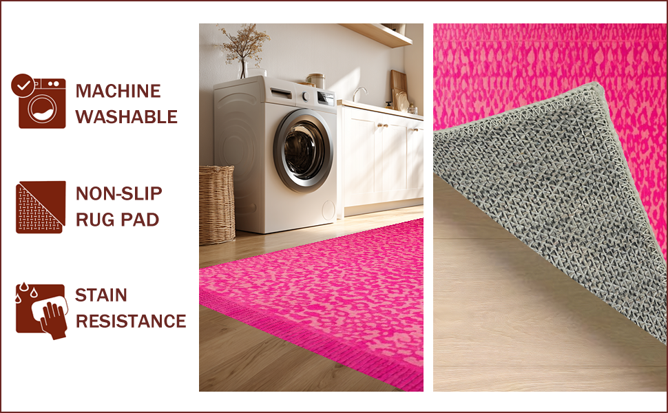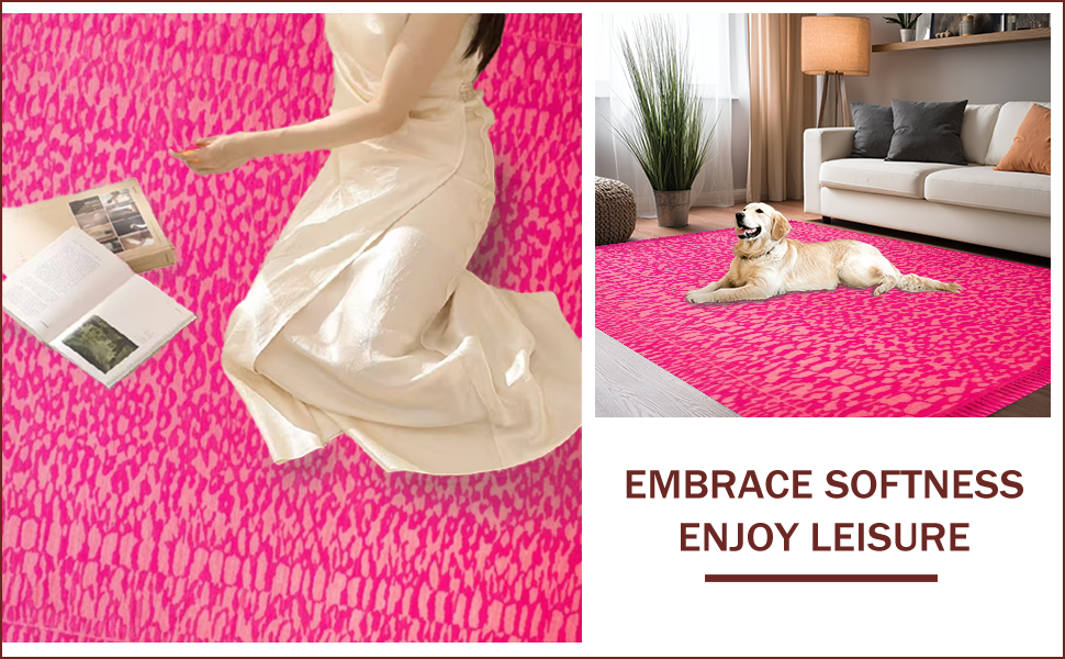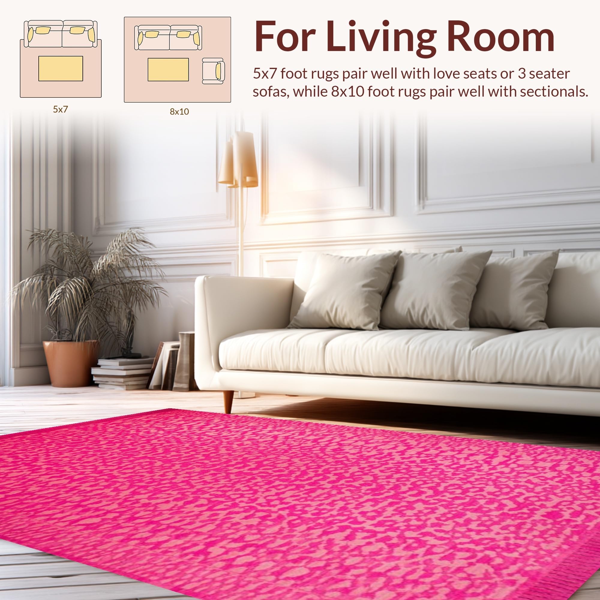Ultra Soft Area Rug, Non Slip, Stain Resistant, Washable Area Rugs for Living Room, Bedroom, Vivid Contemporary Leopard Motif(Pink) Overview: