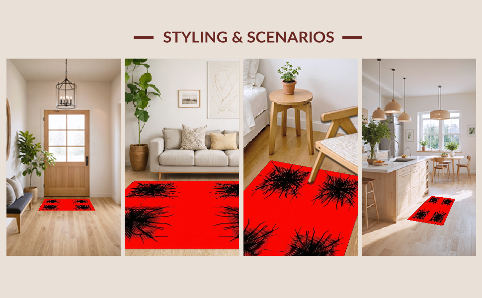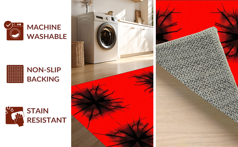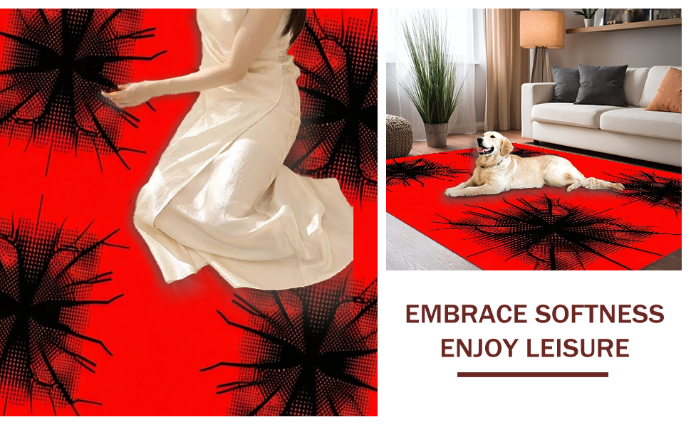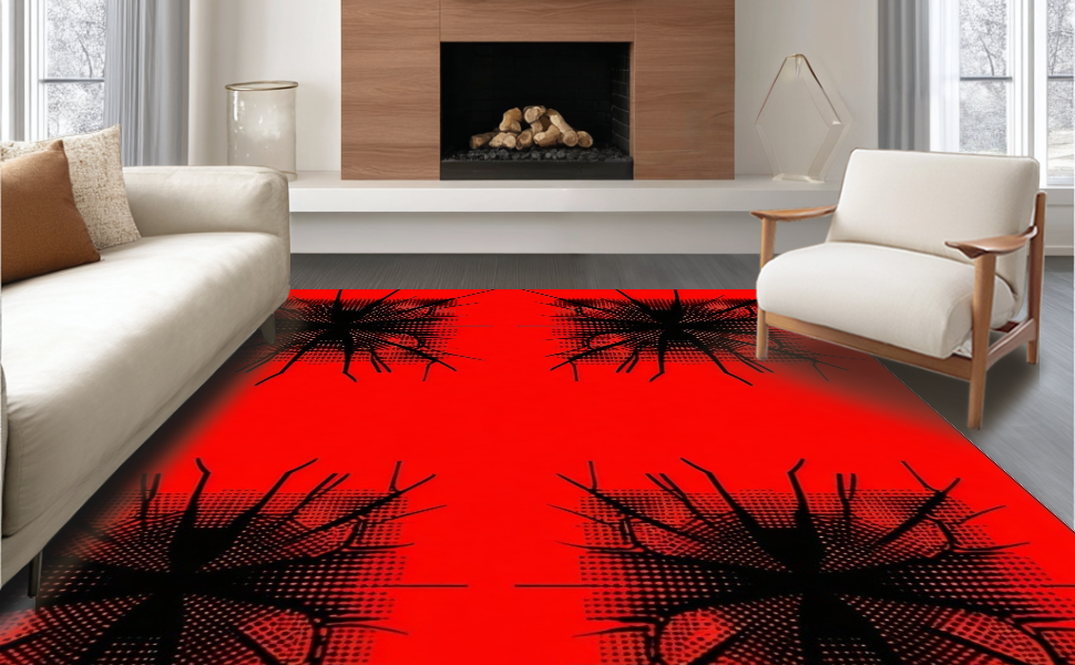Ultra Soft Area Rug, Non Slip, Stain Resistant, Washable Area Rugs for Living Room, Bedroom, Vivid Gothic Web-Inspired Pattern(Red) Overview:
