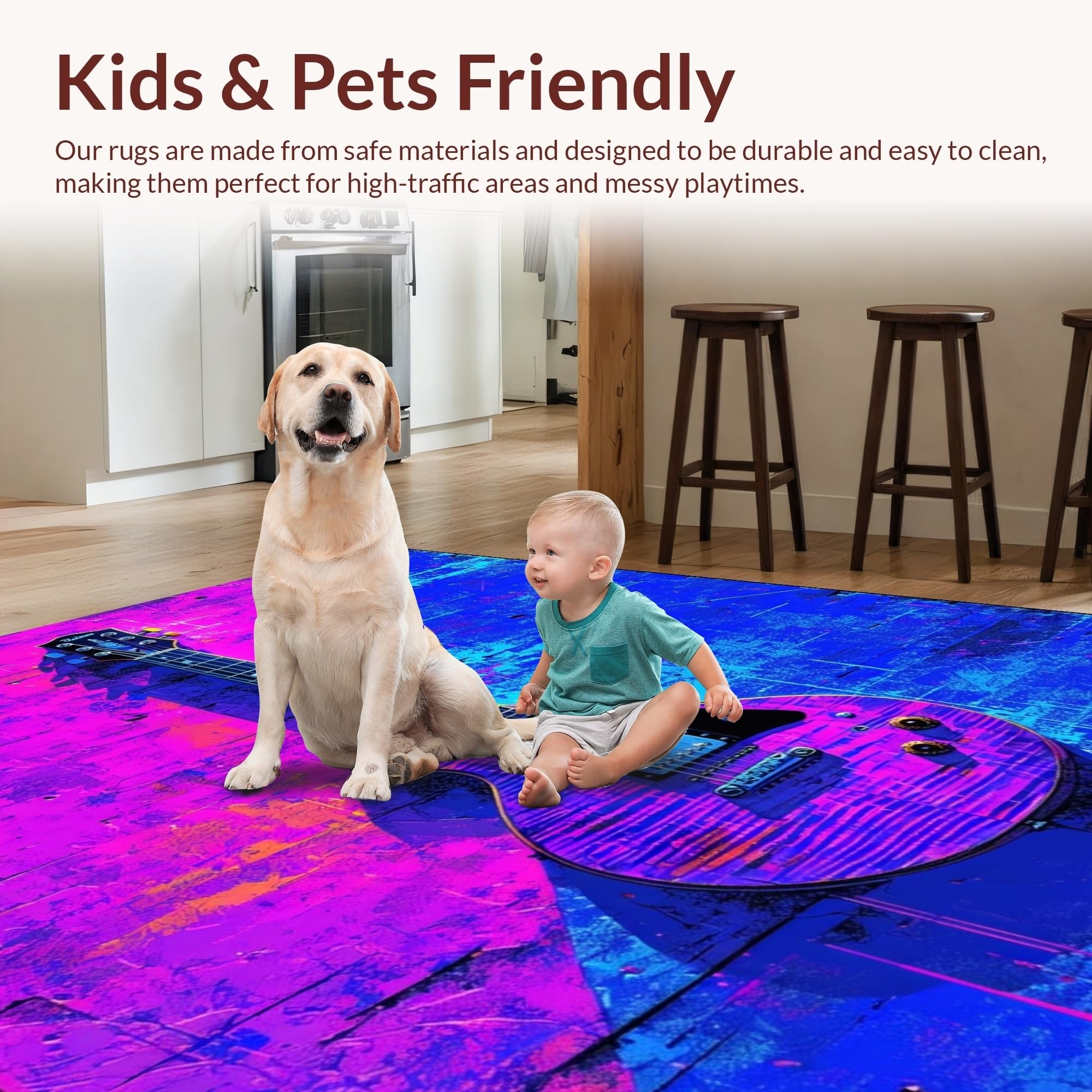 Ultra Soft Area Rug, Non Slip, Stain Resistant, Washable Area Rugs for Living Room, Bedroom, Vivid Modern Geometric Composition(Blue) Overview:
