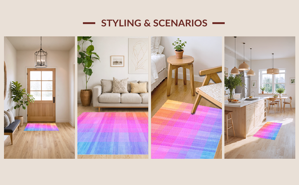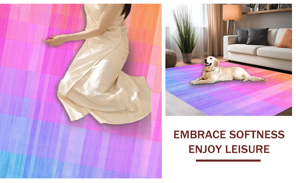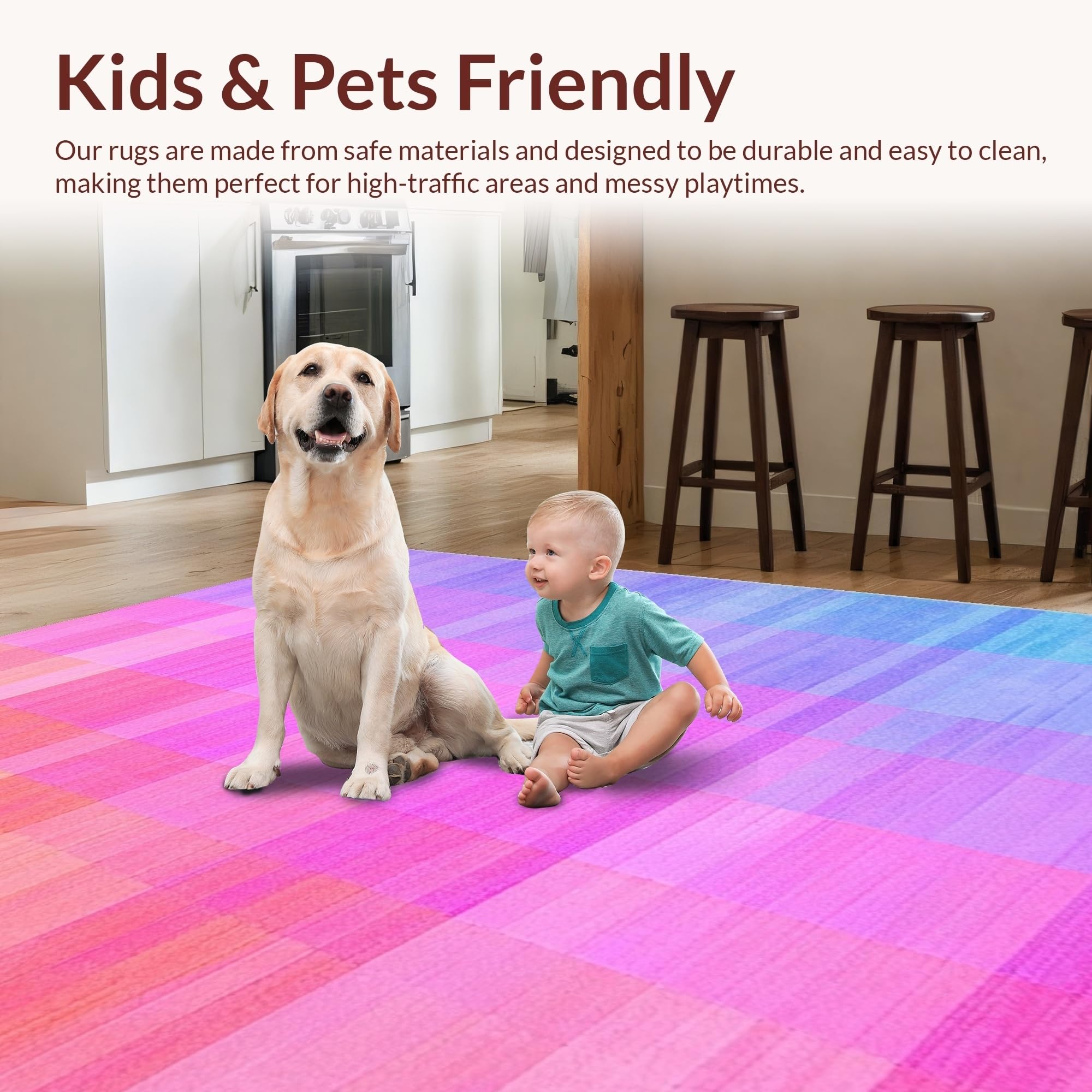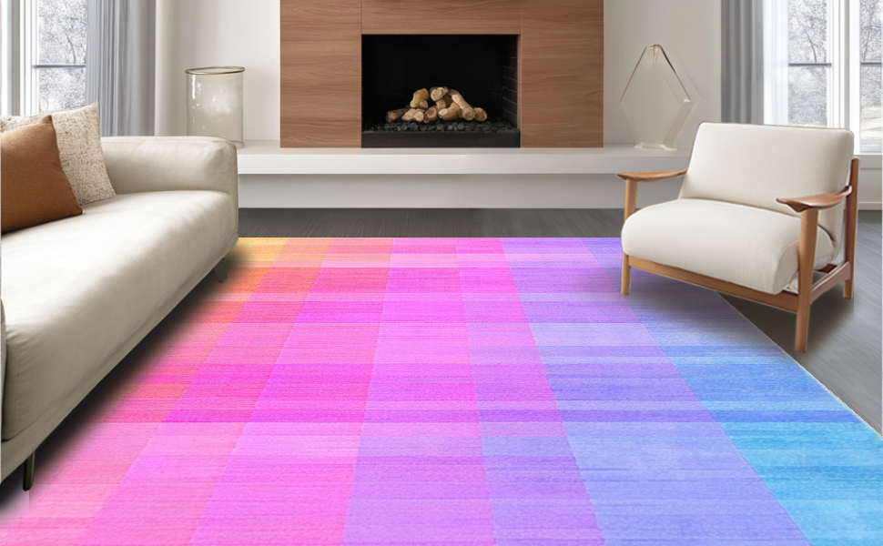 Ultra Soft Area Rug, Non Slip, Stain Resistant, Washable Area Rugs for Living Room, Bedroom, Vivid Multicolor Shaggy Texture(Pink) Overview: