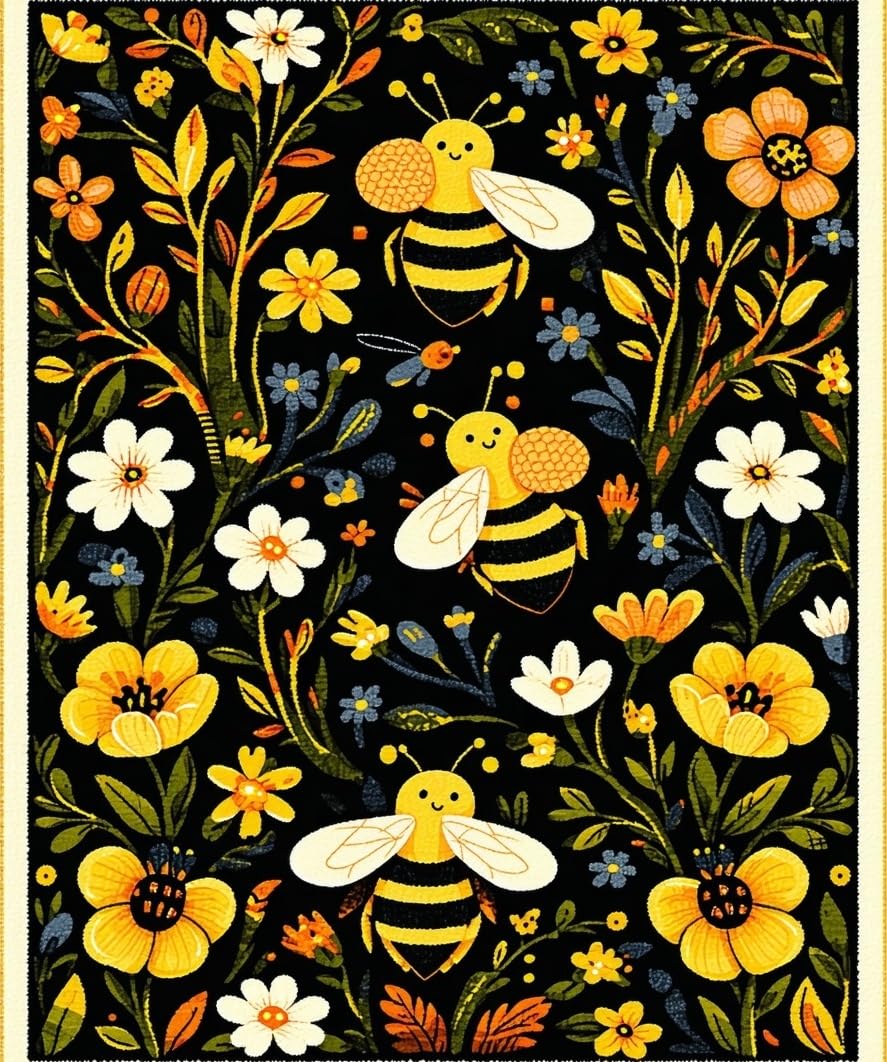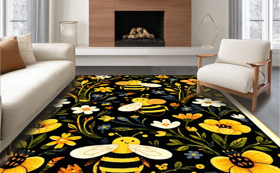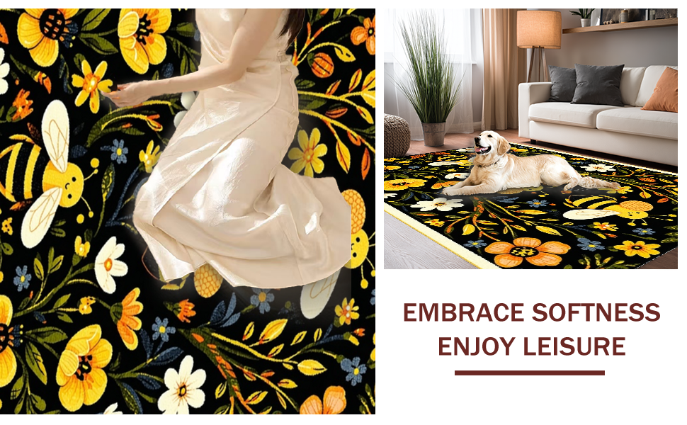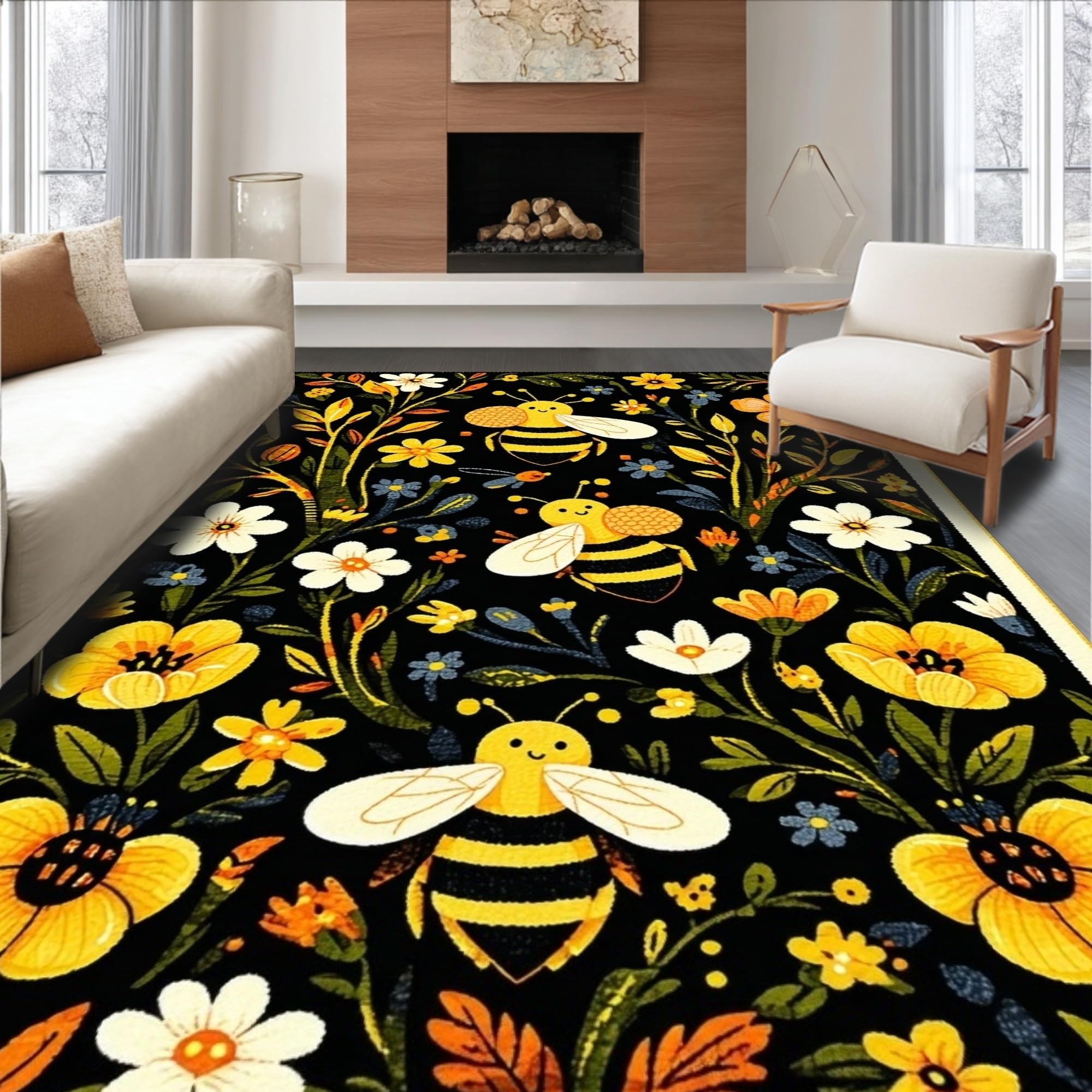 Ultra Soft Area Rug, Non Slip, Stain Resistant, Washable Area Rugs for Living Room, Bedroom, Vivid Whimsical Garden Scene(Black) Overview:
