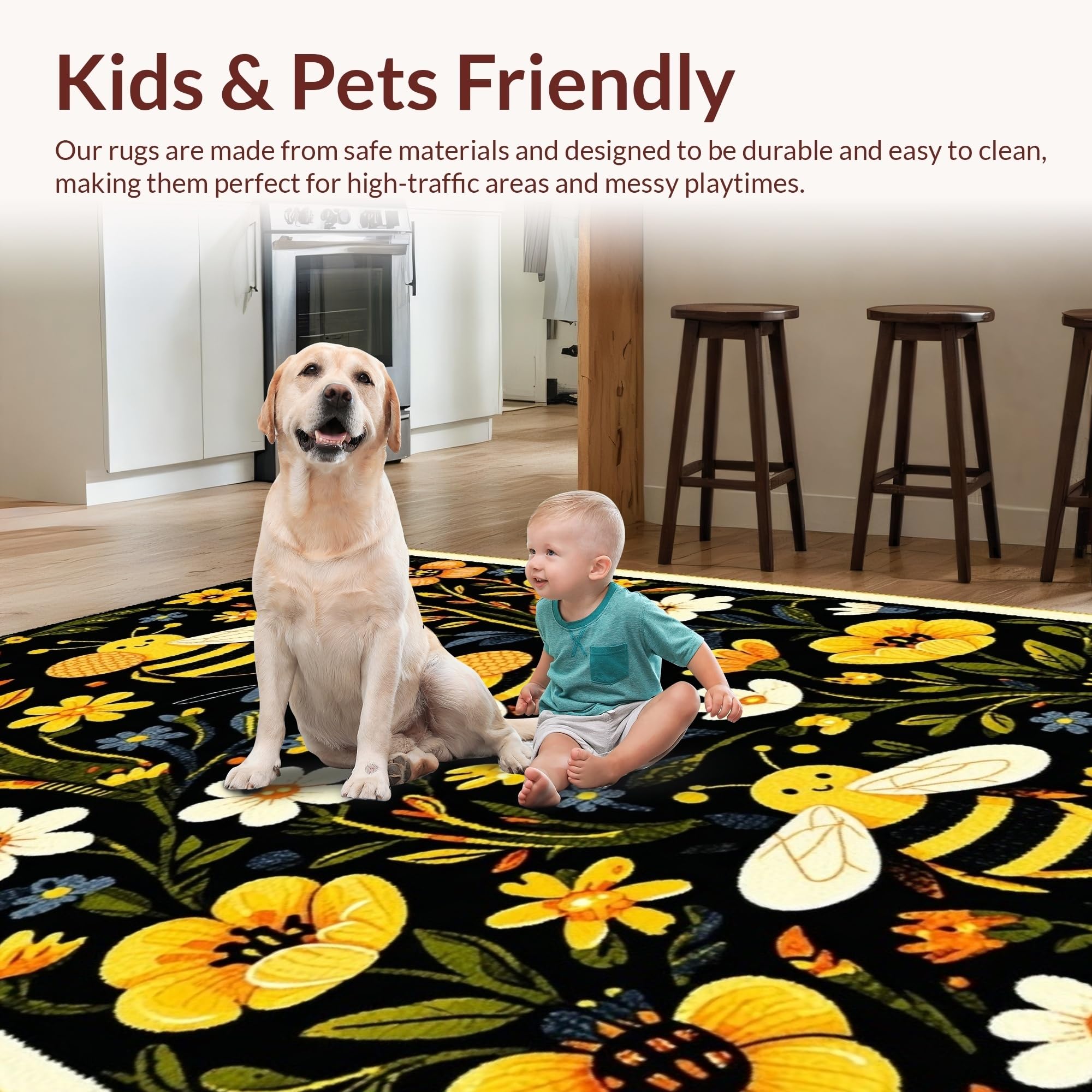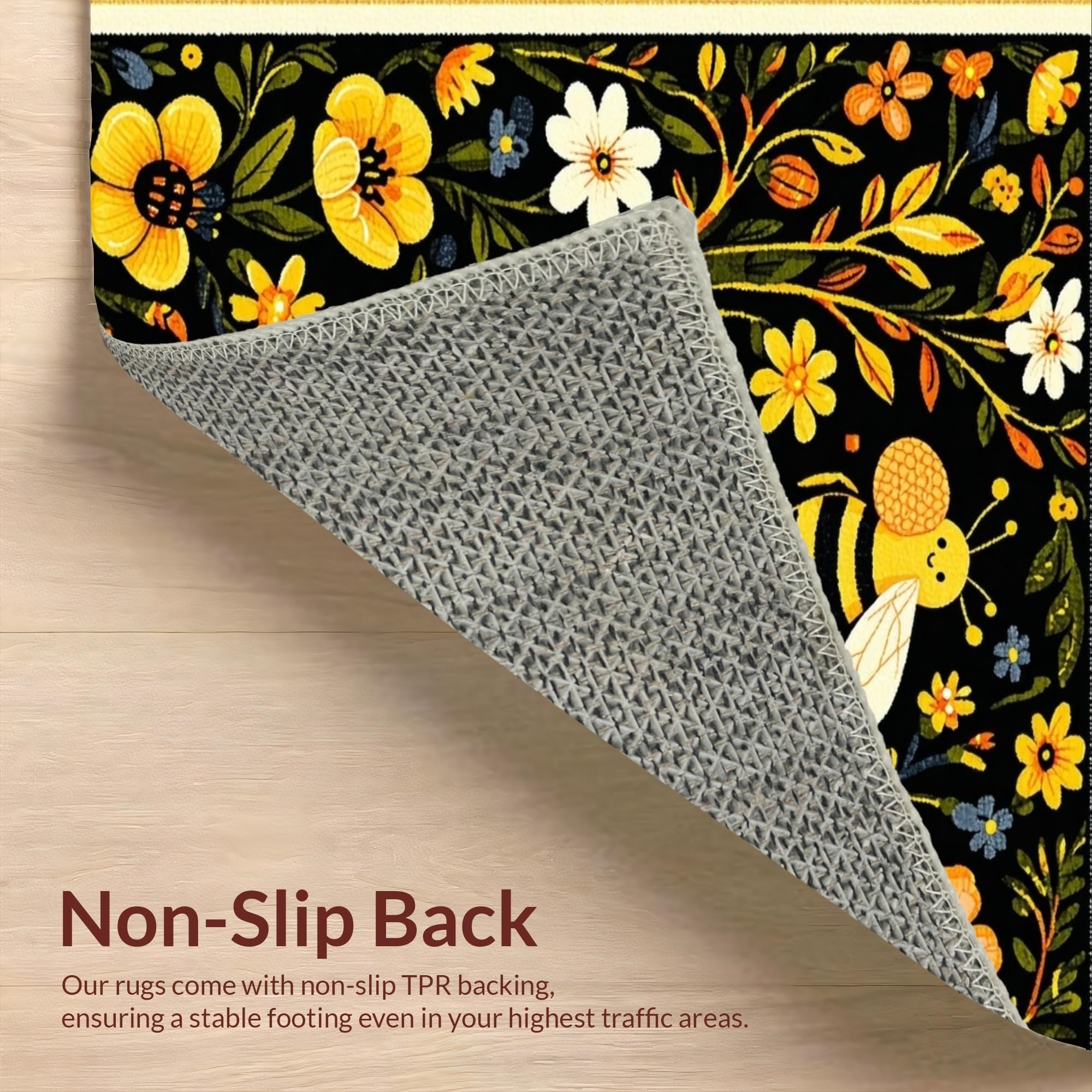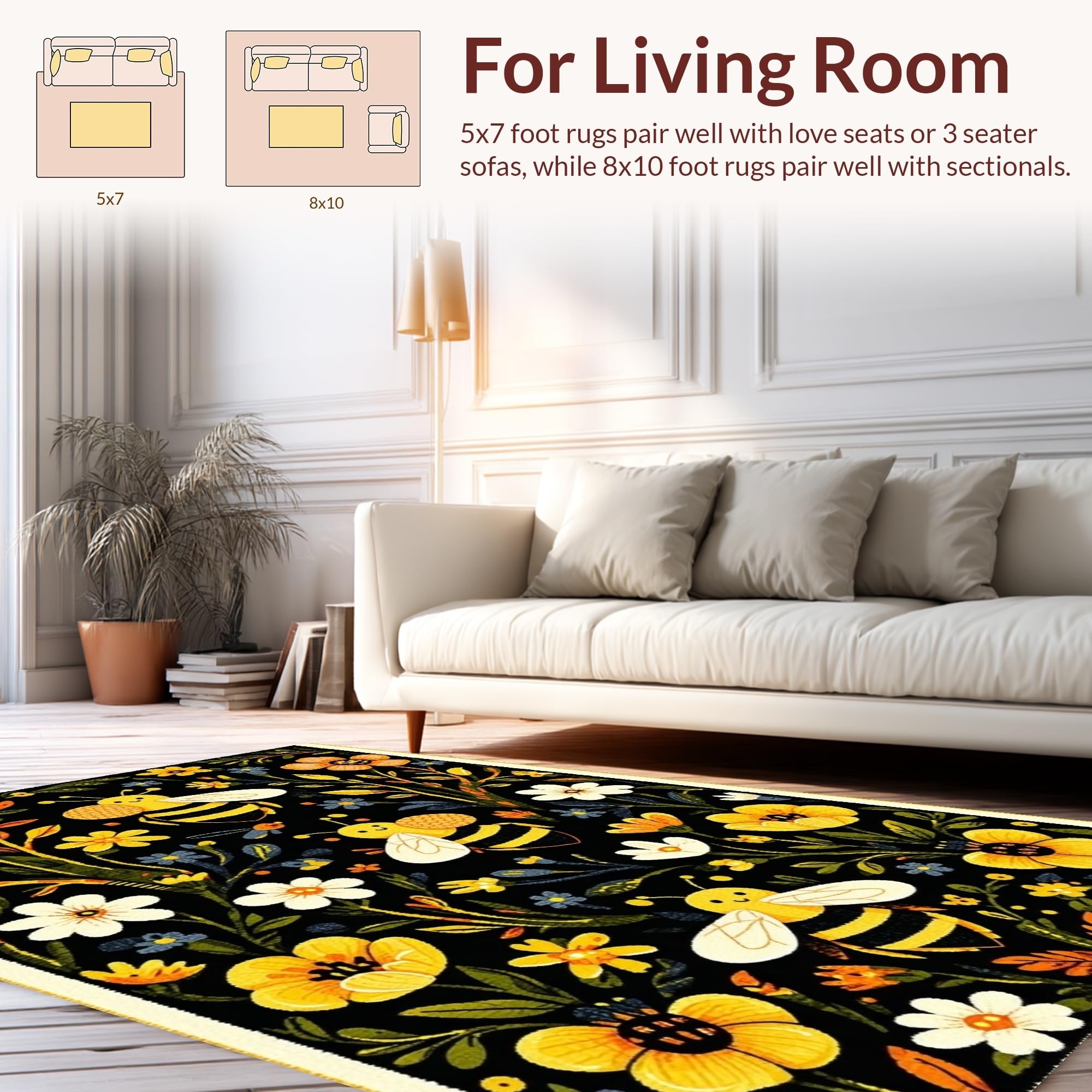 Ultra Soft Area Rug, Non Slip, Stain Resistant, Washable Area Rugs for Living Room, Bedroom, Vivid Whimsical Garden Scene(Black) Overview: