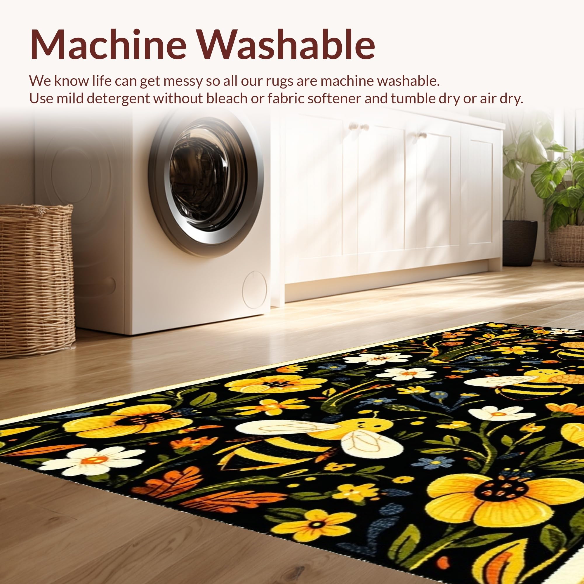- Machine Washable: Our rugs can be easily thrown in the wash machine.