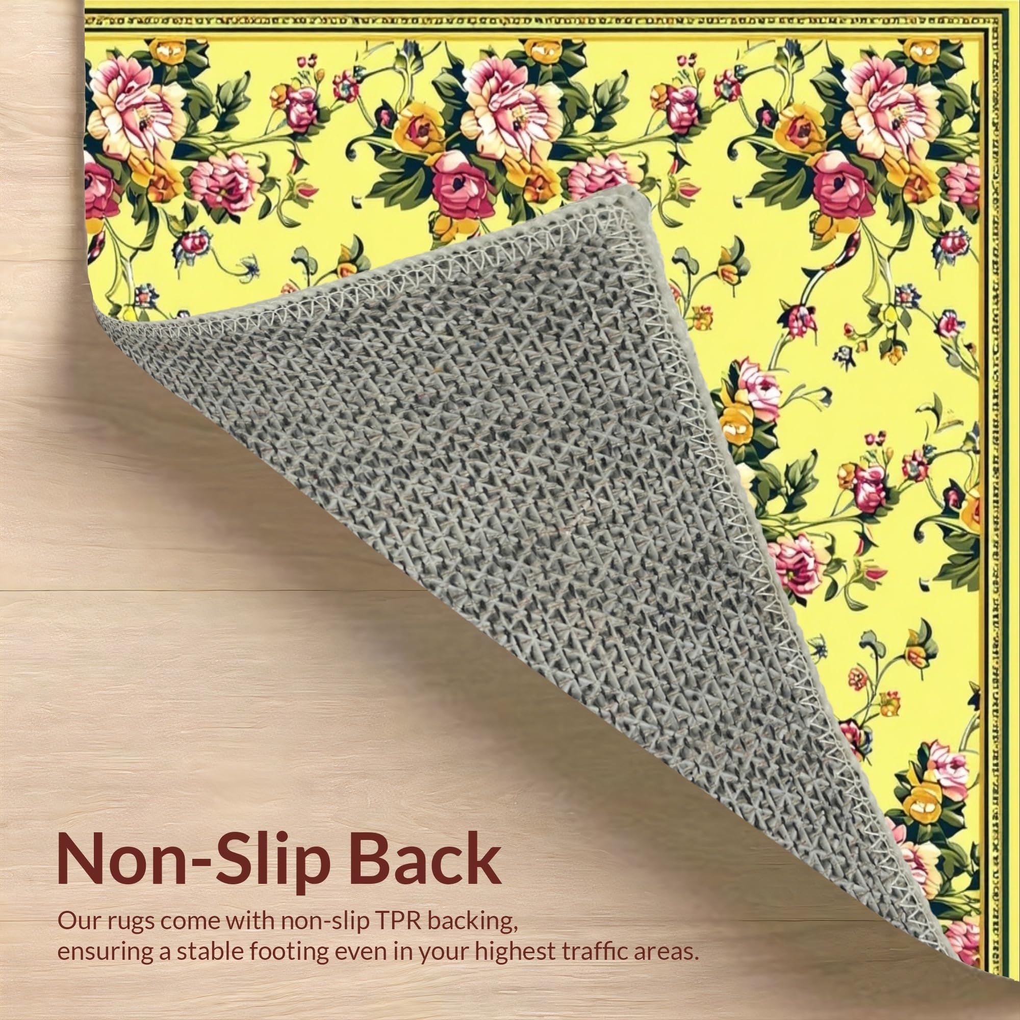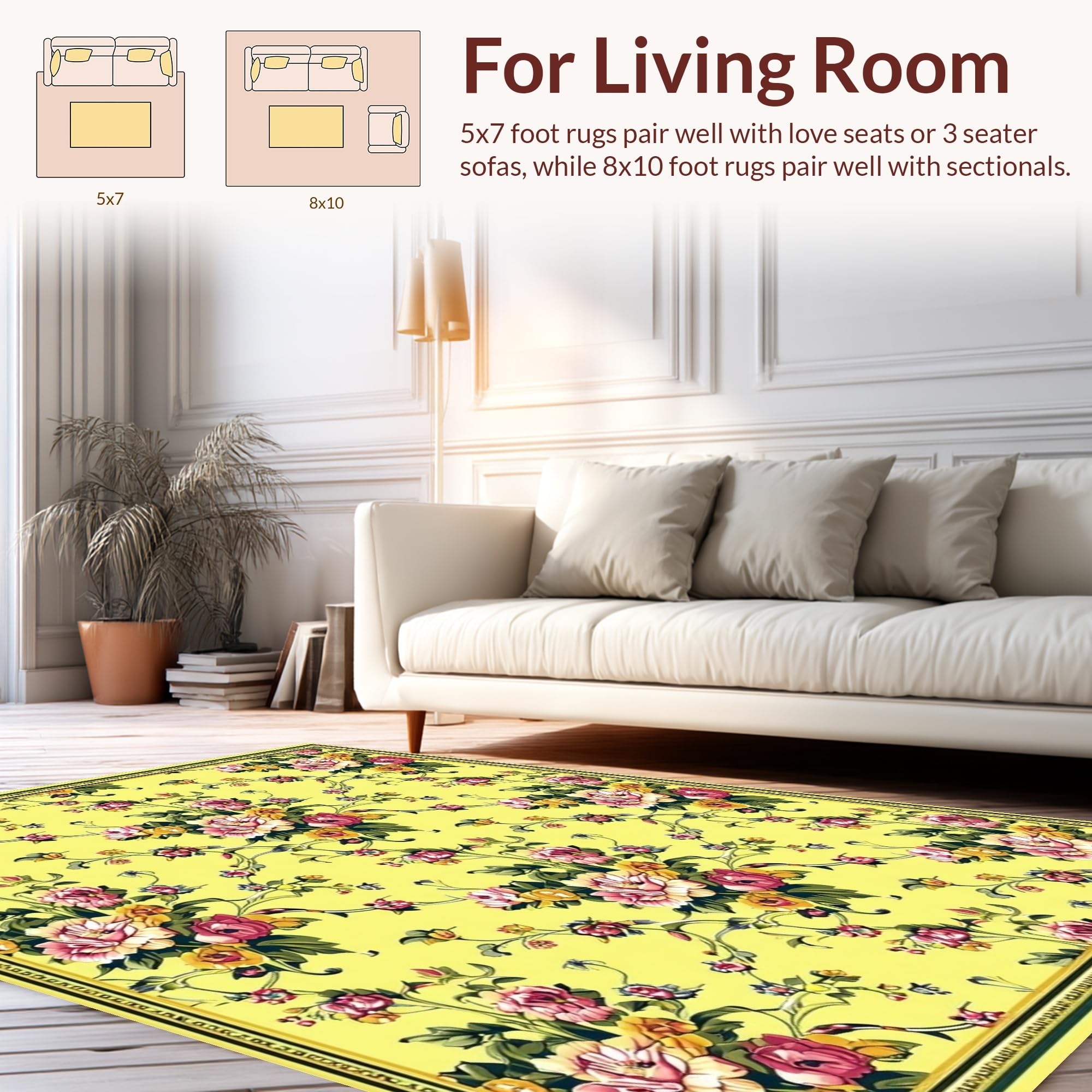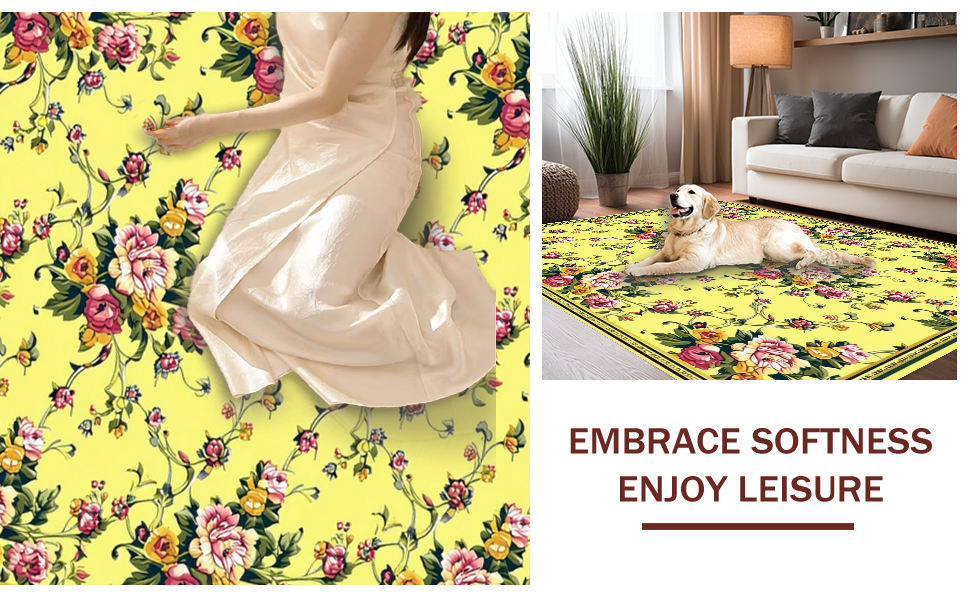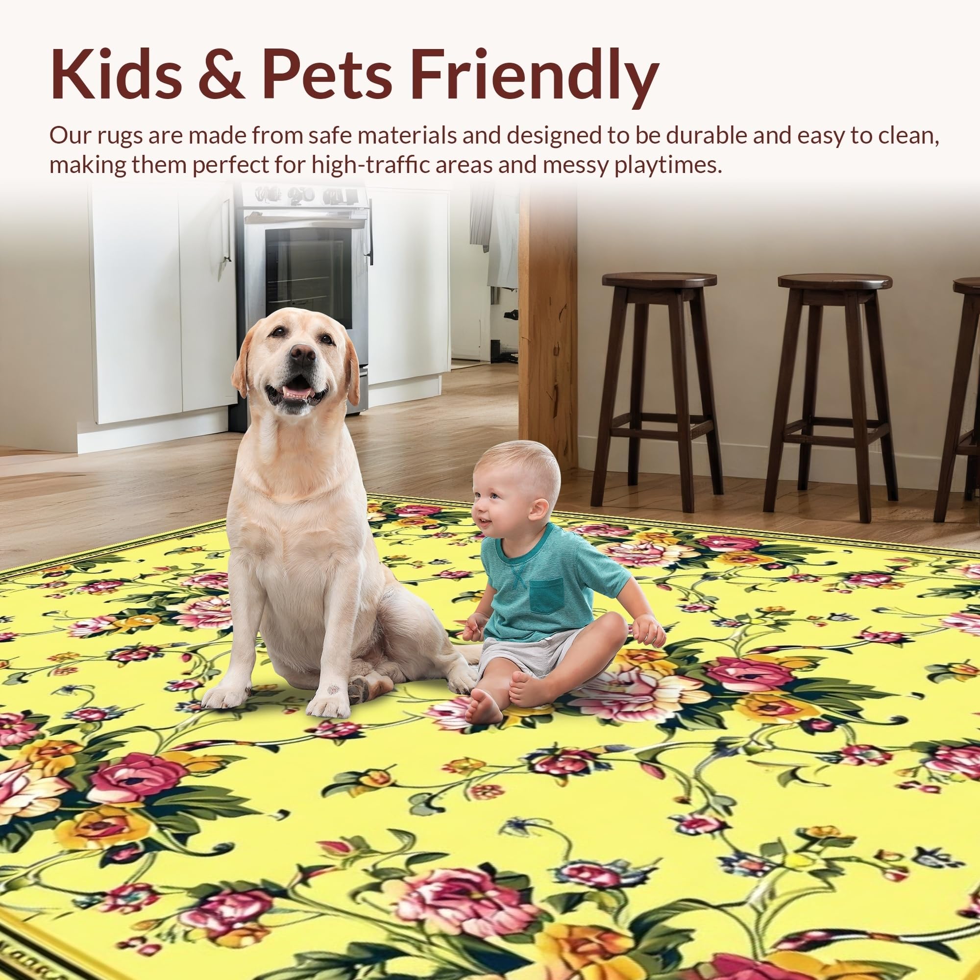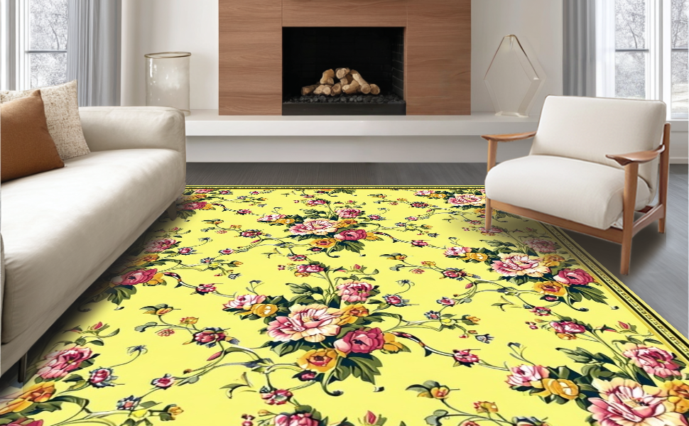 Ultra Soft Area Rug, Non Slip, Stain Resistant, Washable Area Rugs for Living Room, Bedroom, Warm Cheerful Petal Design(Yellow) Overview: