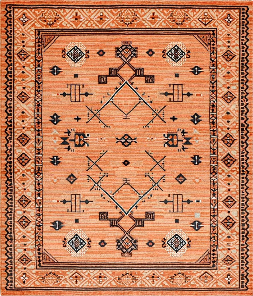 Flatwoven High Traffic Area Rug, Warm Arrangement, Non Slip, Stain Resistant, Washable Area Rugs for Living Room, Bedroom (Orange) Overview: