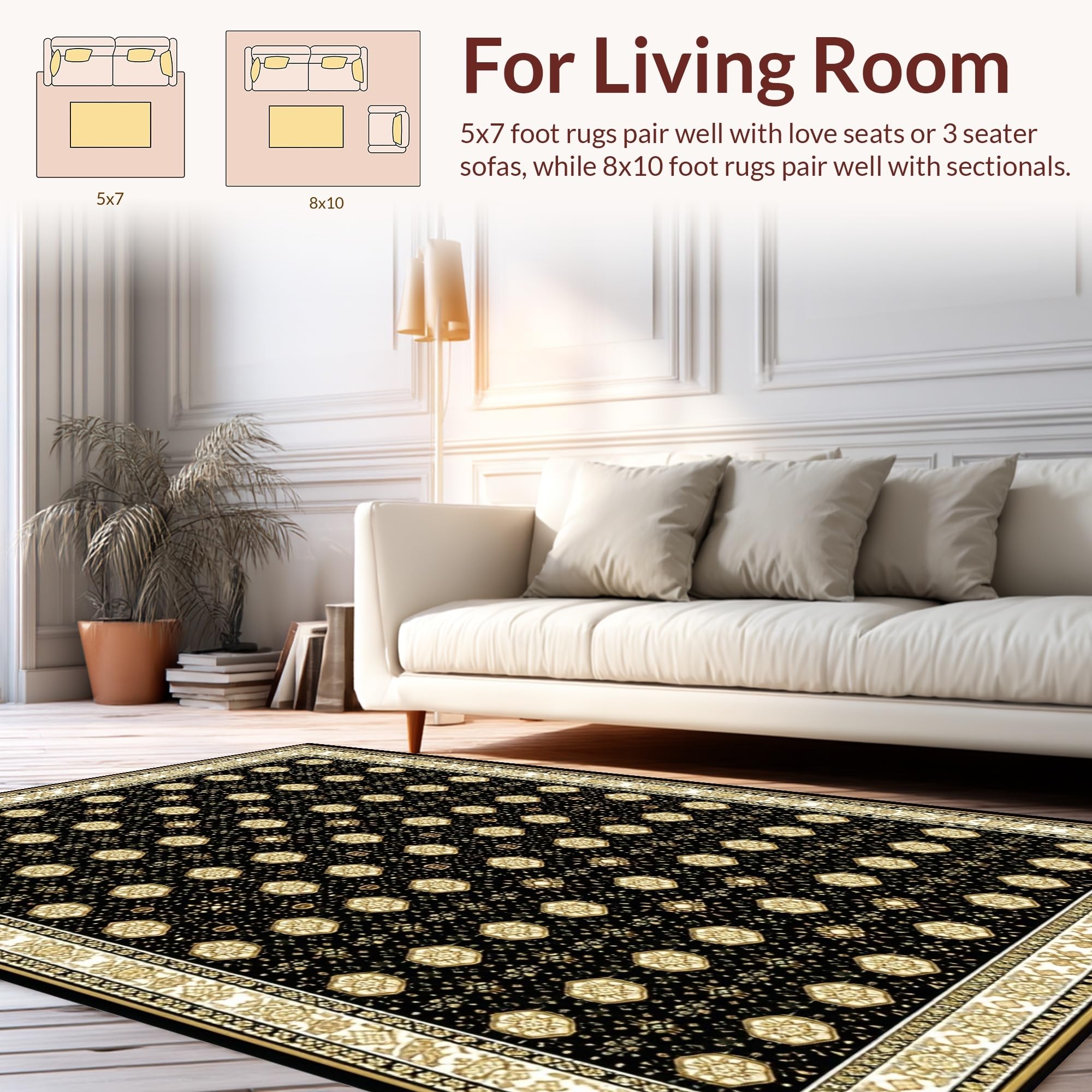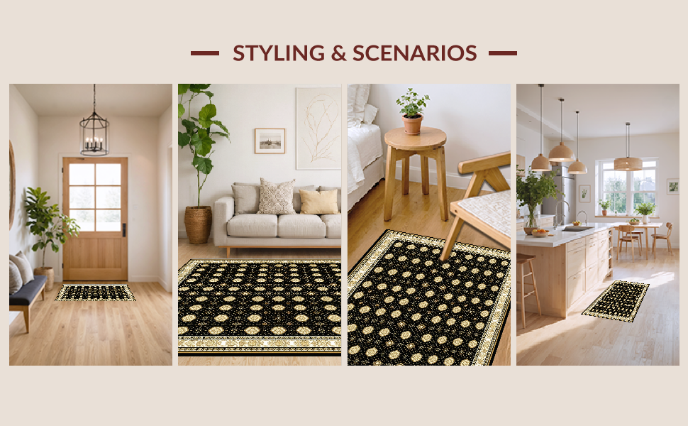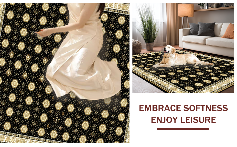 Ultra Soft Area Rug, Non Slip, Stain Resistant, Washable Area Rugs for Living Room, Bedroom, Warm Earth Tone Lattice Pattern(Black) Overview: