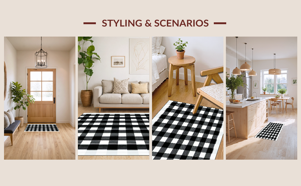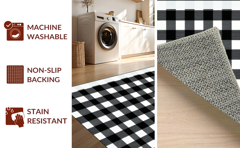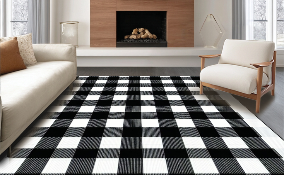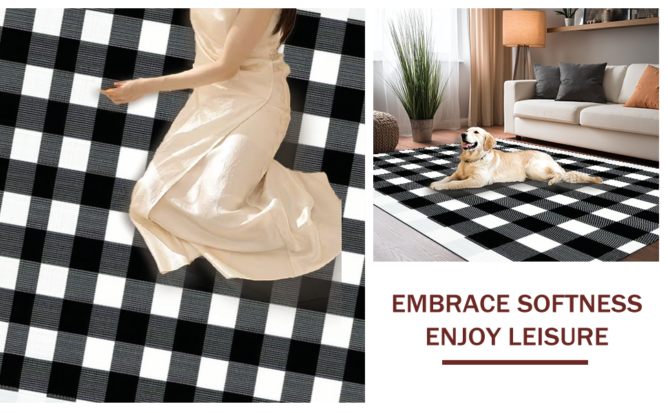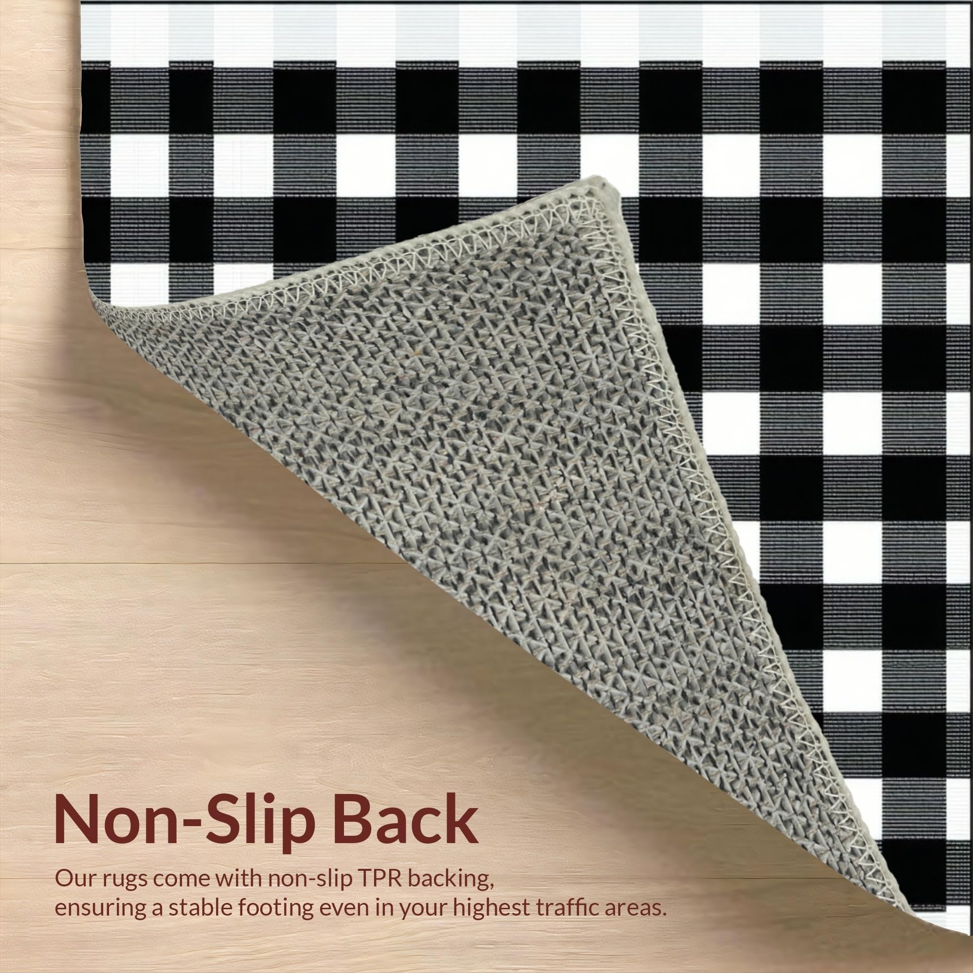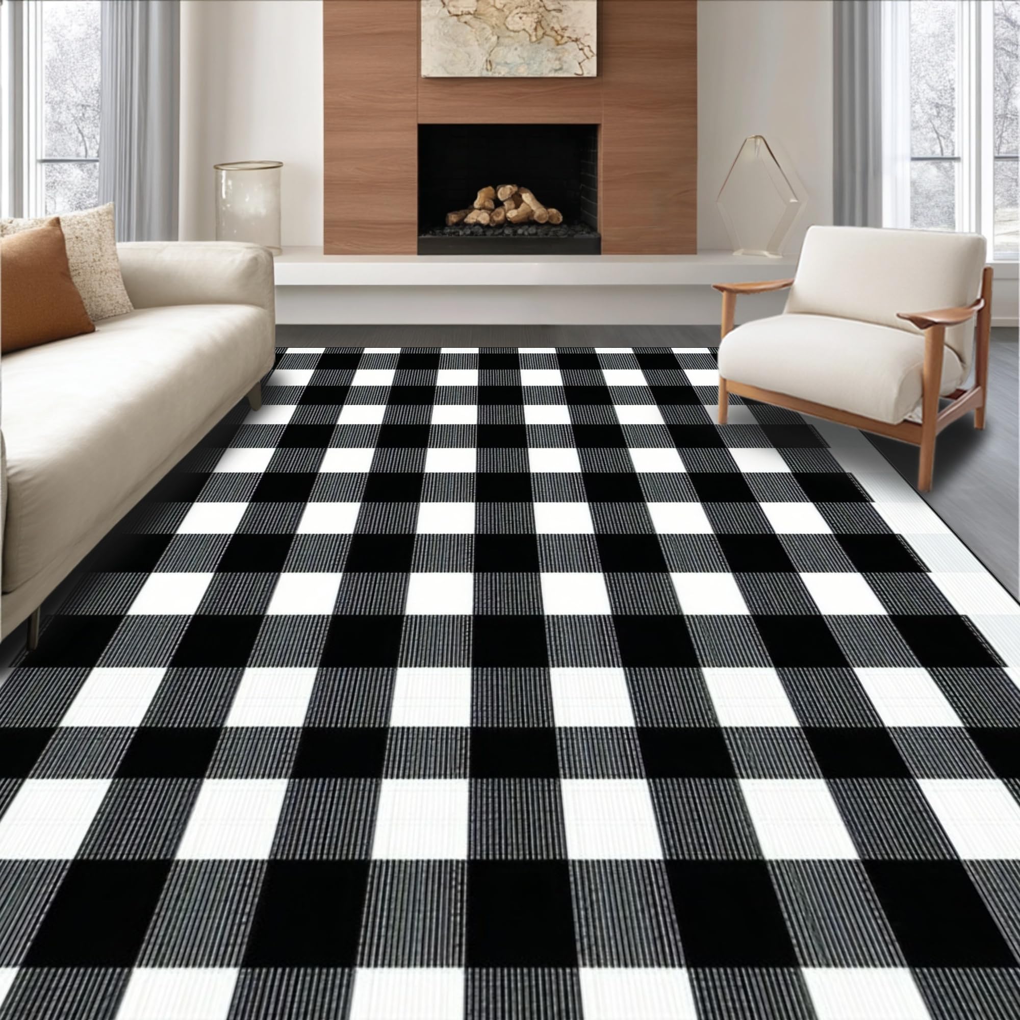 Ultra Soft Area Rug, Non Slip, Stain Resistant, Washable Area Rugs for Living Room, Bedroom, Warm Inviting Rustic Check Design(Black) Overview: