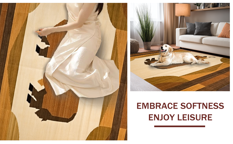 Ultra Soft Area Rug, Non Slip, Stain Resistant, Washable Area Rugs for Living Room, Bedroom, Warm Natural Tones Design(Beige) Overview: