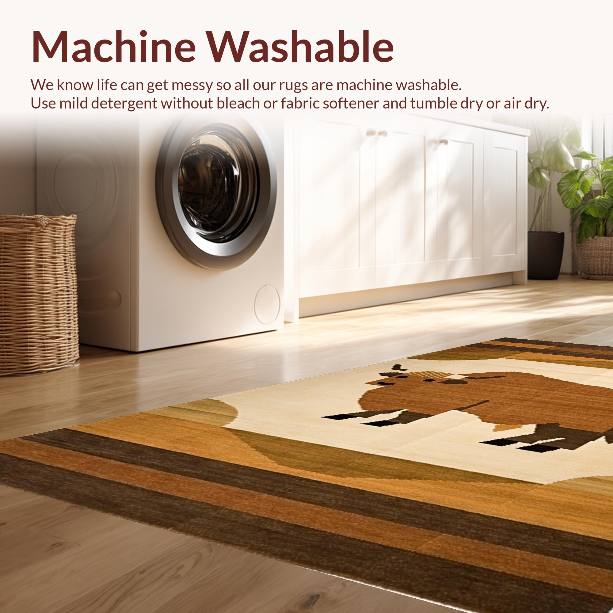 - Machine Washable: Our rugs can be easily thrown in the wash machine.