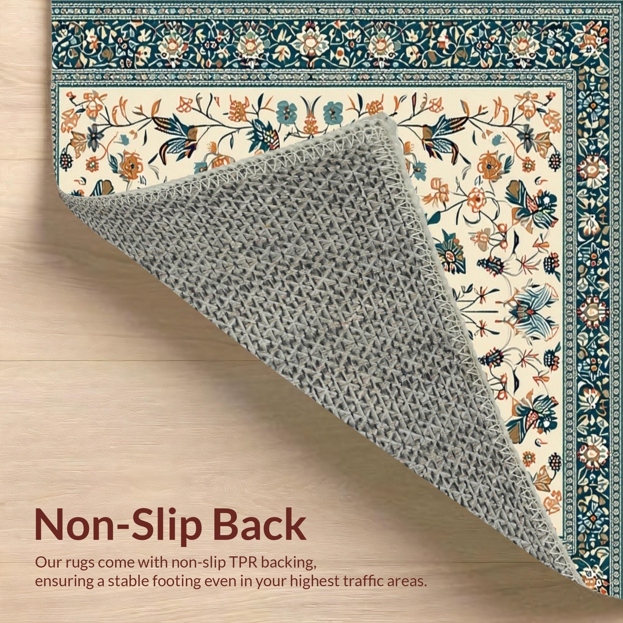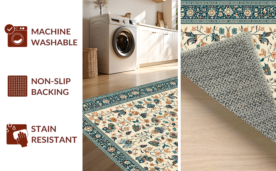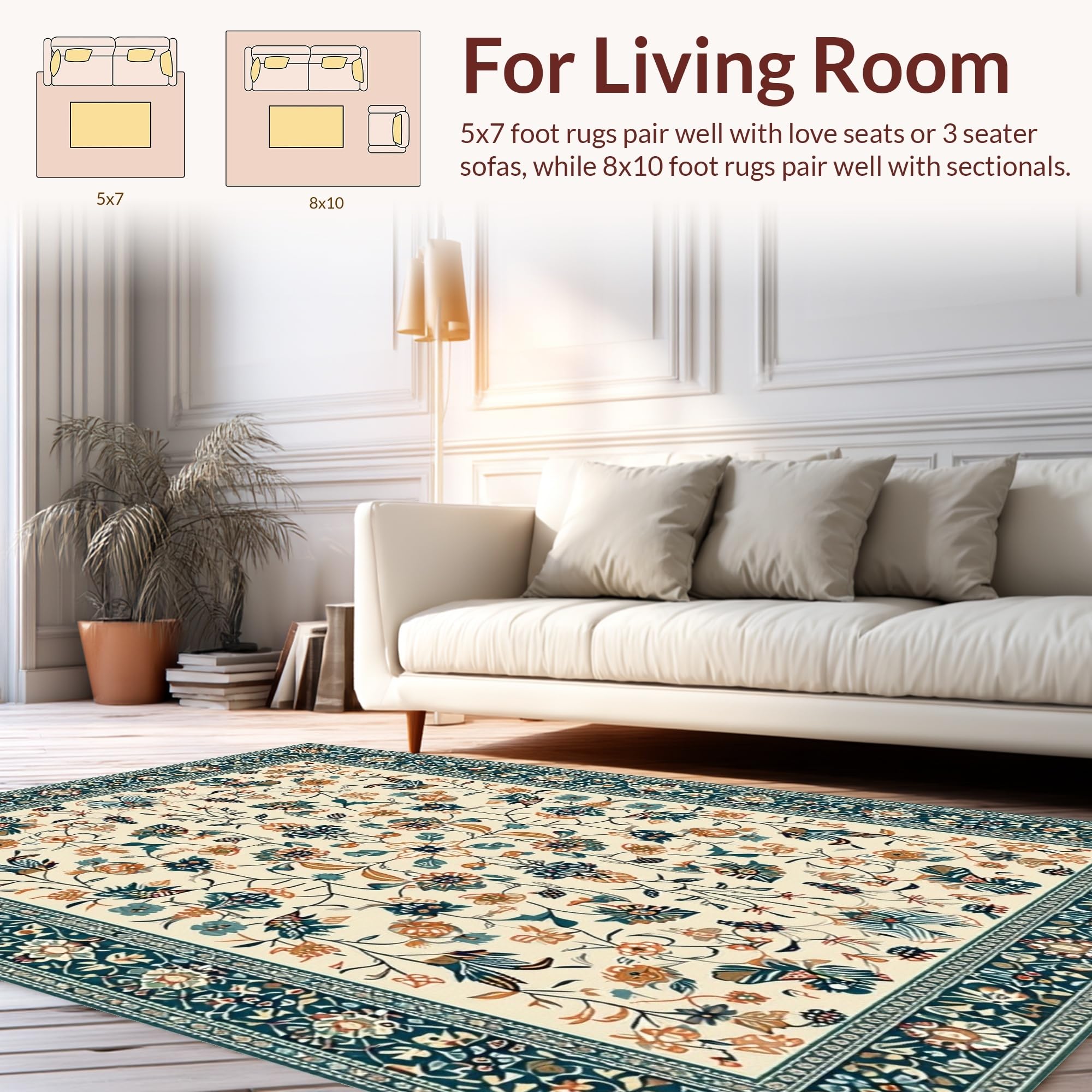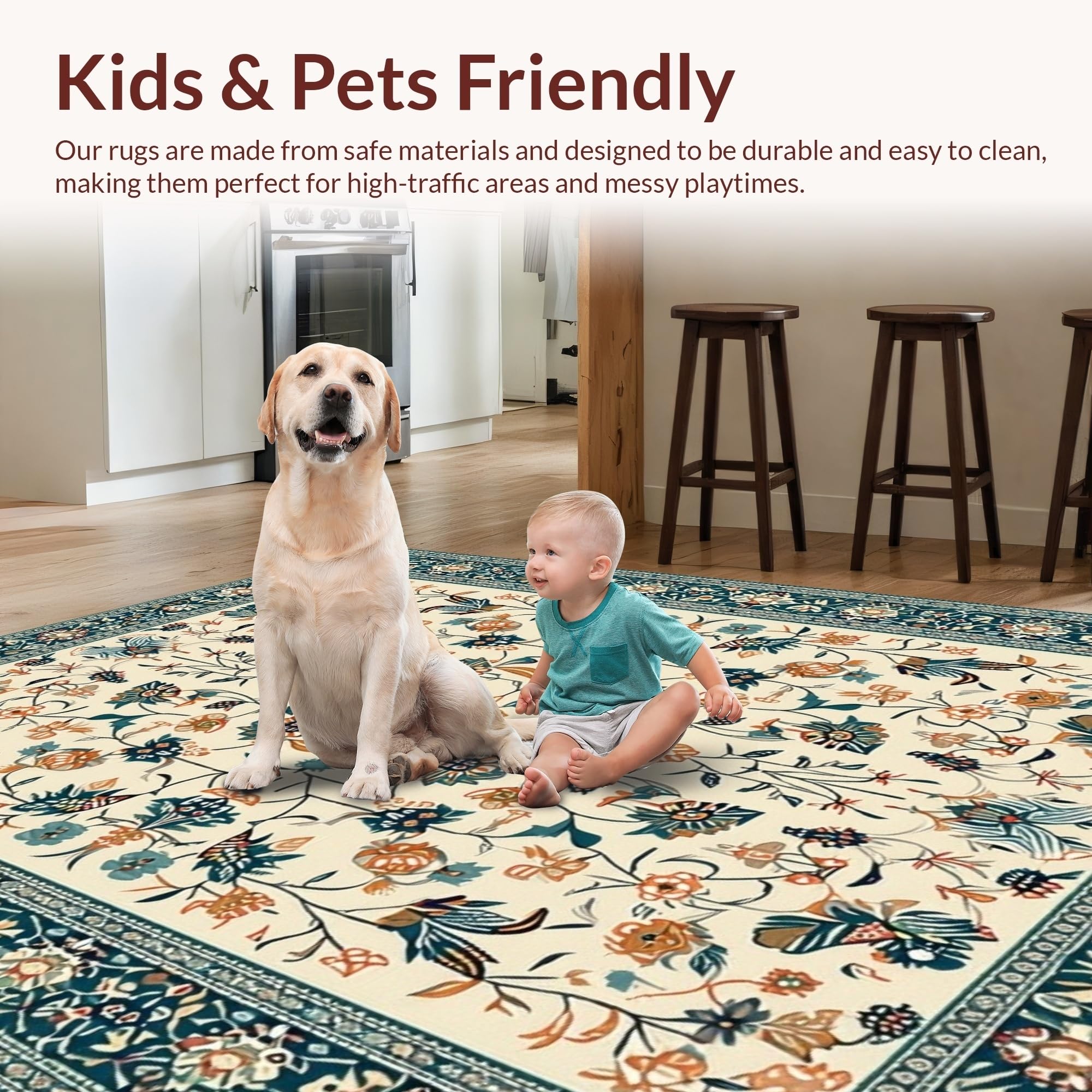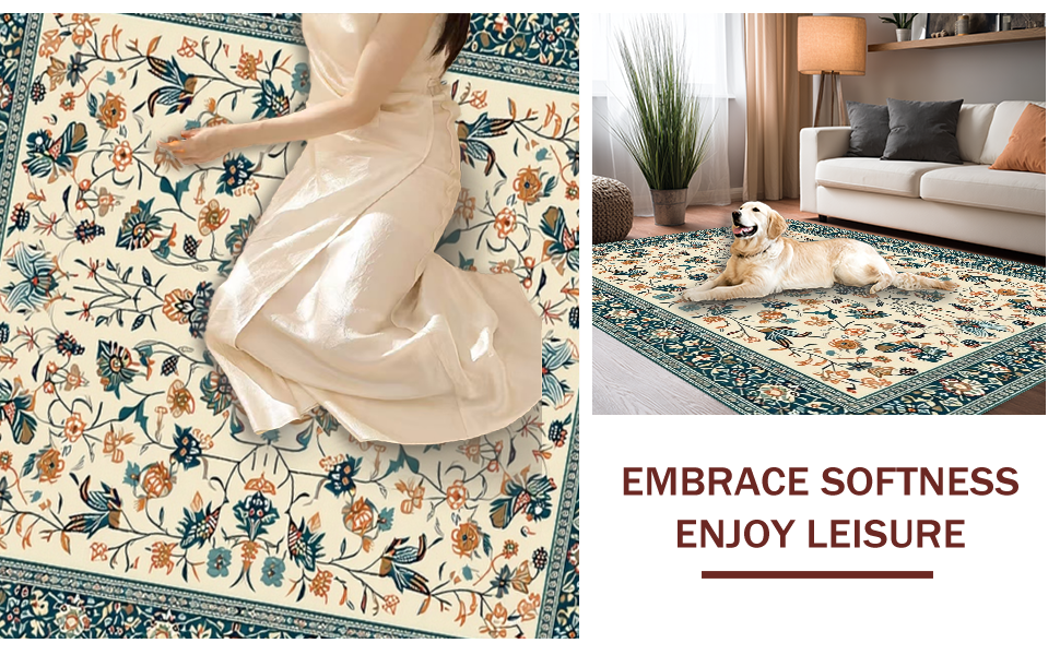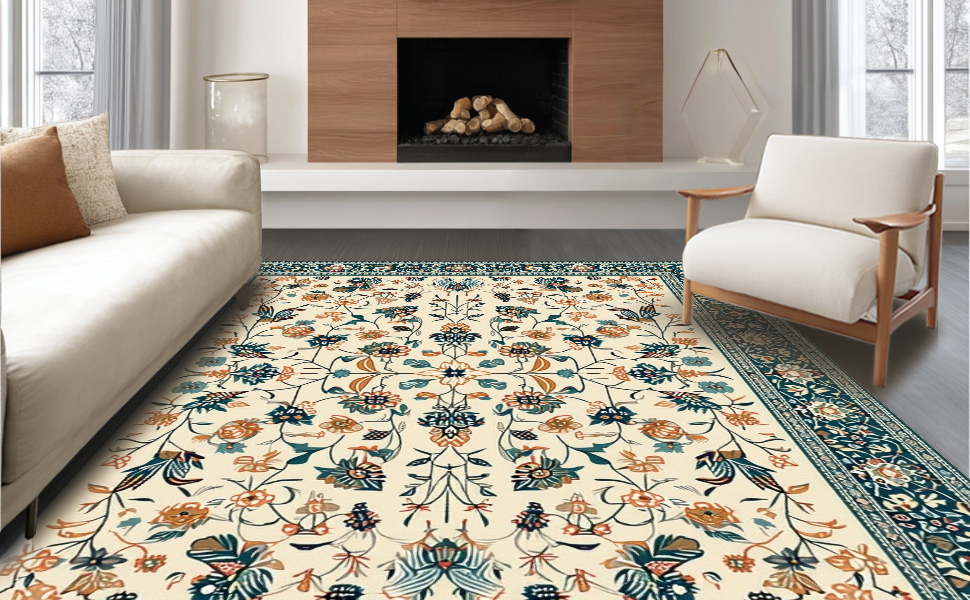 Ultra Soft Area Rug, Non Slip, Stain Resistant, Washable Area Rugs for Living Room, Bedroom, Warm Neutral Vintage Blossom(Beige) Overview: