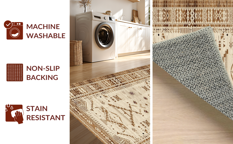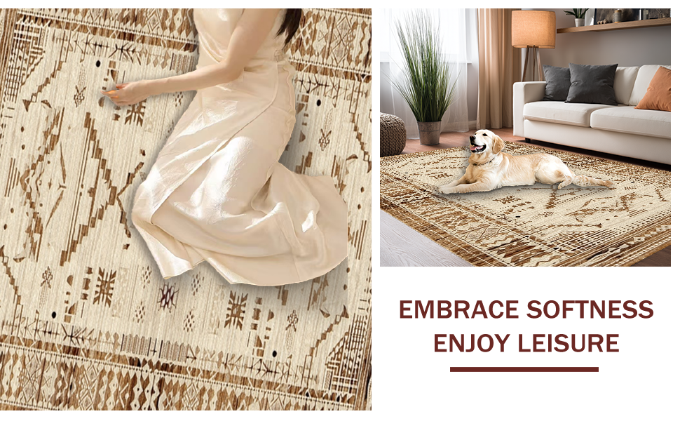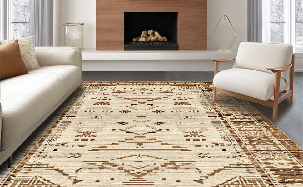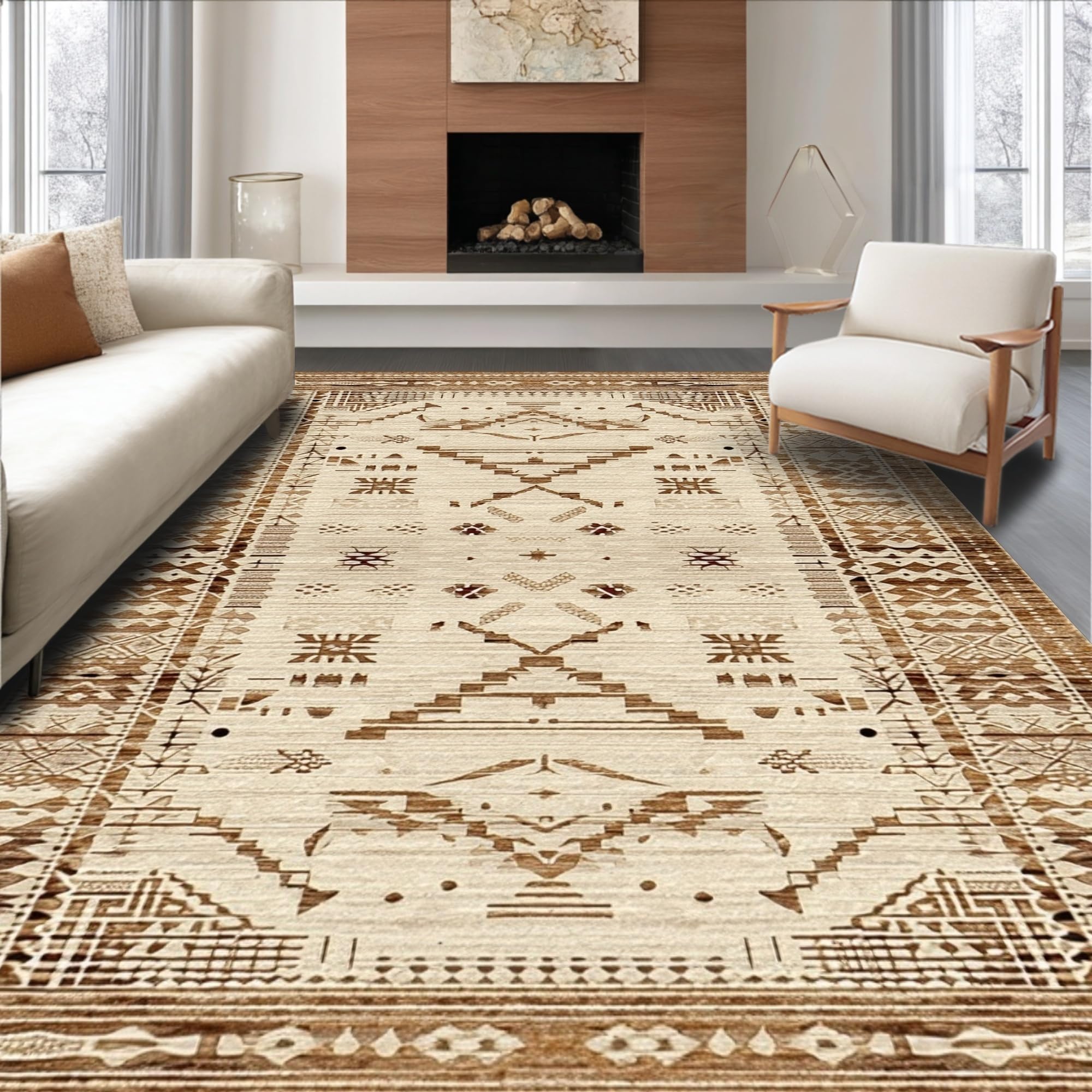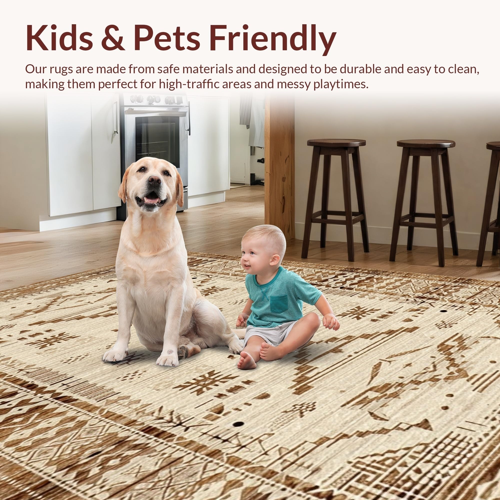 Ultra Soft Area Rug, Non Slip, Stain Resistant, Washable Area Rugs for Living Room, Bedroom, Warm Rustic Textured Pattern(Beige) Overview: