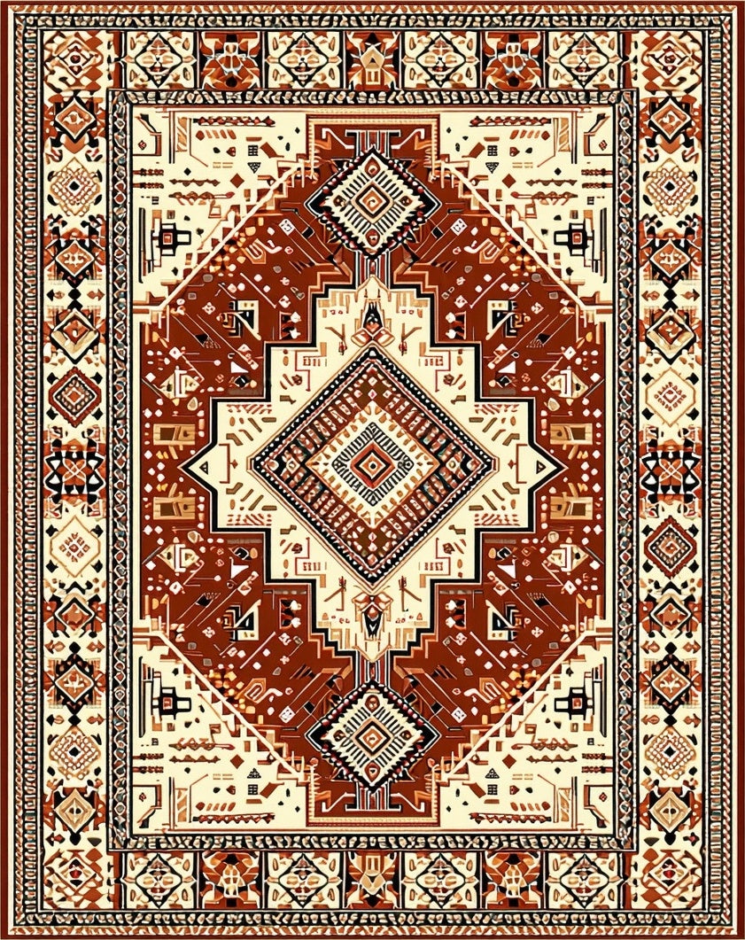 Flatwoven High Traffic Area Rug, Warm Toned Medallion Aesthetic, Non Slip, Stain Resistant, Washable Area Rugs for Living Room, Bedroom (Brown) Overview: