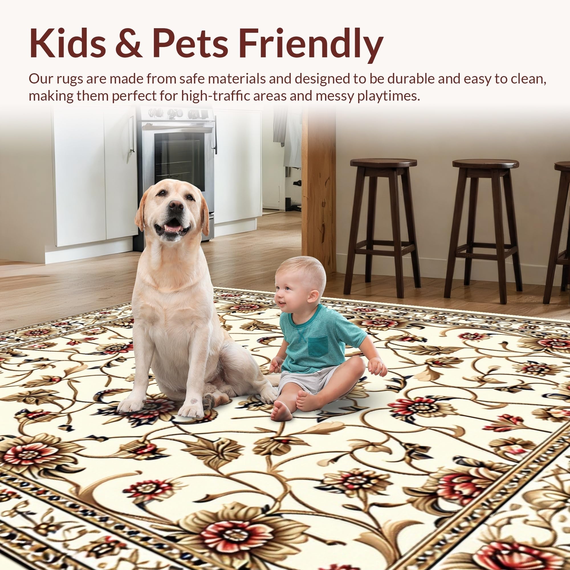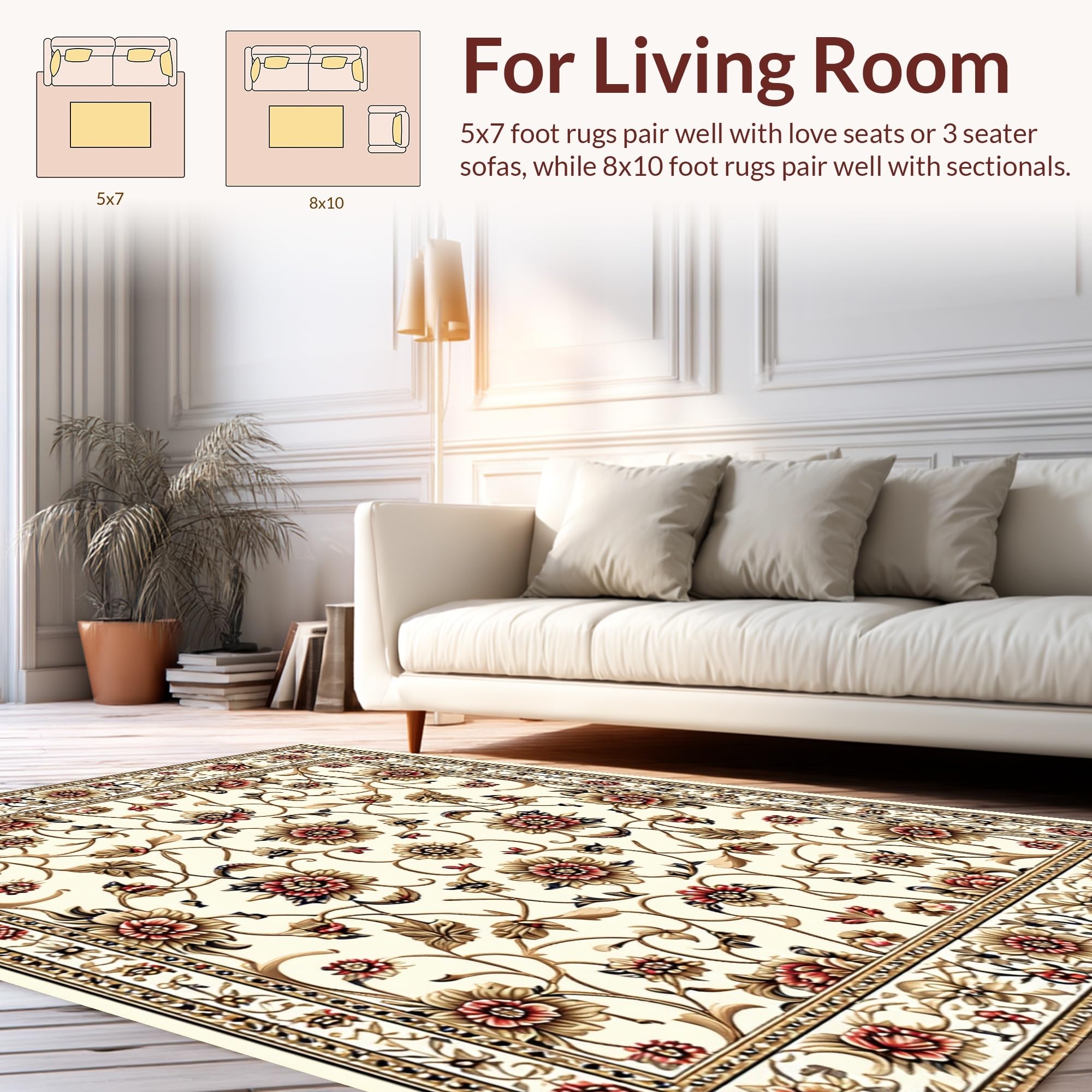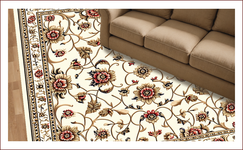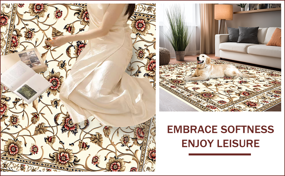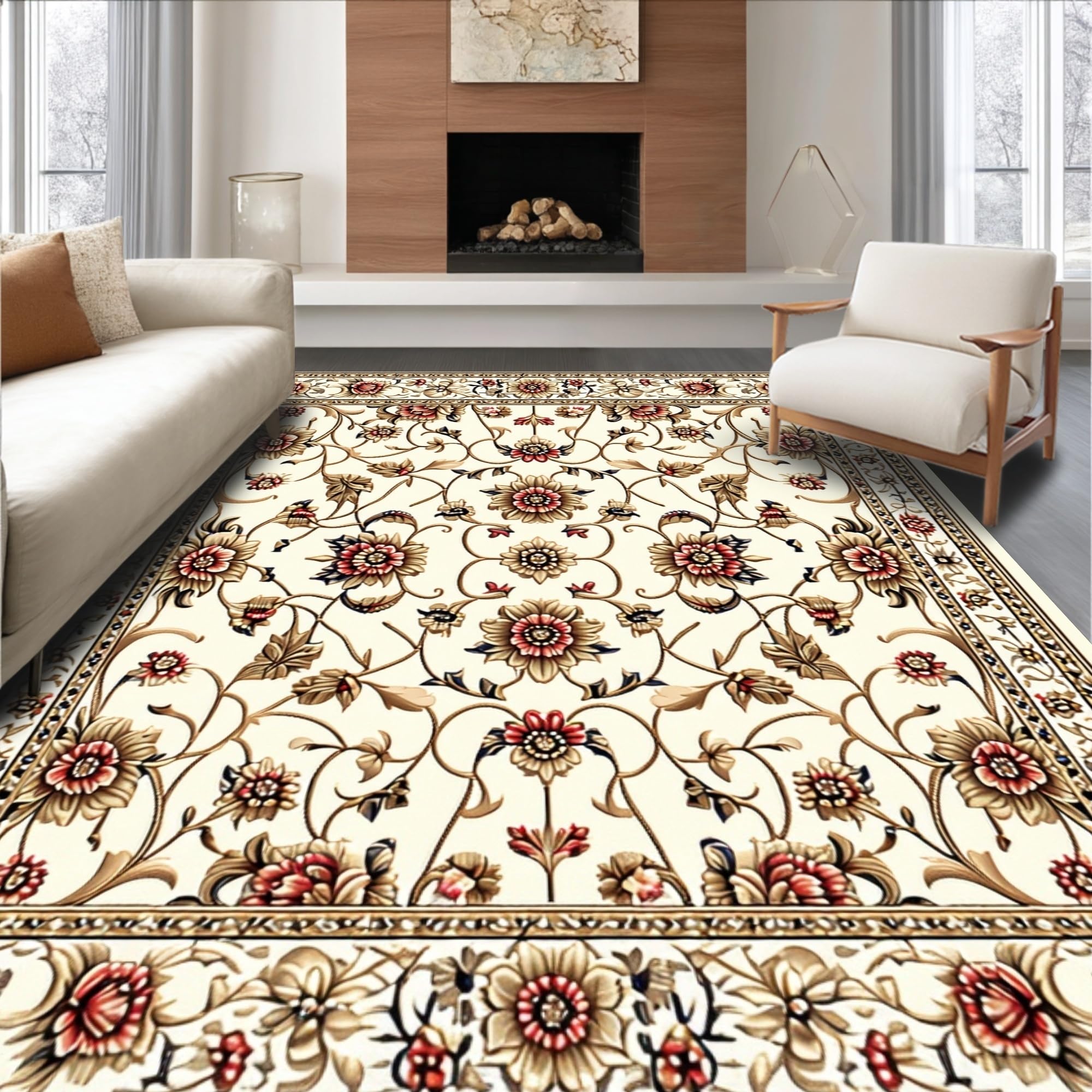 Ultra Soft Area Rug, Non Slip, Stain Resistant, Washable Area Rugs for Living Room, Bedroom, Washable Light Brown Bedroom Floral Area Rug(Beige) Overview: