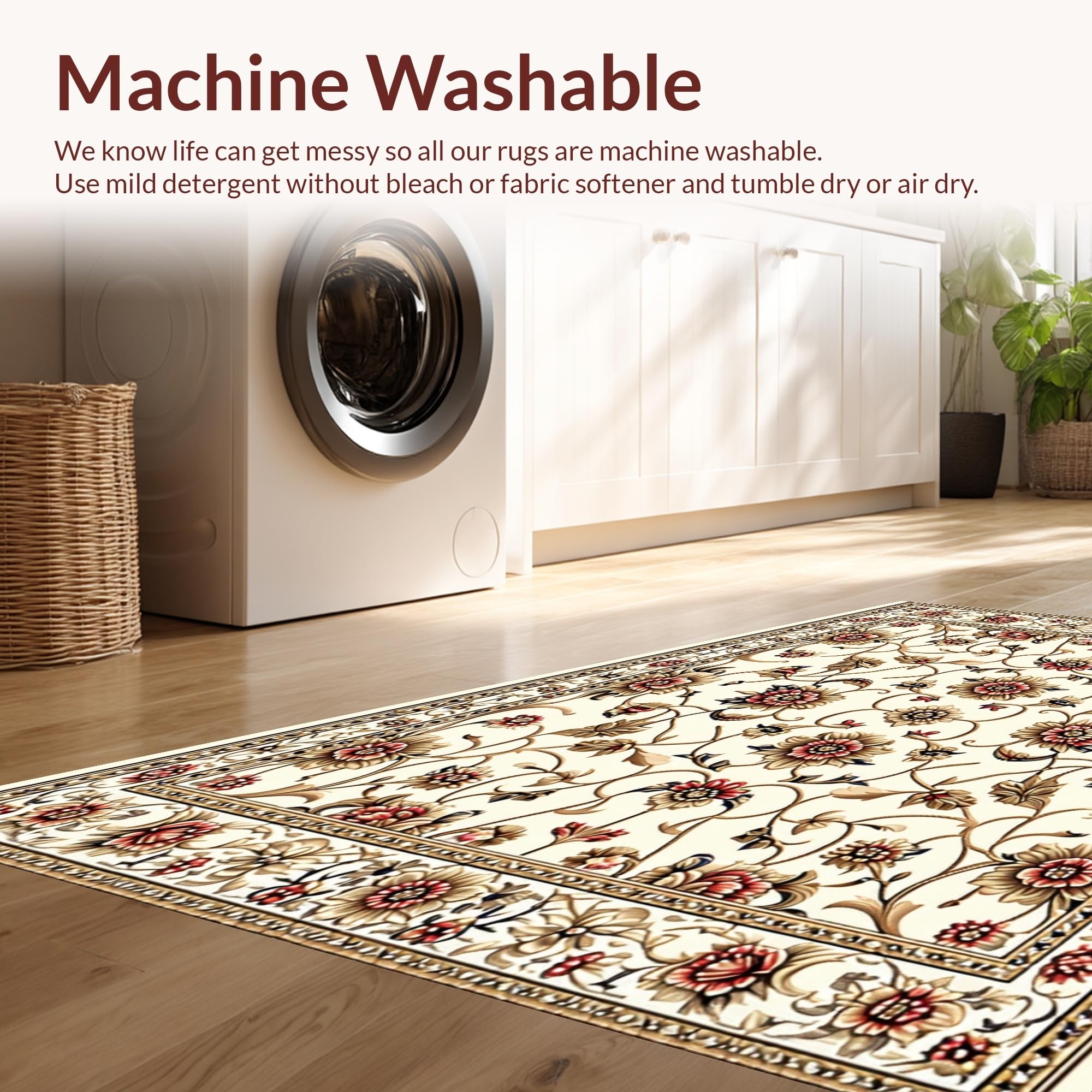 - Machine Washable: Our rugs can be easily thrown in the wash machine.