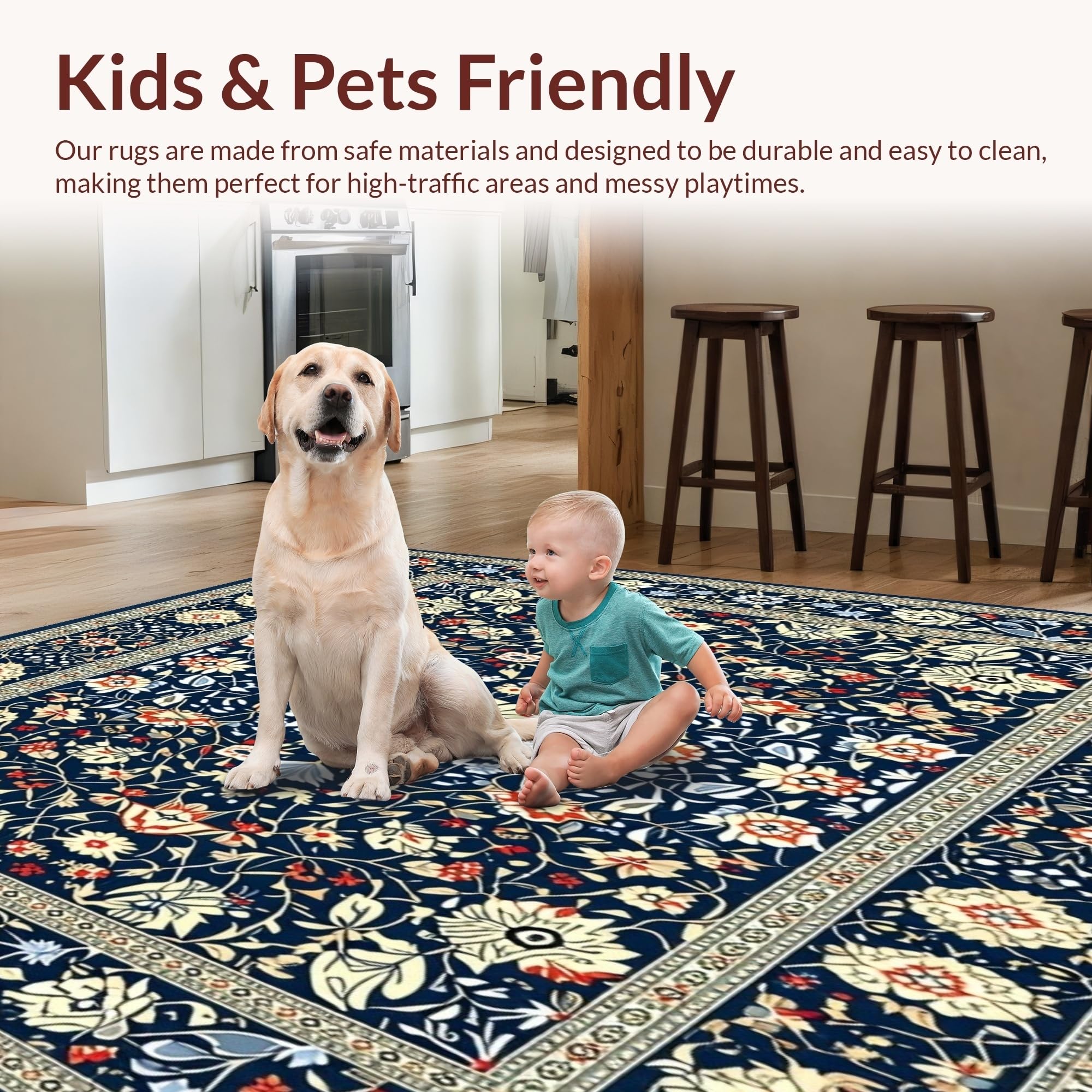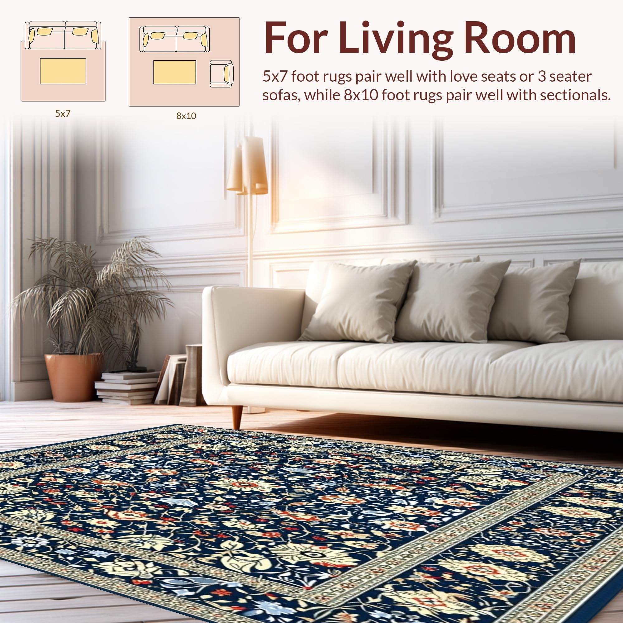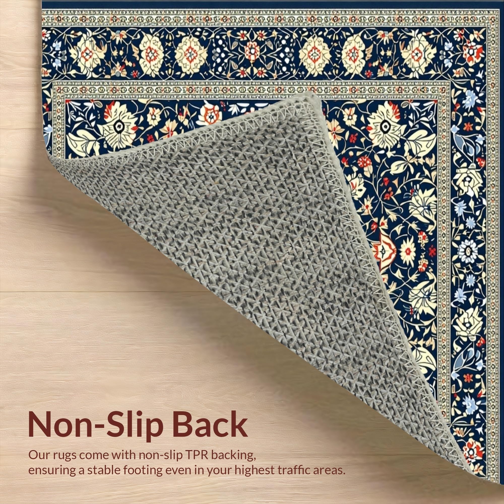 Ultra Soft Area Rug, Non Slip, Stain Resistant, Washable Area Rugs for Living Room, Bedroom, Waterproof Runner with Rustic Botanical Motif(Blue) Overview: