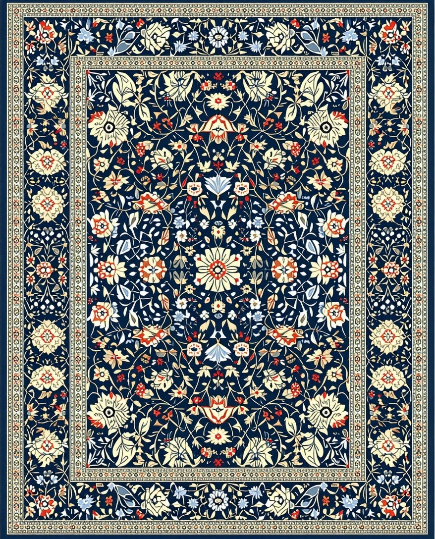 Flatwoven High Traffic Area Rug, Waterproof with Rustic Botanical Motif, Non Slip, Stain Resistant, Washable Area Rugs for Living Room, Bedroom (Blue) Overview: