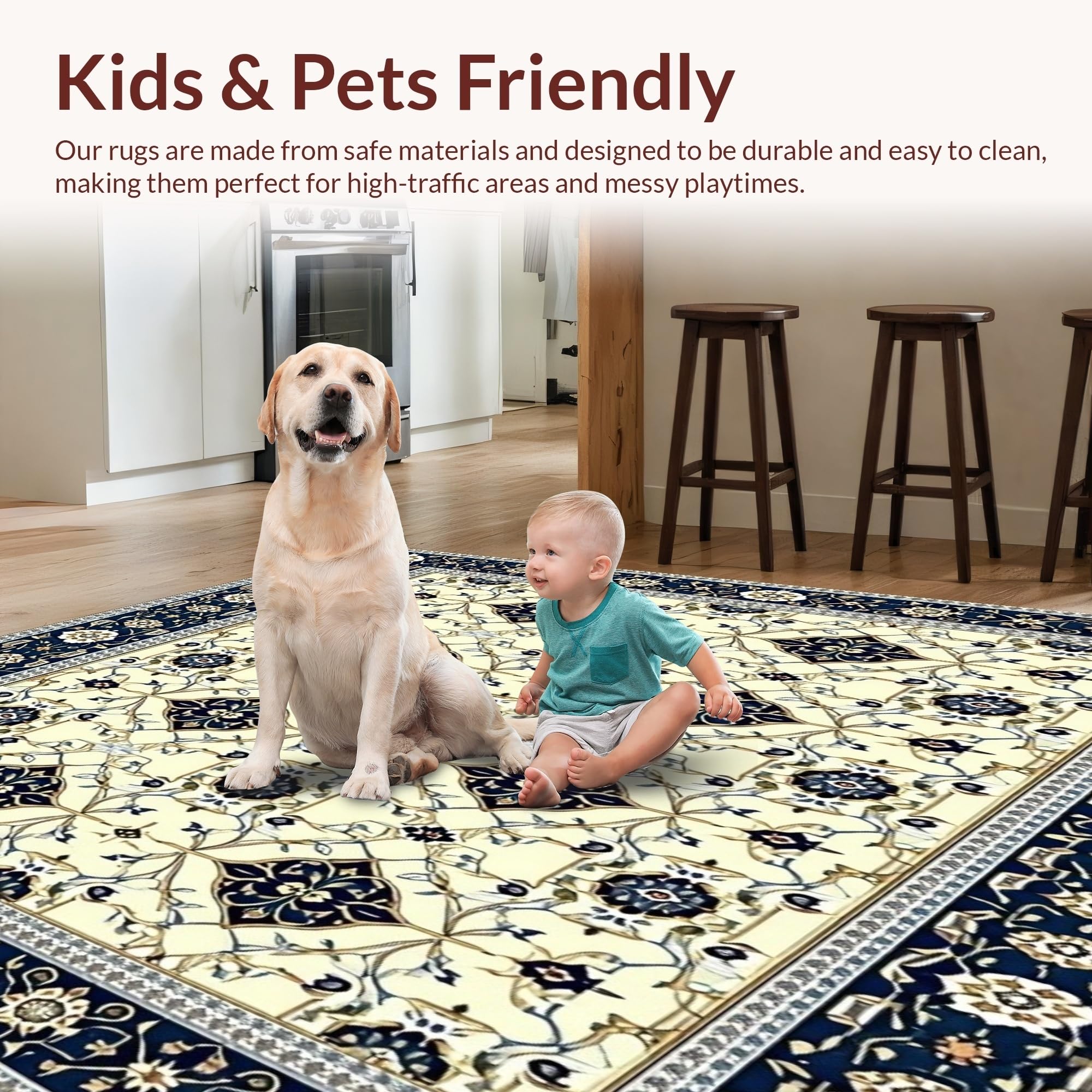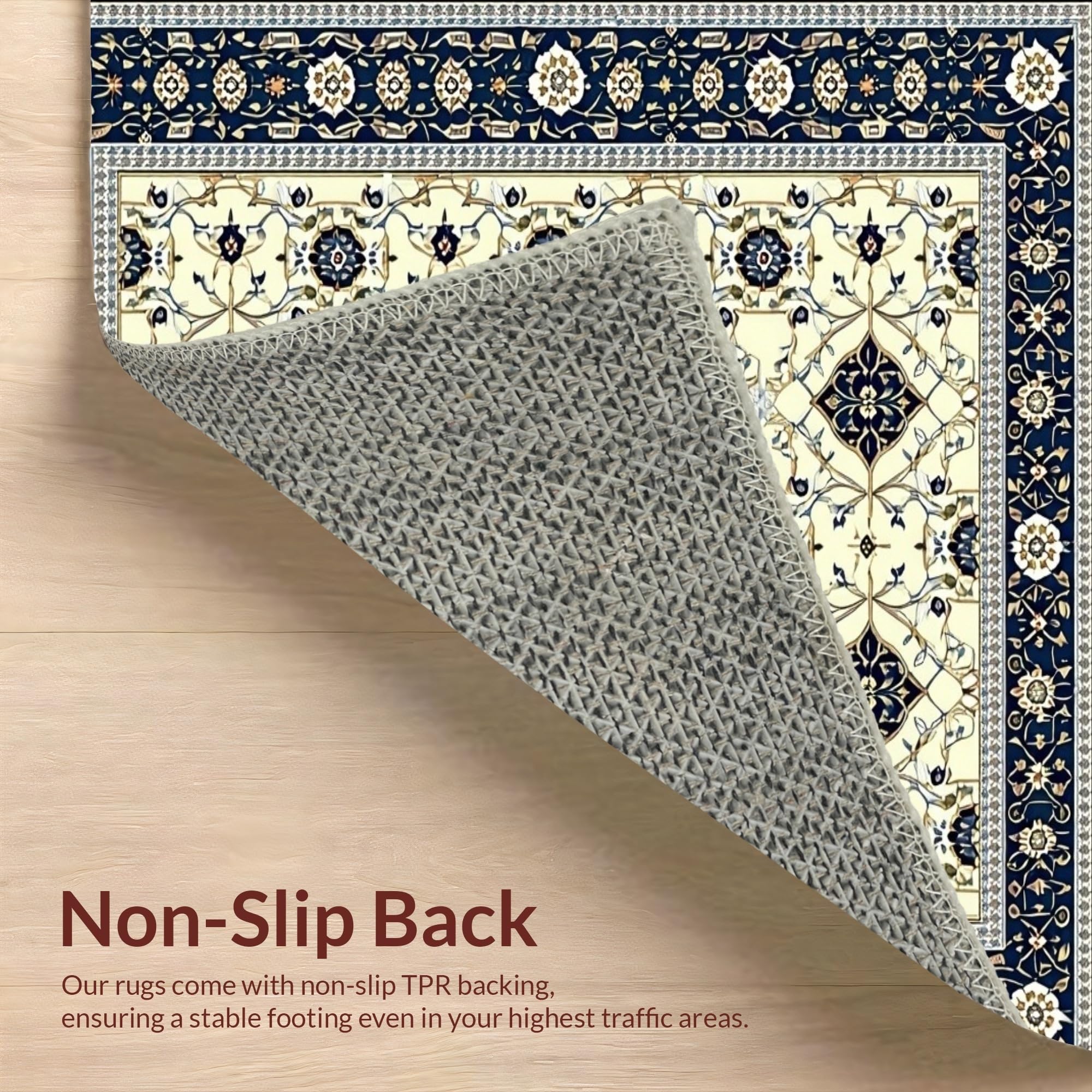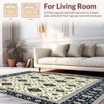 Ultra Soft Area Rug, Non Slip, Stain Resistant, Washable Area Rugs for Living Room, Bedroom, Waterproof Trellis Design Navy and Beige Patio(Ivory) Overview: