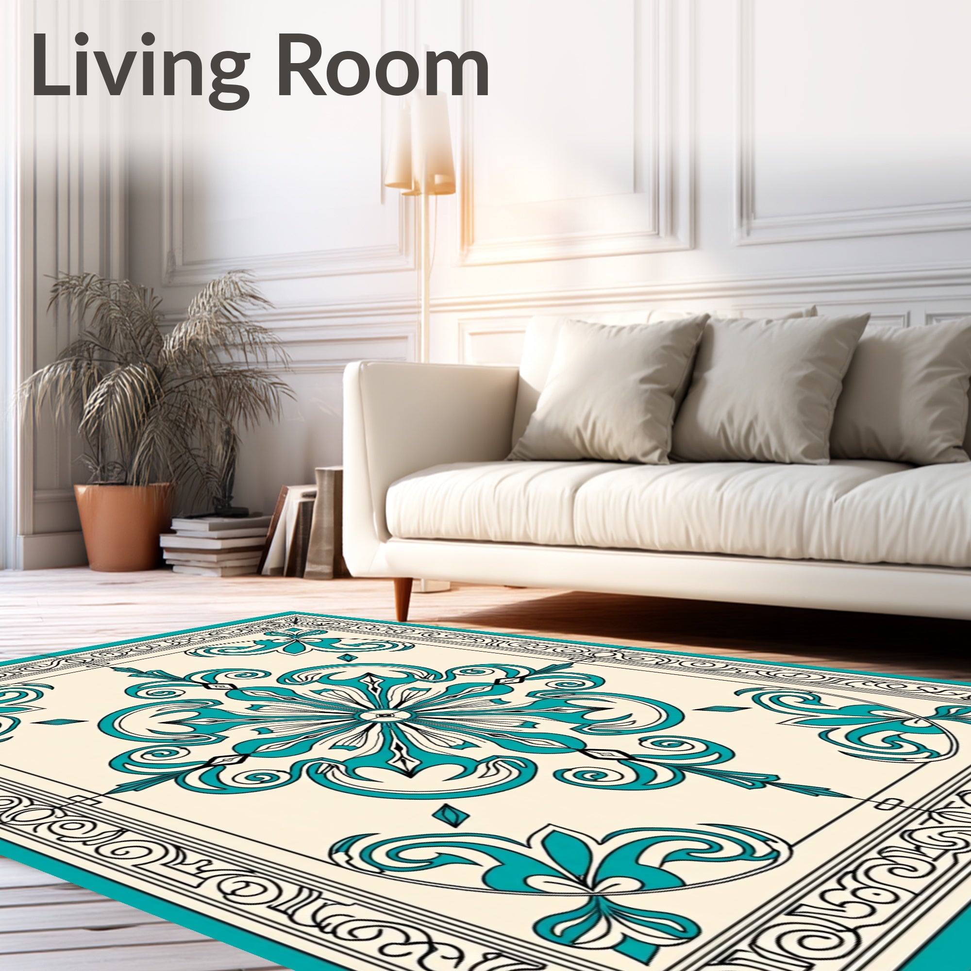 Ultra Soft Area Rug, Non Slip, Stain Resistant, Washable Area Rugs for Living Room, Bedroom, Wave Medallion with Intricate Border Design(Blue) Overview: