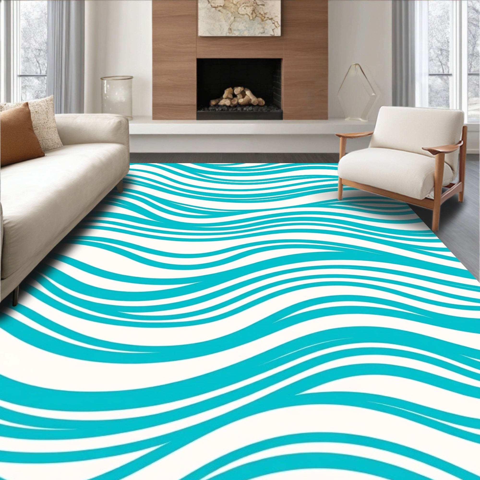 Flatwoven High Traffic Area Rug, Wave Ripple Nautical Tropical, Non Slip, Stain Resistant, Washable Area Rugs for Living Room, Bedroom (Blue) Overview: