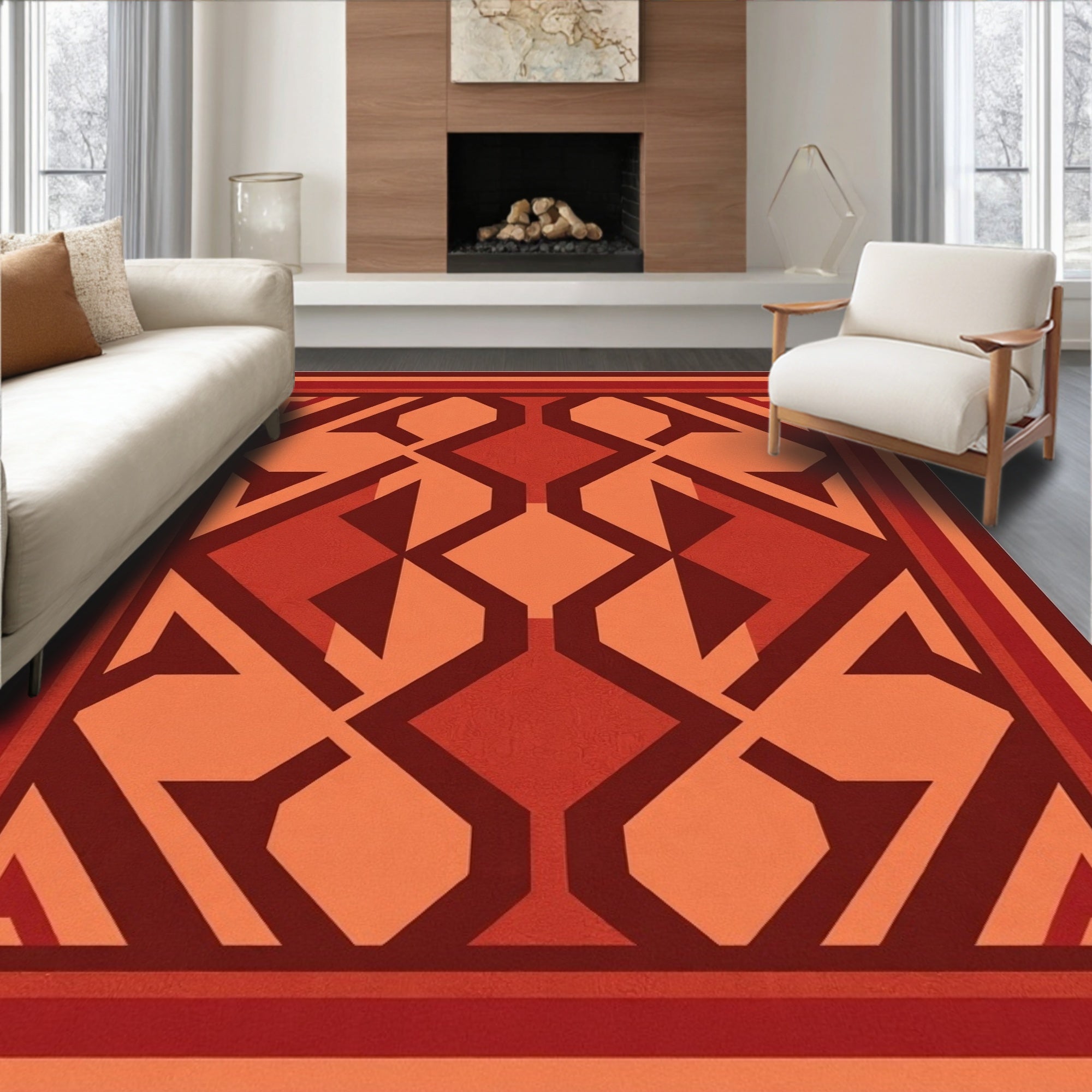 Ultra Soft Area Rug, Non Slip, Stain Resistant, Washable Area Rugs for Living Room, Bedroom, Weatherproof Collection with Interlocking Motifs(Red) Overview: