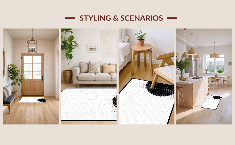 Ultra Soft Area Rug, Non Slip, Stain Resistant, Washable Area Rugs for Living Room, Bedroom, Western Inspired Abstract Patterns(Black) Overview: