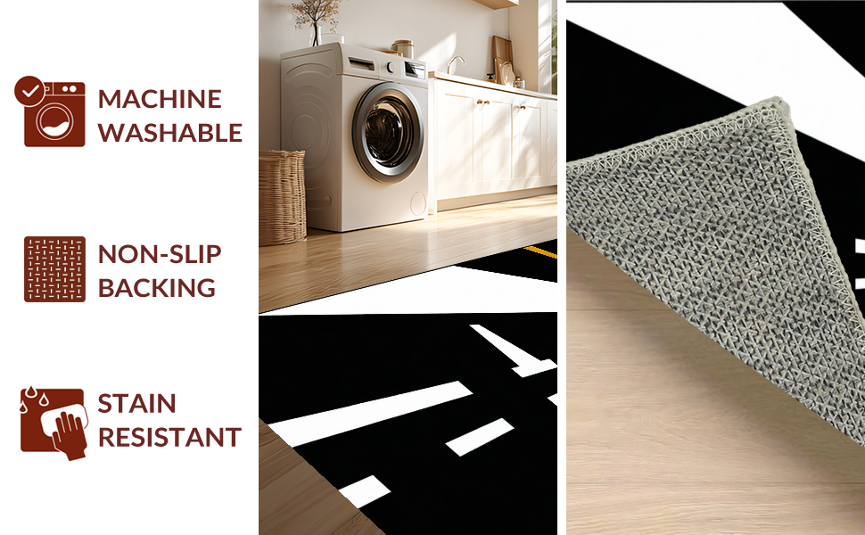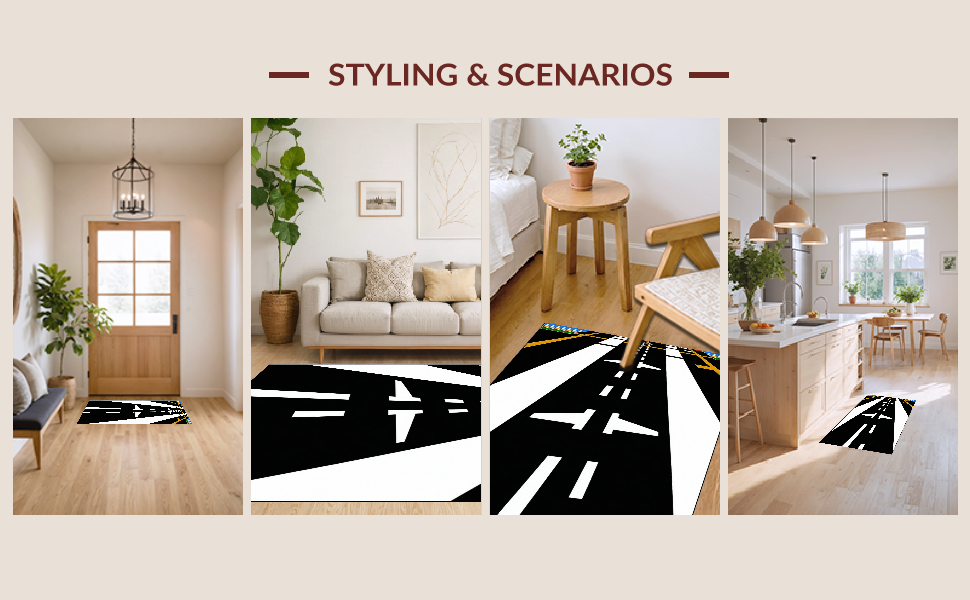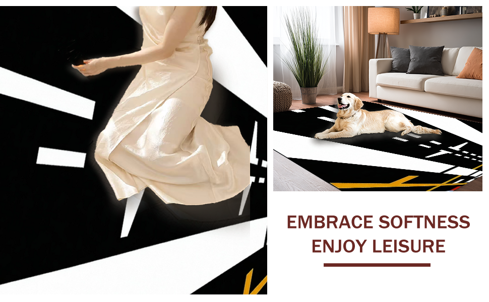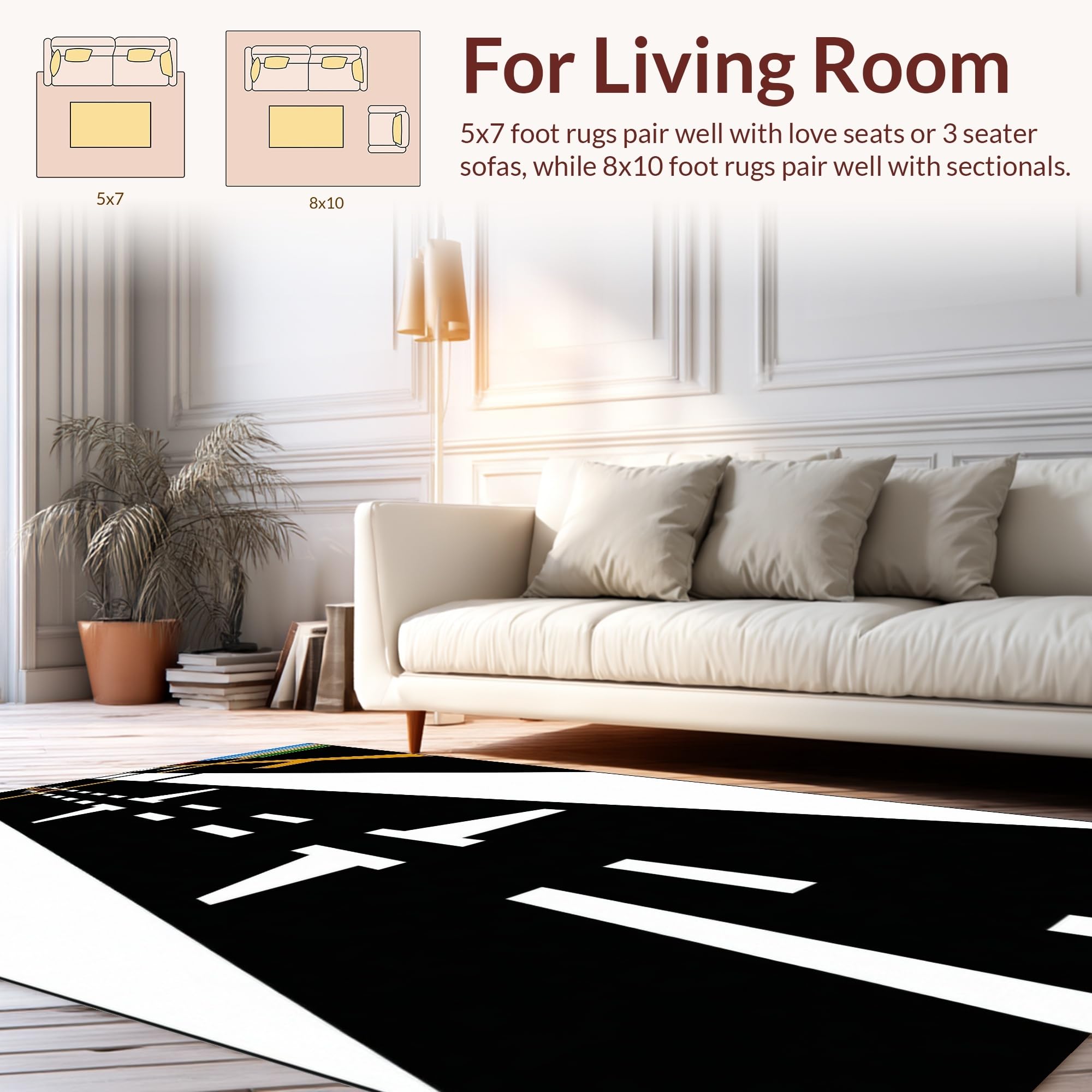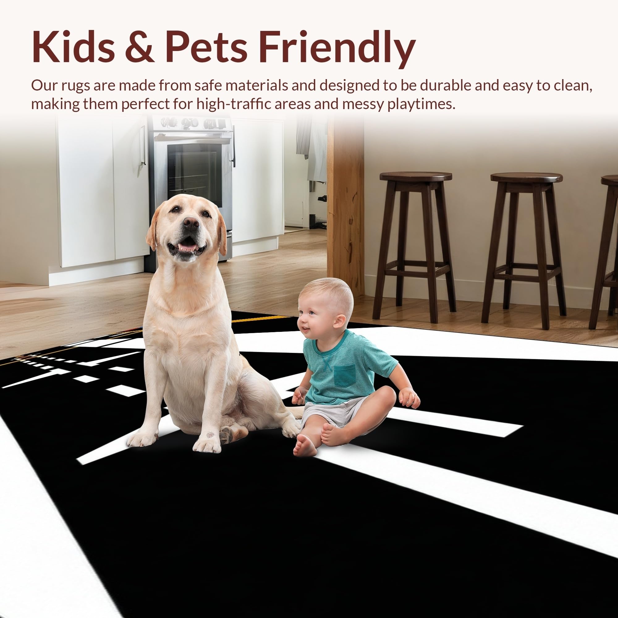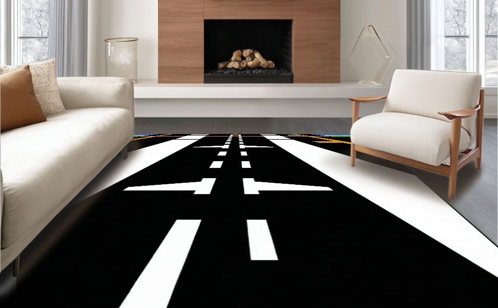Ultra Soft Area Rug, Non Slip, Stain Resistant, Washable Area Rugs for Living Room, Bedroom, Whimsical Airport Scene Decorative Piece(Black) Overview: