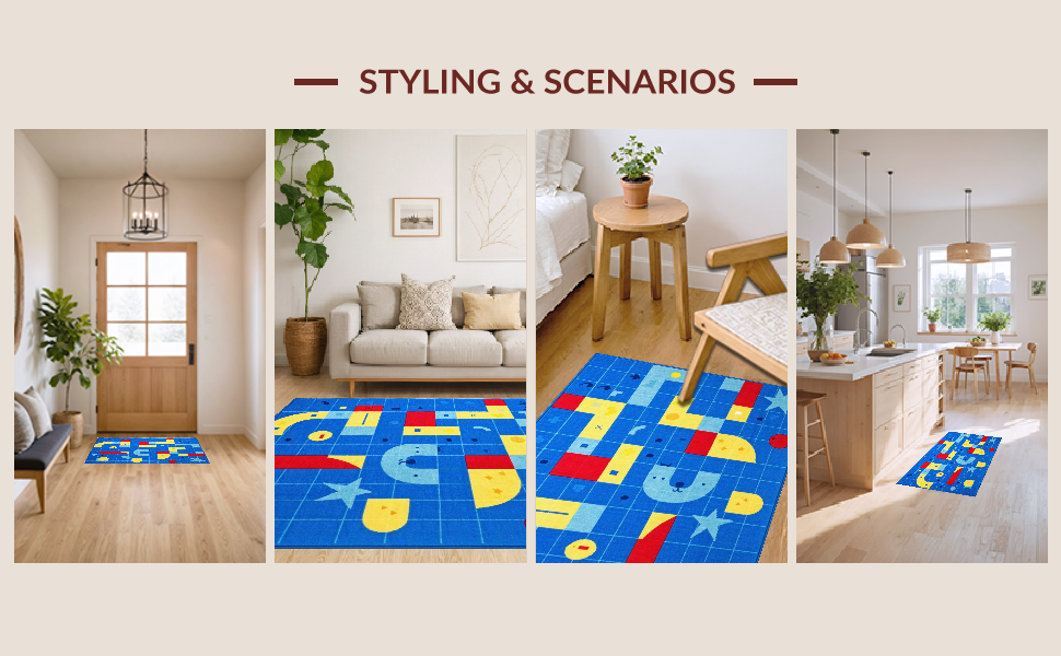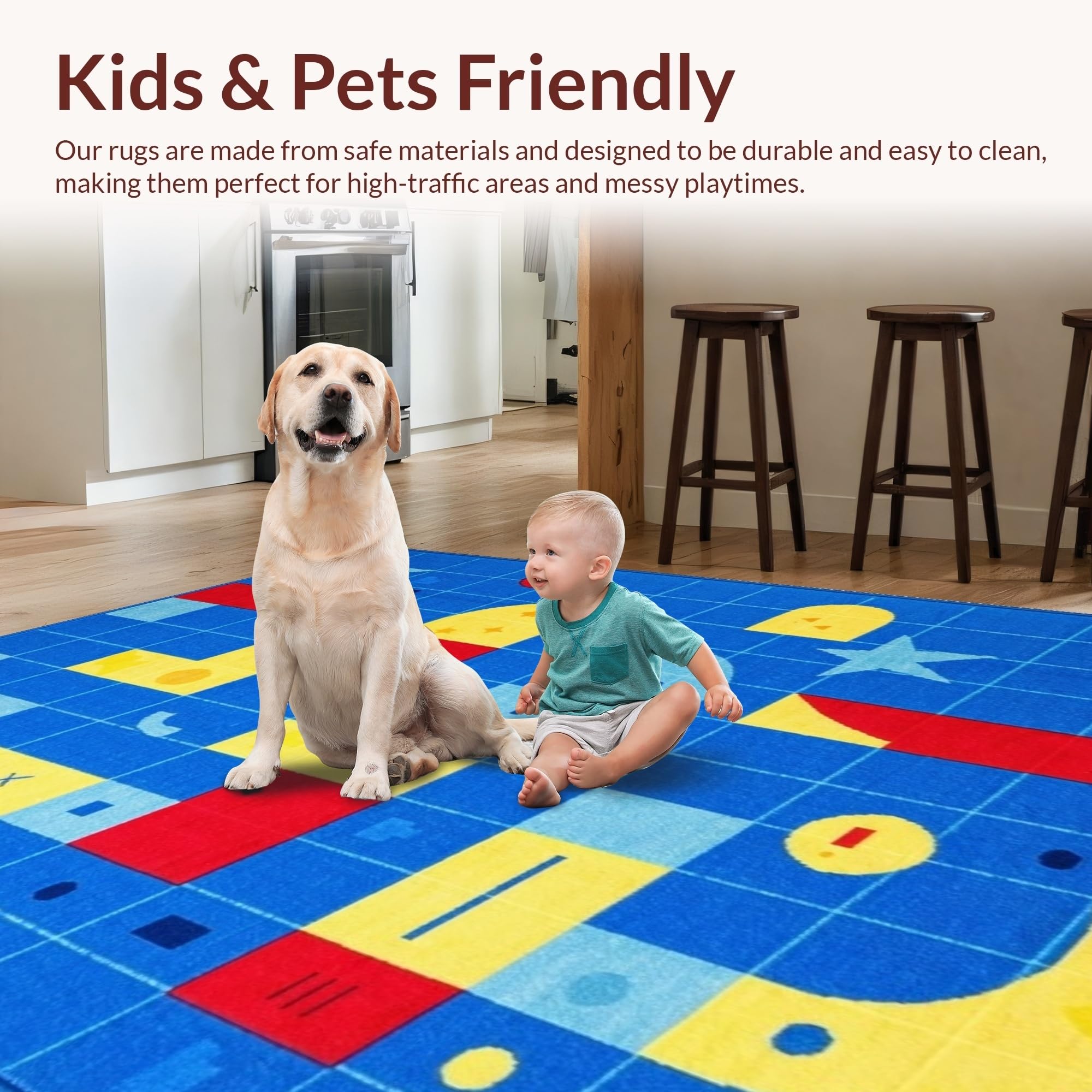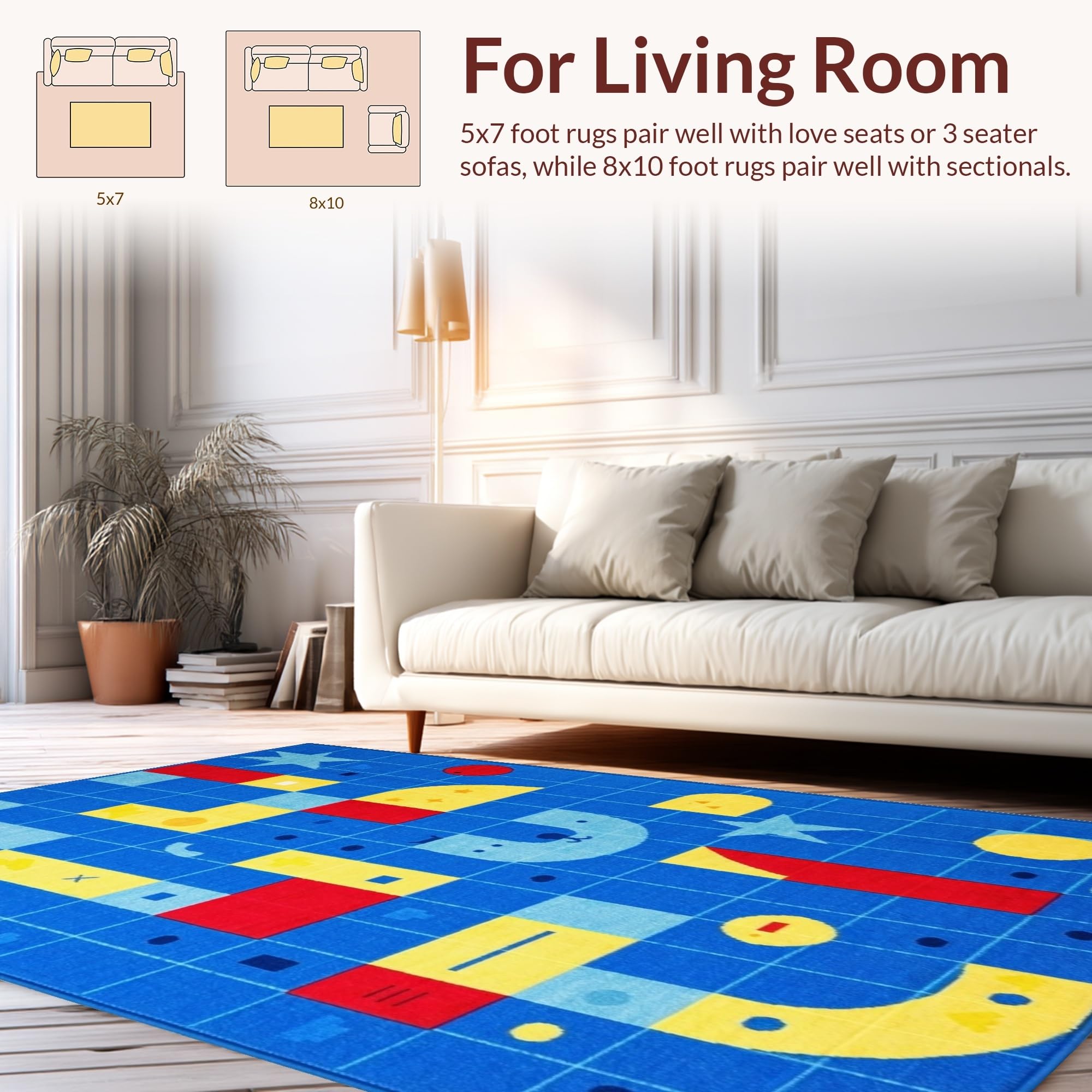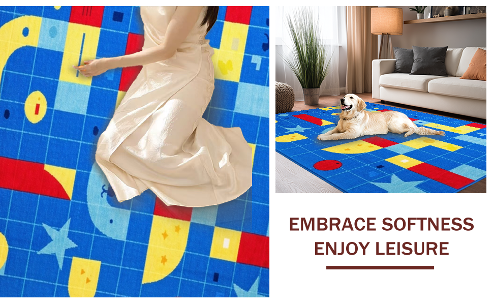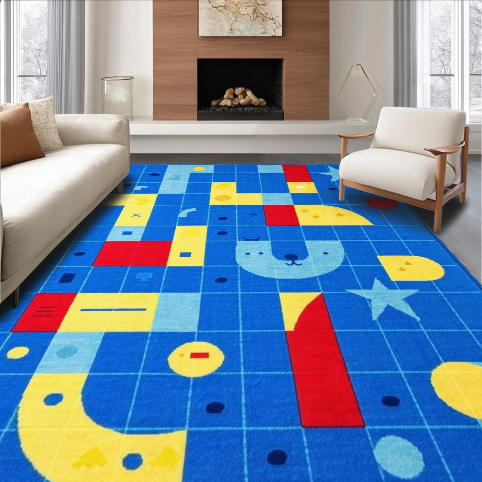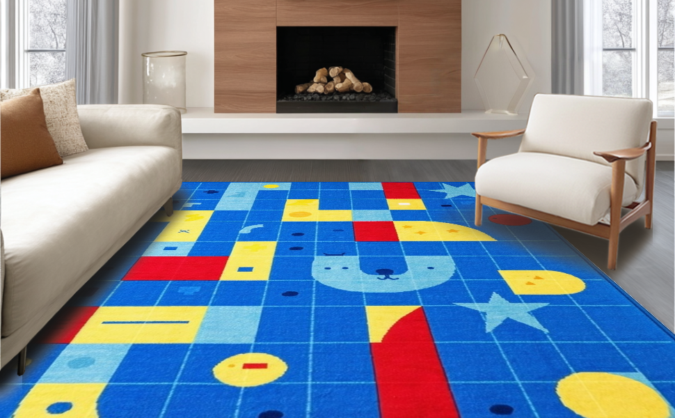 Ultra Soft Area Rug, Non Slip, Stain Resistant, Washable Area Rugs for Living Room, Bedroom, Whimsical Animal Character Theme(Blue) Overview:
