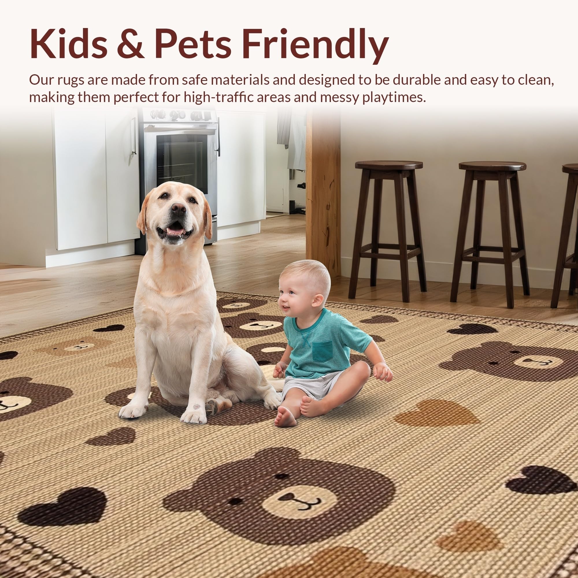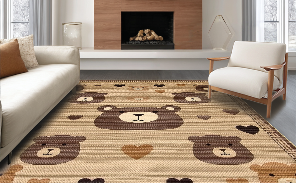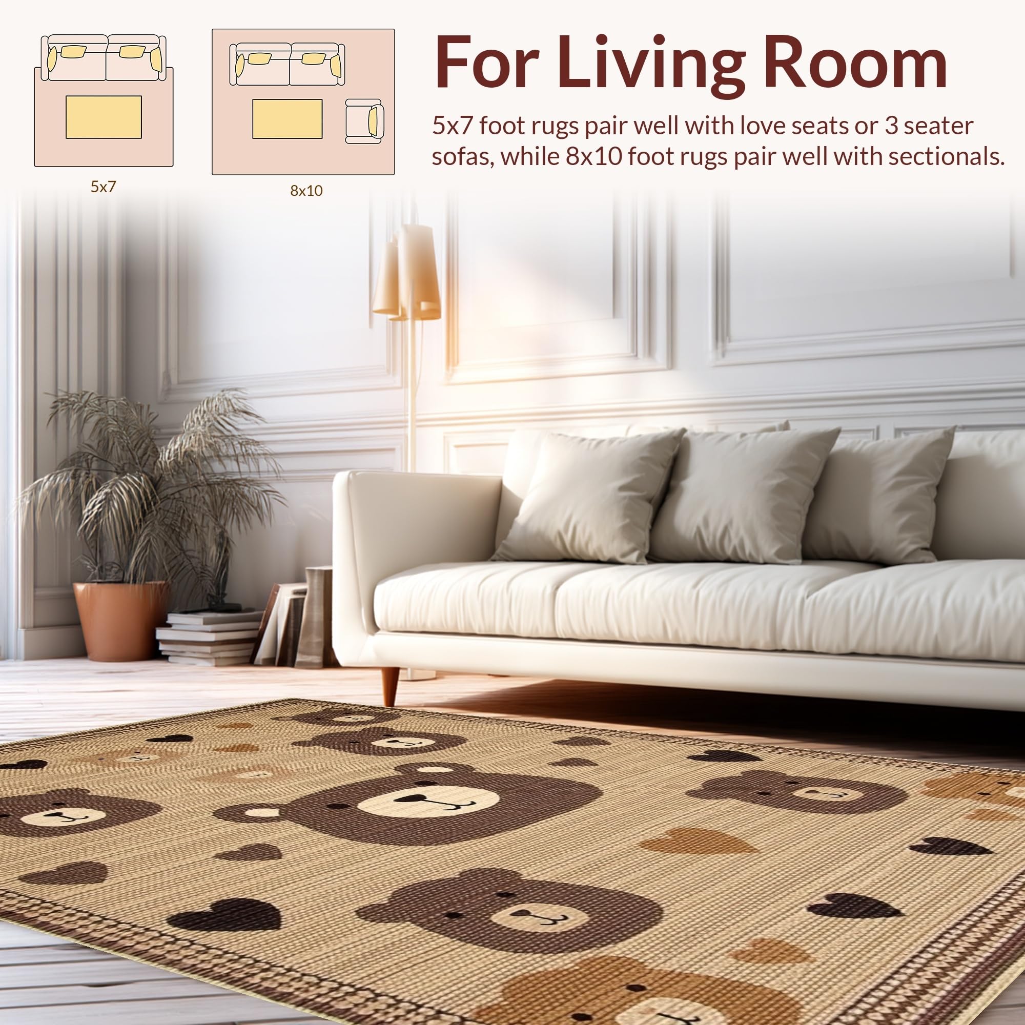 Ultra Soft Area Rug, Non Slip, Stain Resistant, Washable Area Rugs for Living Room, Bedroom, Whimsical Animal Print Aesthetic(Beige) Overview: