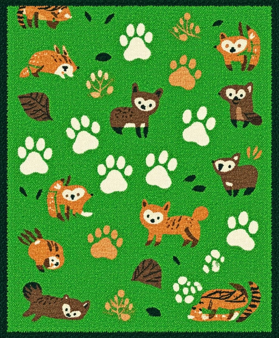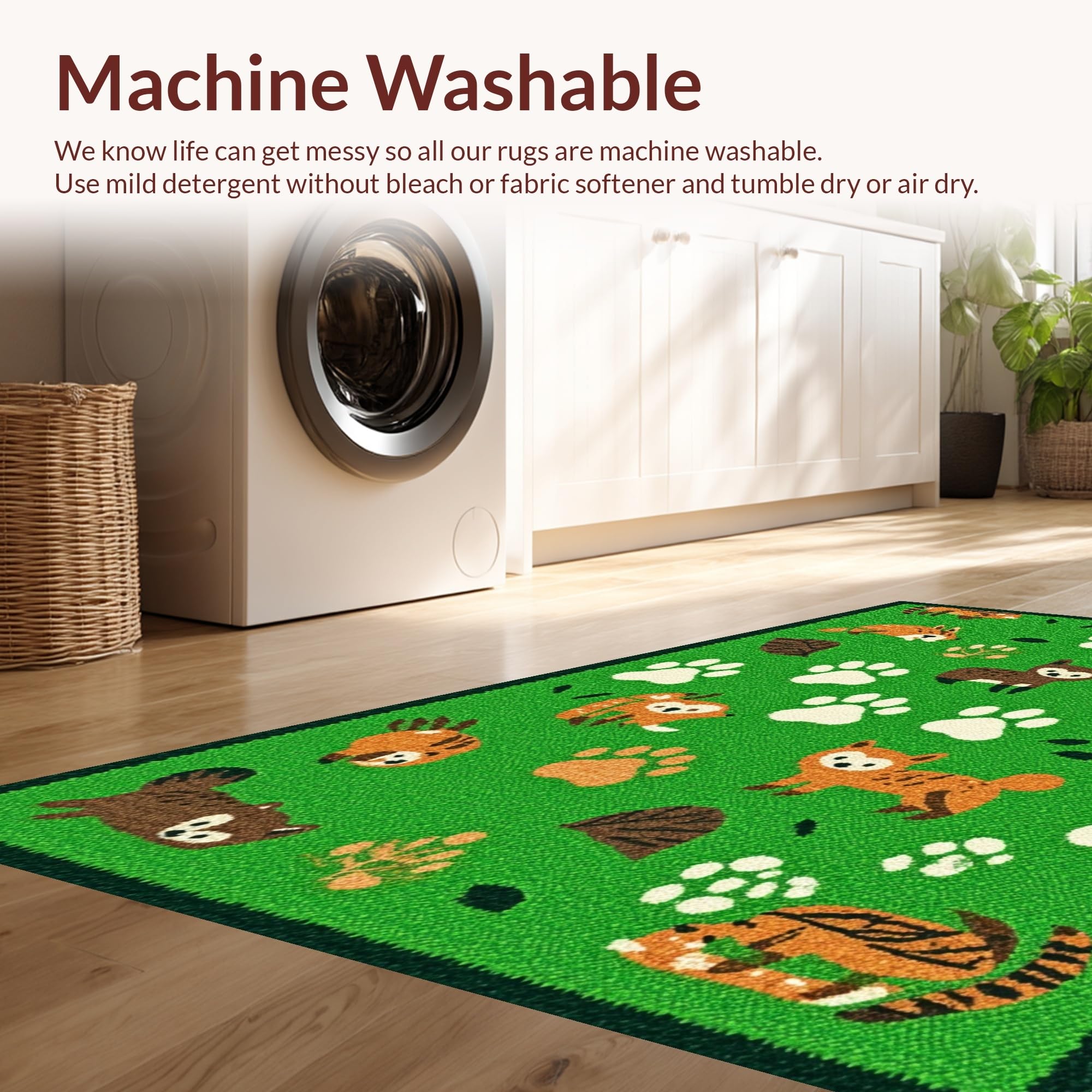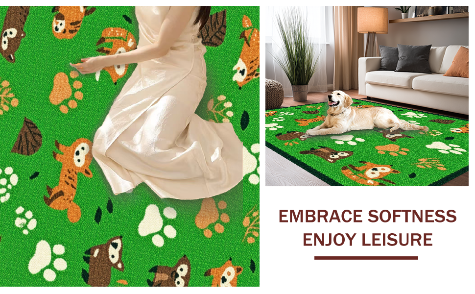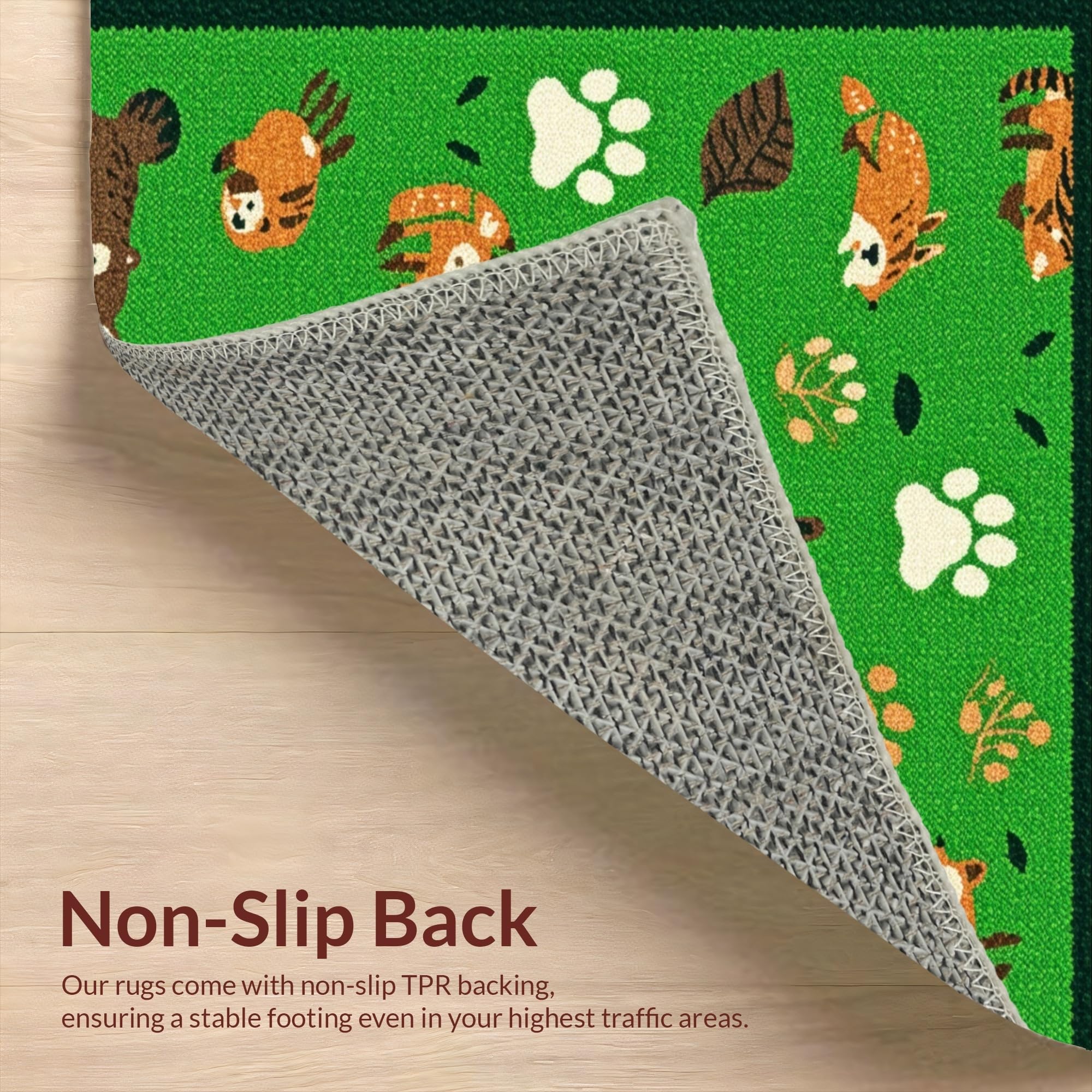 Ultra Soft Area Rug, Non Slip, Stain Resistant, Washable Area Rugs for Living Room, Bedroom, Whimsical Animal Track Motif(Green) Overview: