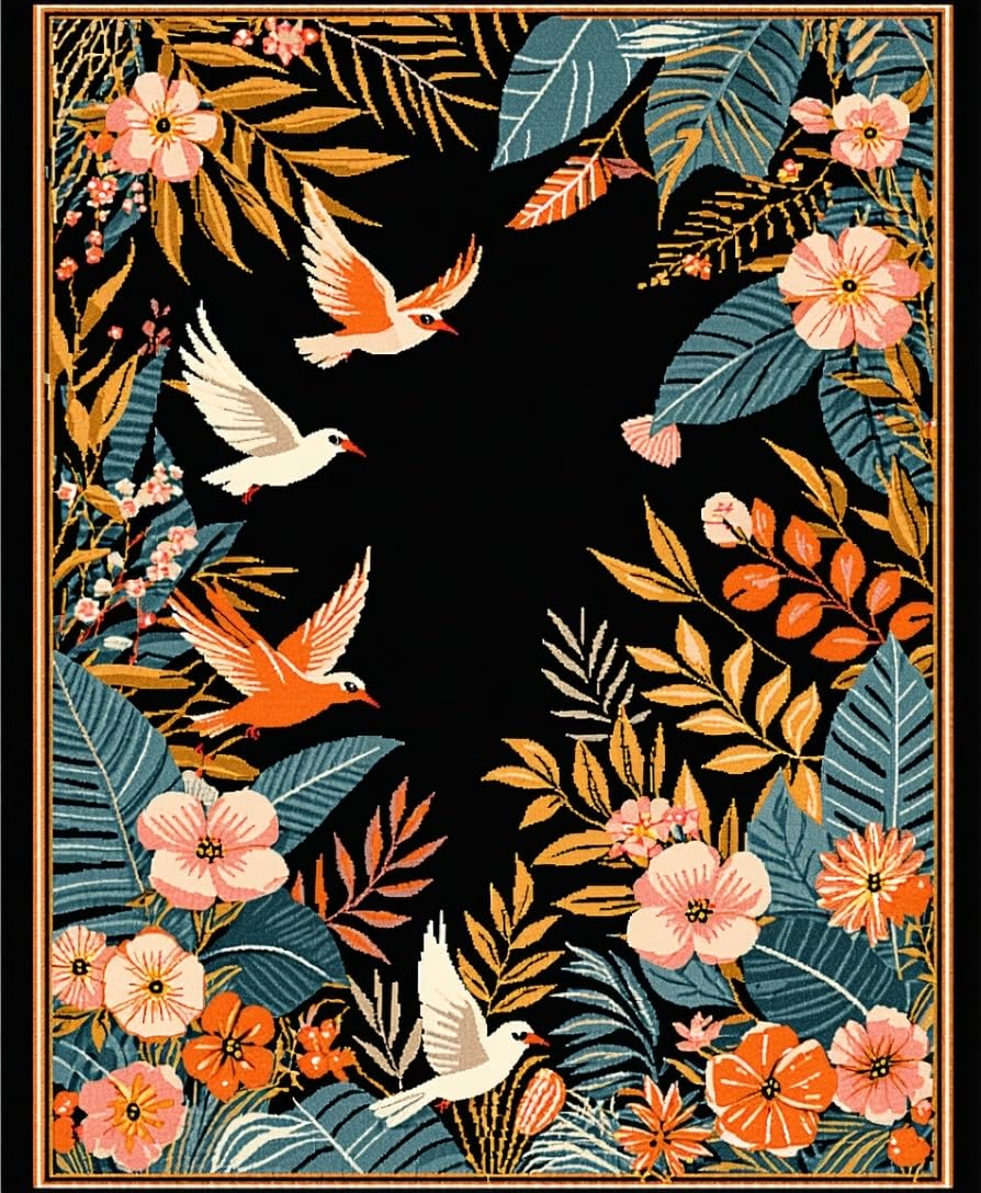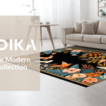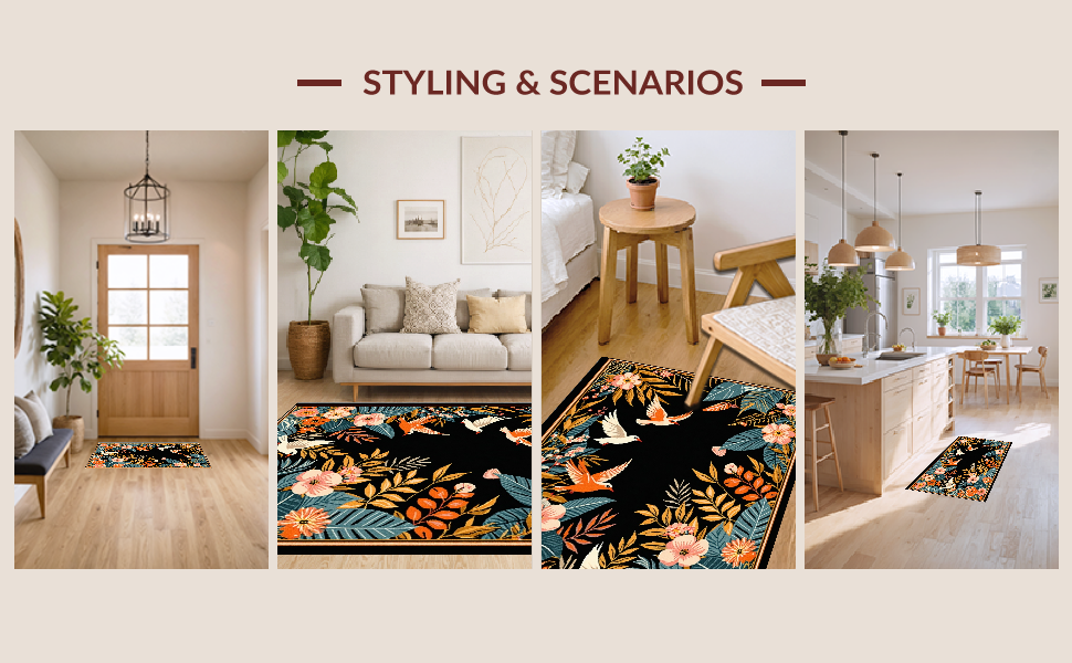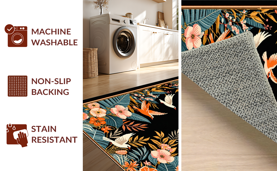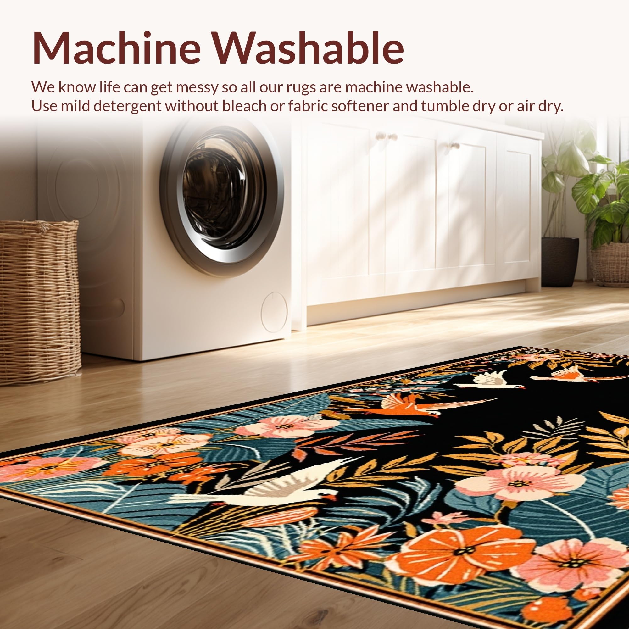 Ultra Soft Area Rug, Non Slip, Stain Resistant, Washable Area Rugs for Living Room, Bedroom, Whimsical Bright Floral Elegance(Black) Overview: