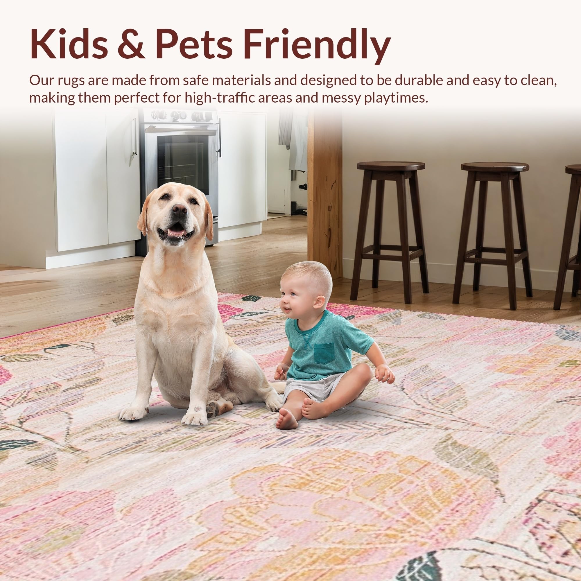 Ultra Soft Area Rug, Non Slip, Stain Resistant, Washable Area Rugs for Living Room, Bedroom, Whimsical Bright Geometric Shapes(Pink) Overview: