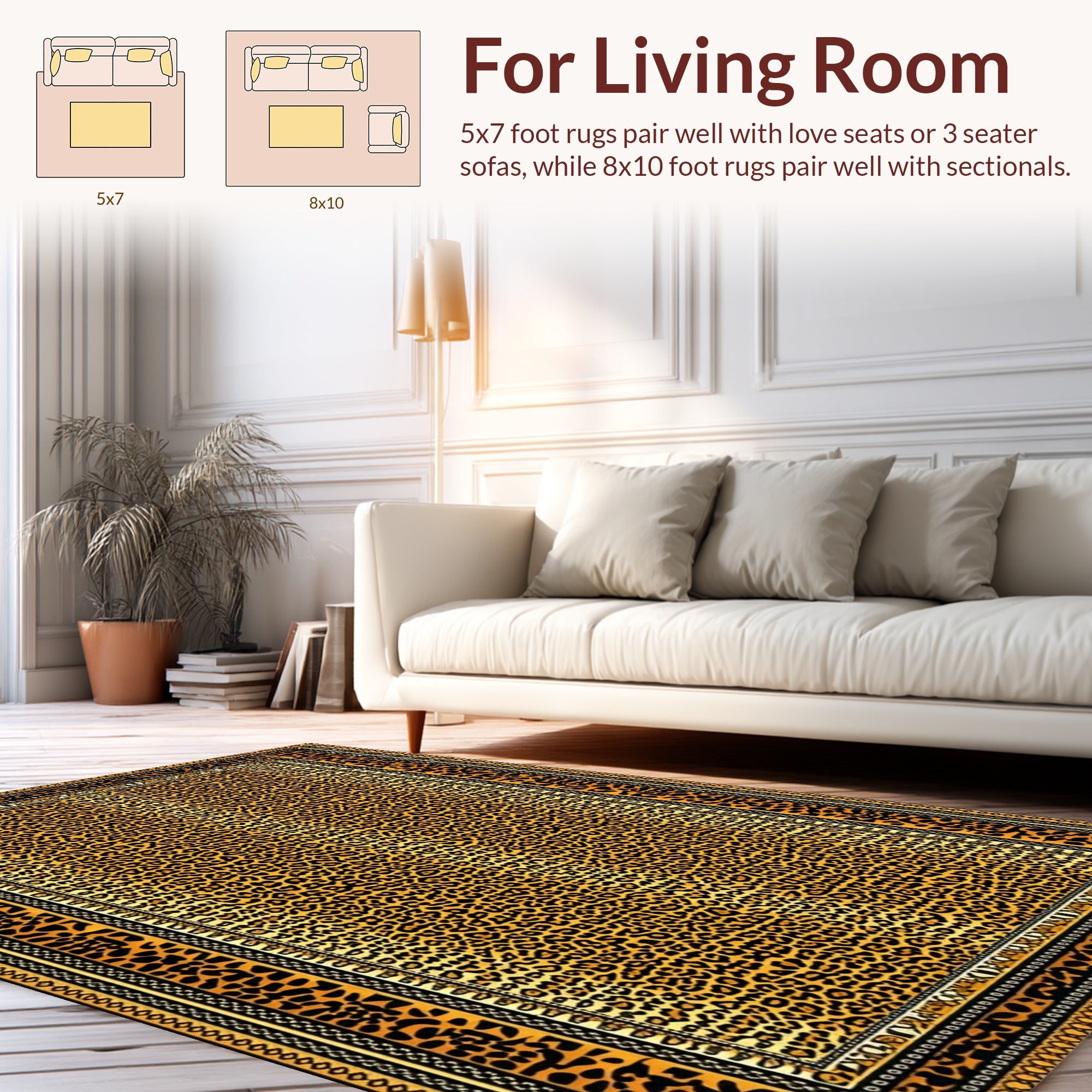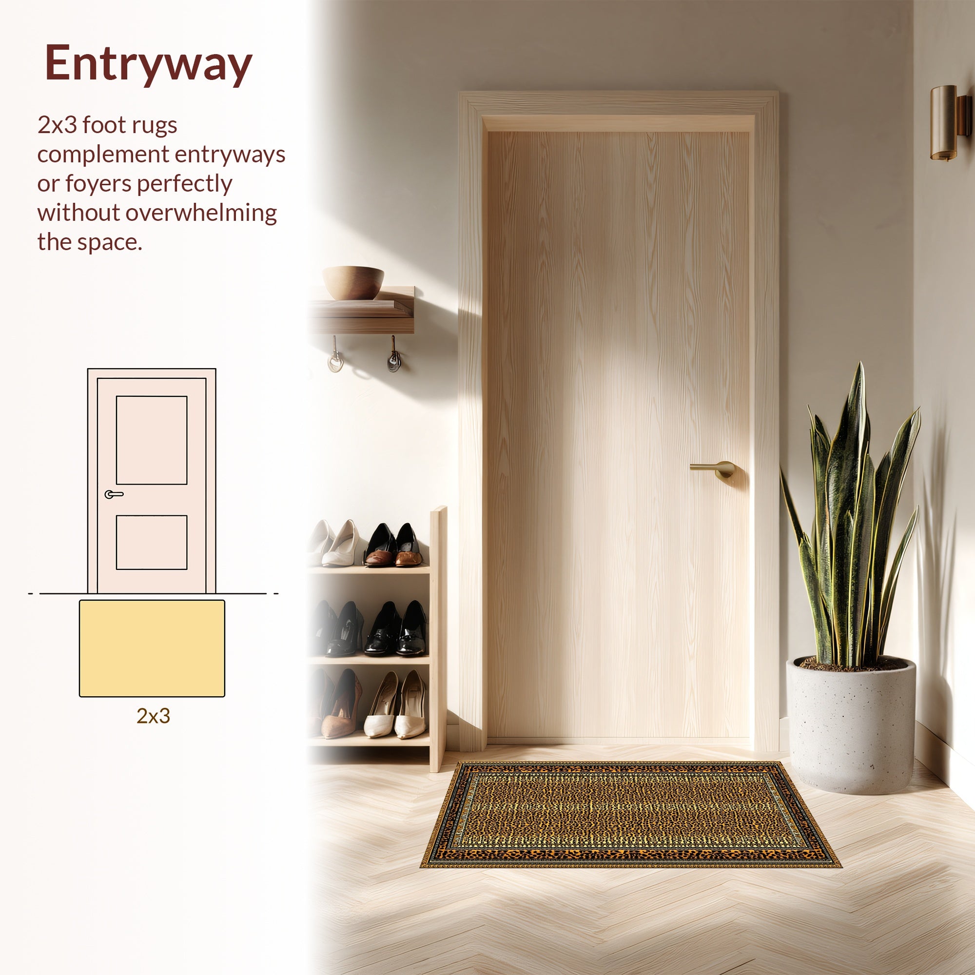 Flatwoven High Traffic Area Rug, Whimsical Jungle Theme, Non Slip, Stain Resistant, Washable Area Rugs for Living Room, Bedroom (Brown) Overview: