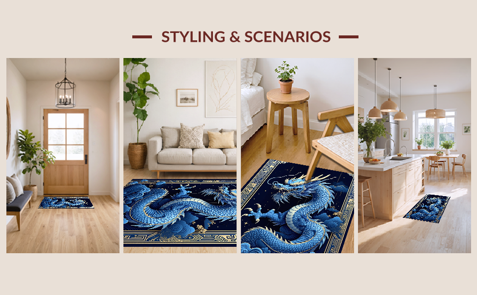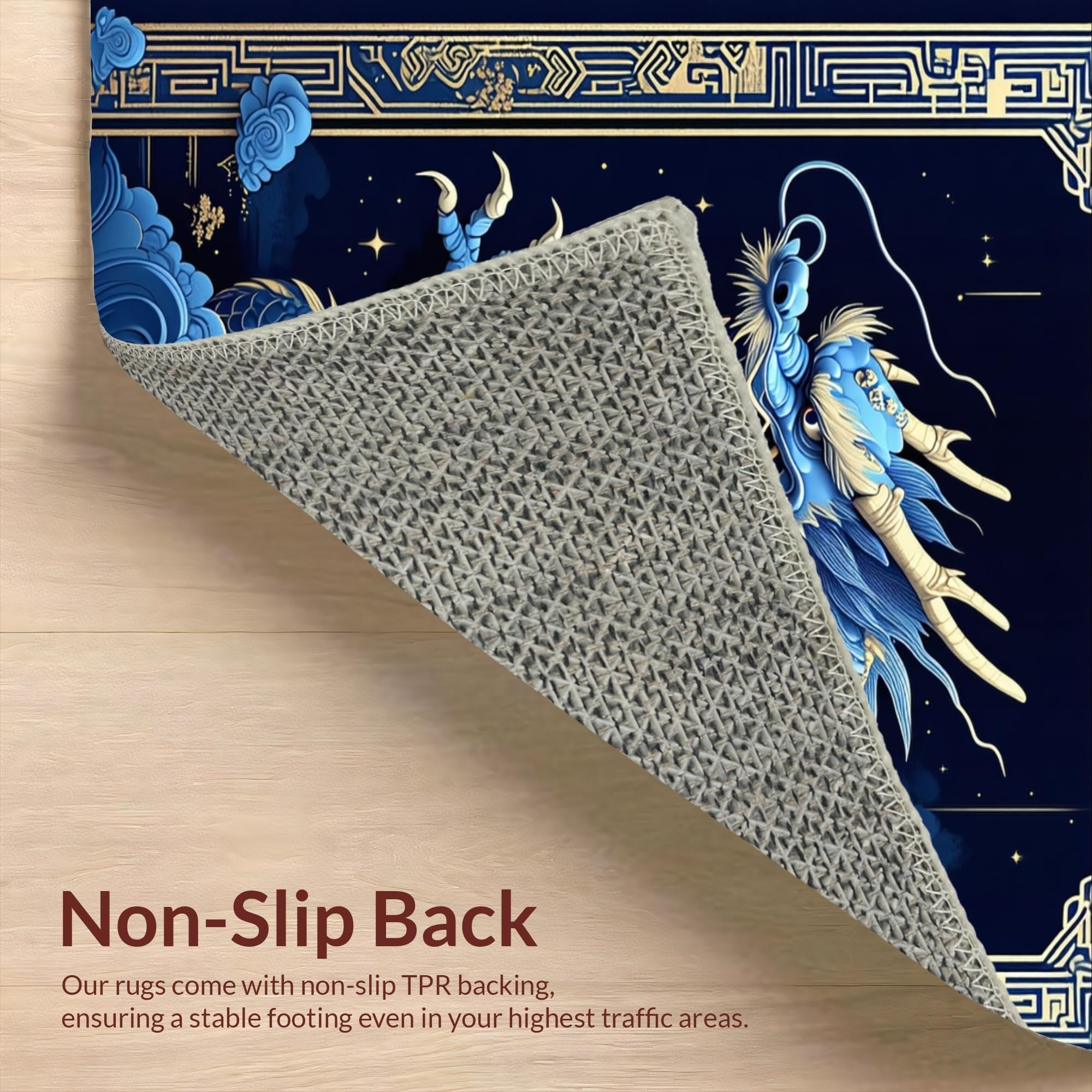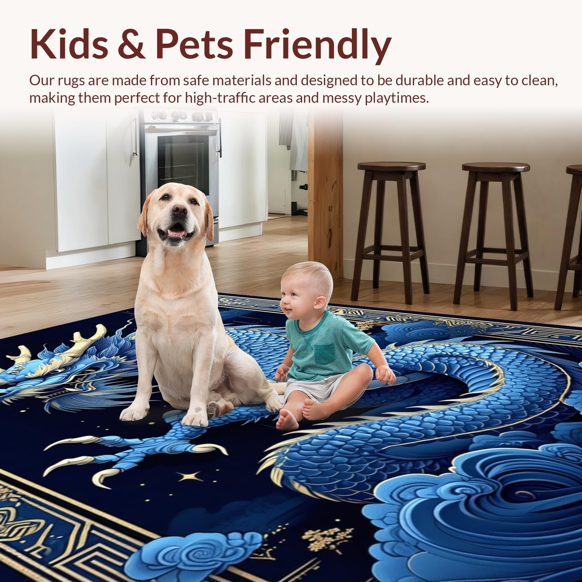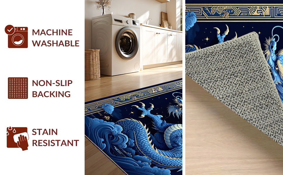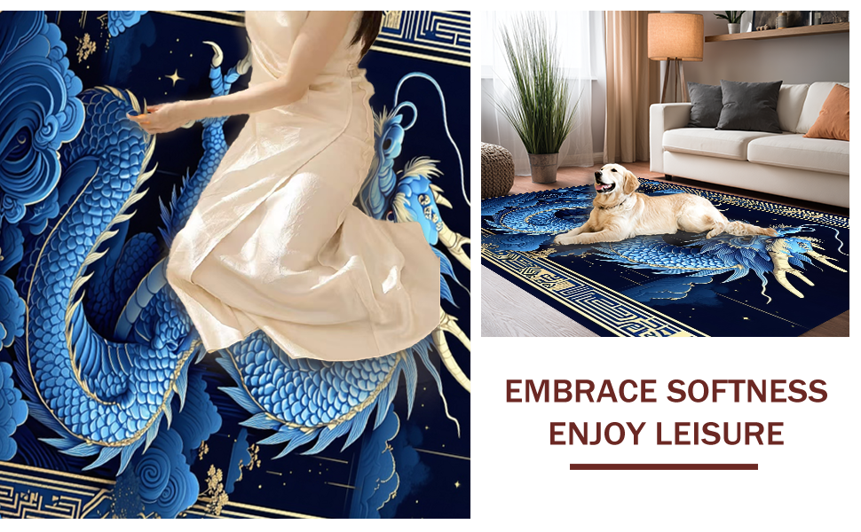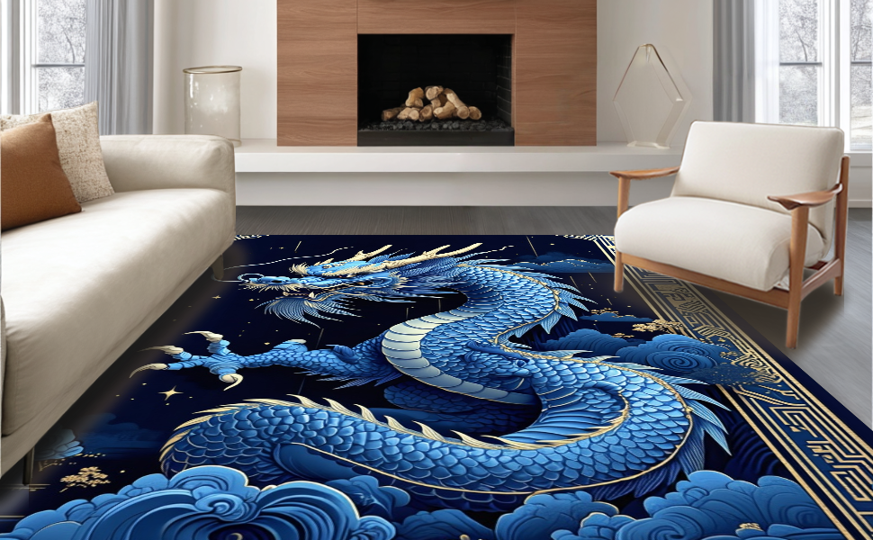 Ultra Soft Area Rug, Non Slip, Stain Resistant, Washable Area Rugs for Living Room, Bedroom, Whimsical Celestial Dragon Concept(Blue) Overview: