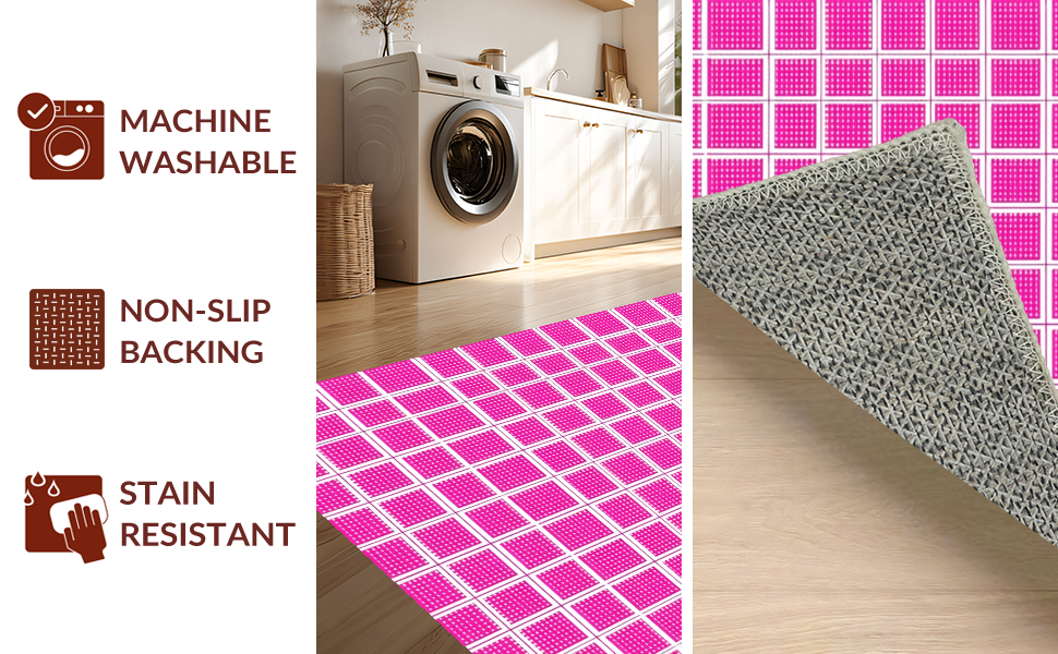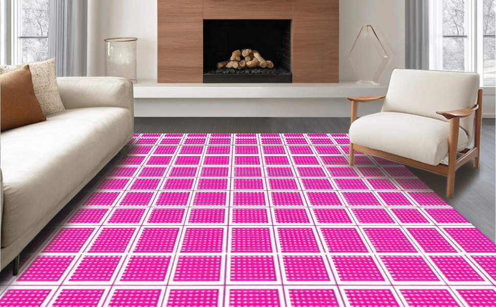 Ultra Soft Area Rug, Non Slip, Stain Resistant, Washable Area Rugs for Living Room, Bedroom, Whimsical Checkerboard Aesthetic(Pink) Overview: