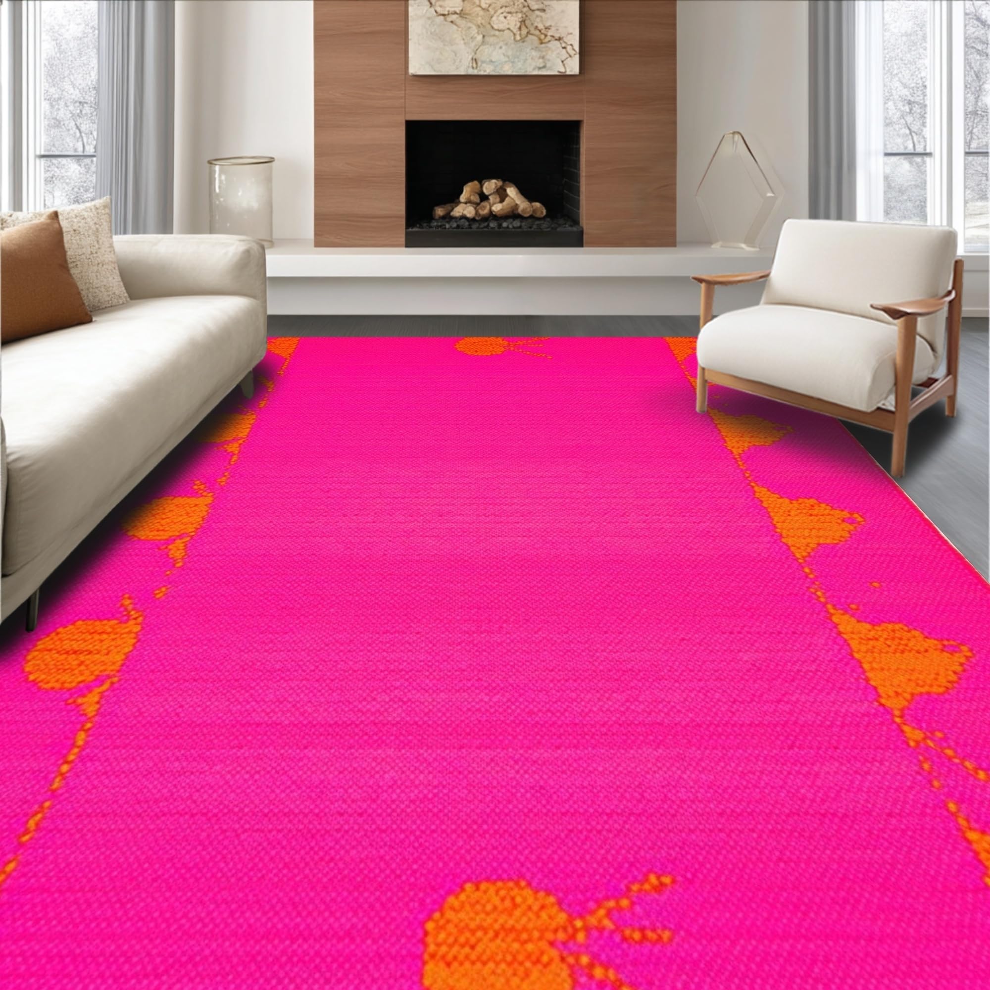 Ultra Soft Area Rug, Non Slip, Stain Resistant, Washable Area Rugs for Living Room, Bedroom, Whimsical Cherry Bomb Theme(Pink) Overview: