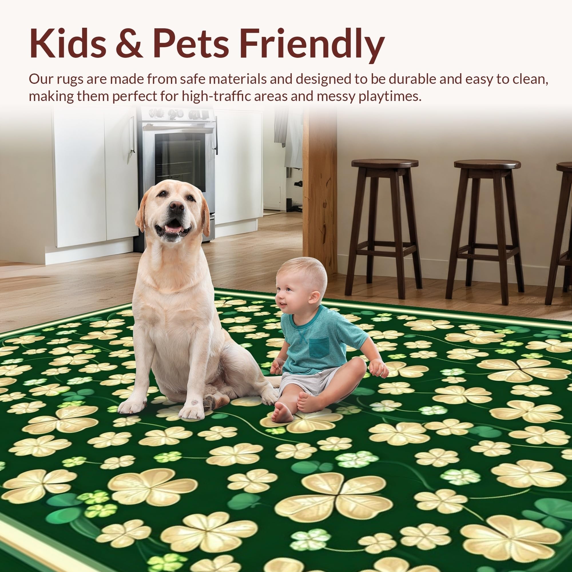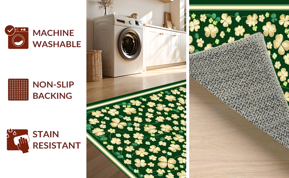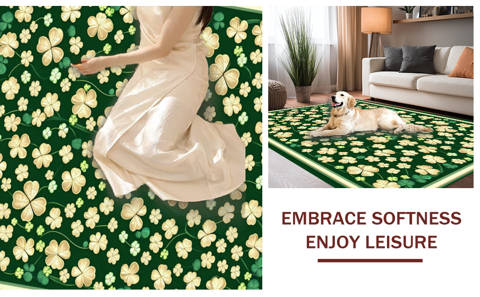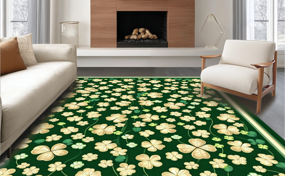 Ultra Soft Area Rug, Non Slip, Stain Resistant, Washable Area Rugs for Living Room, Bedroom, Whimsical Clover Geometric Style(Green) Overview: