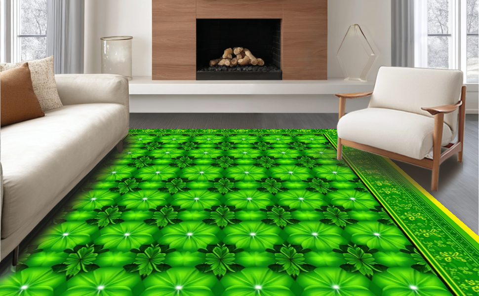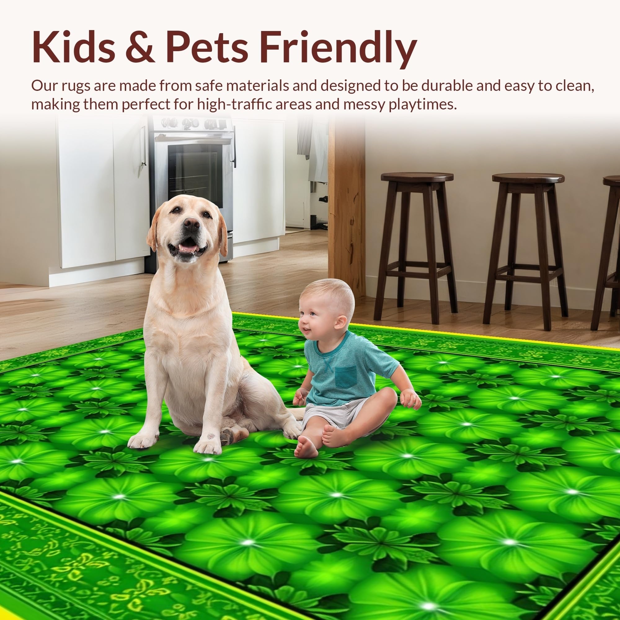 Ultra Soft Area Rug, Non Slip, Stain Resistant, Washable Area Rugs for Living Room, Bedroom, Whimsical Clover Patchwork Style(Green) Overview: