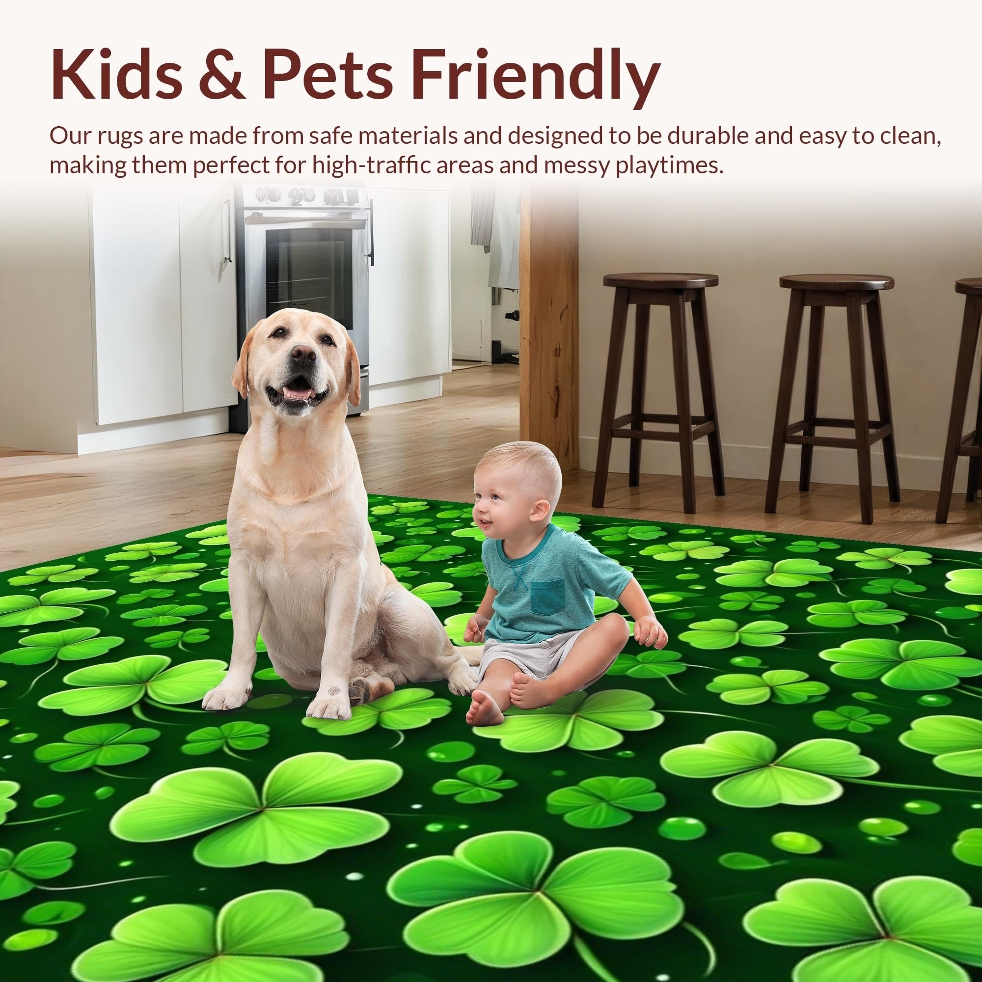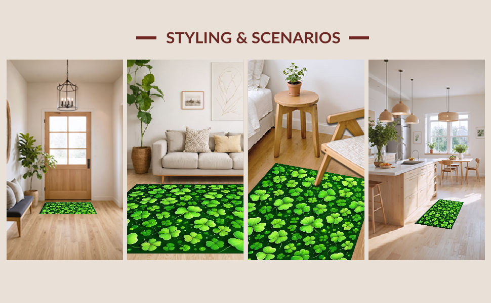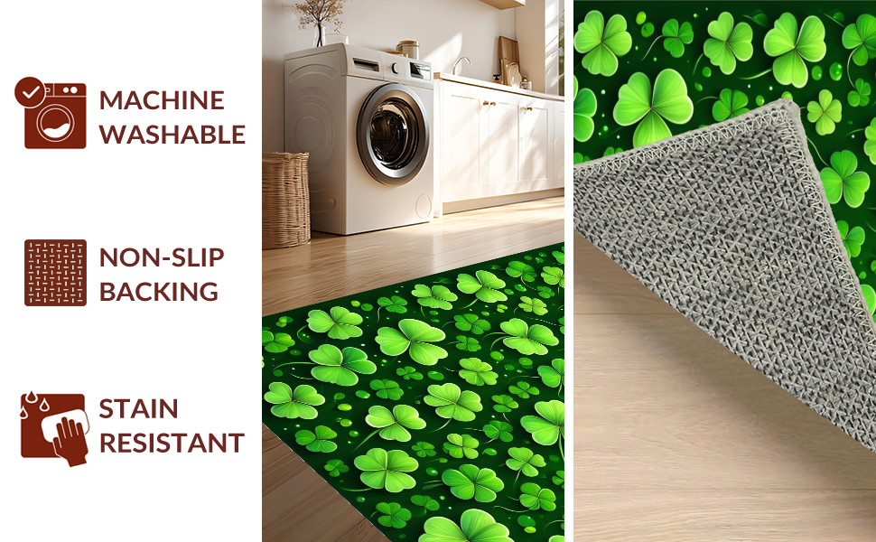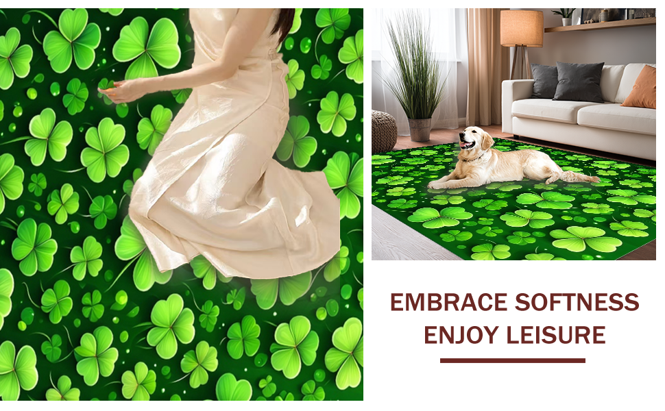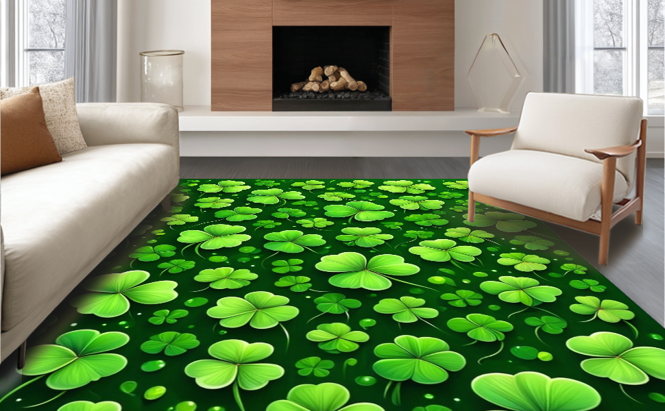 Ultra Soft Area Rug, Non Slip, Stain Resistant, Washable Area Rugs for Living Room, Bedroom, Whimsical Clover Patterned Decor(Green) Overview: