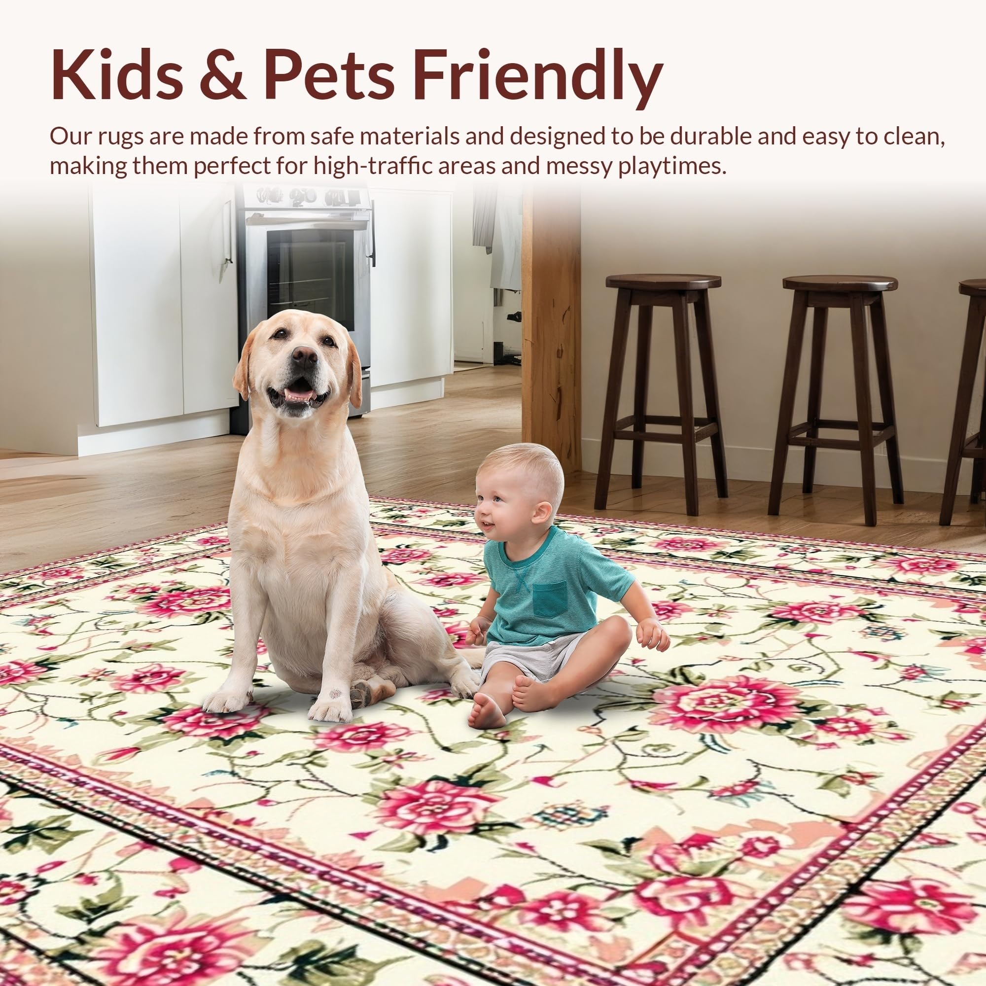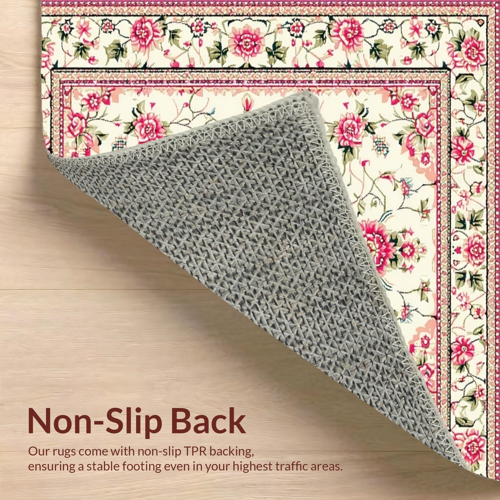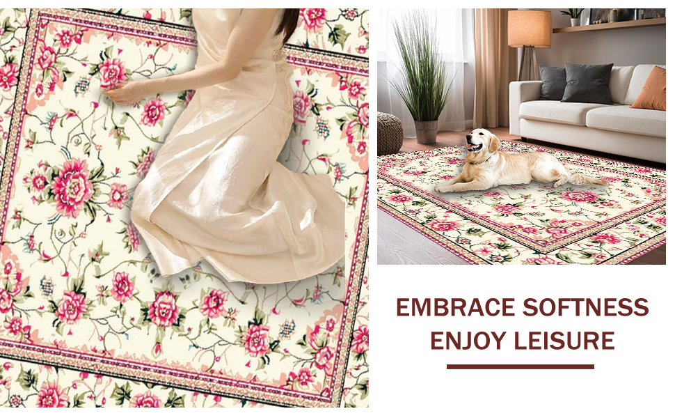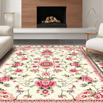 Ultra Soft Area Rug, Non Slip, Stain Resistant, Washable Area Rugs for Living Room, Bedroom, Whimsical Colorful Botanical Pattern(Beige) Overview: