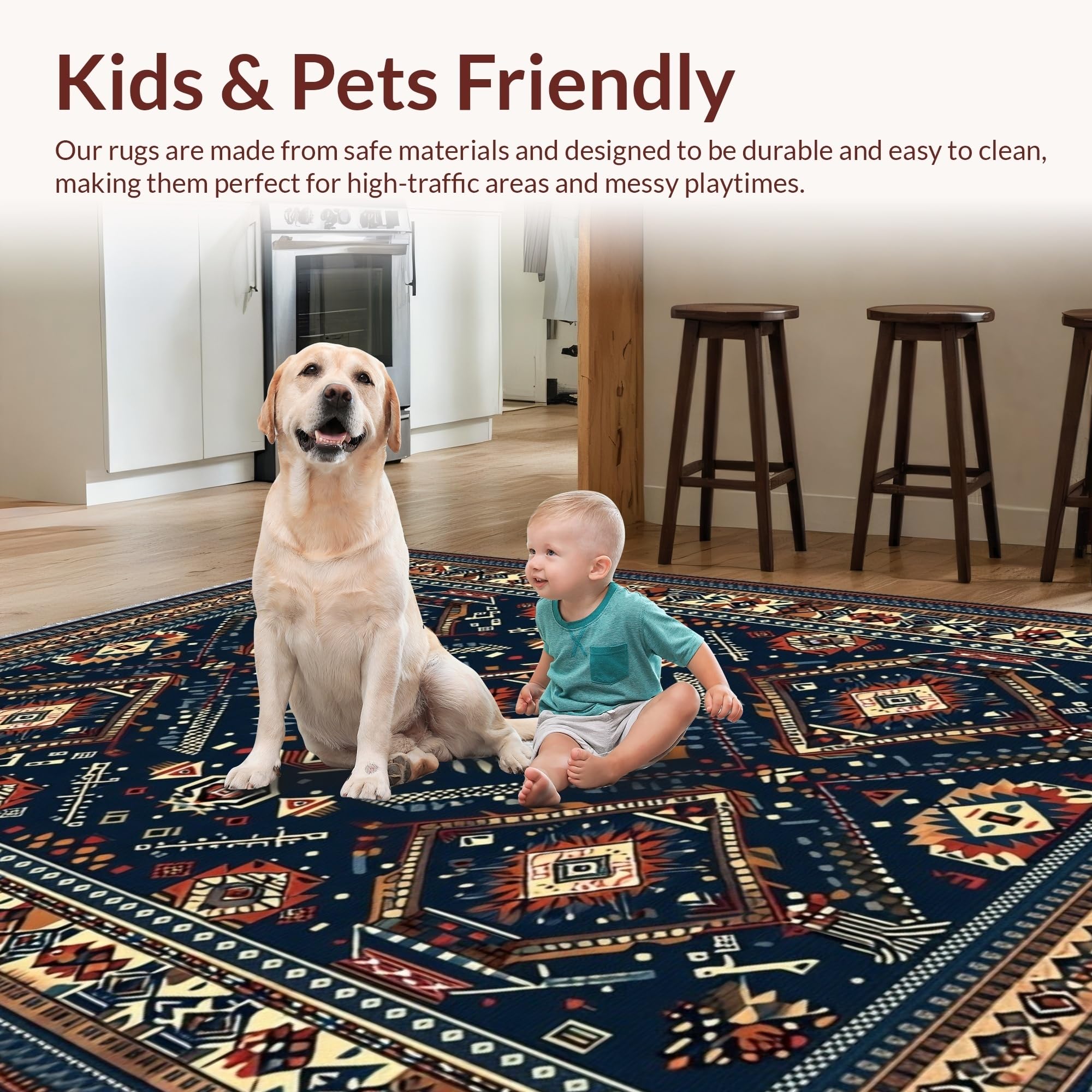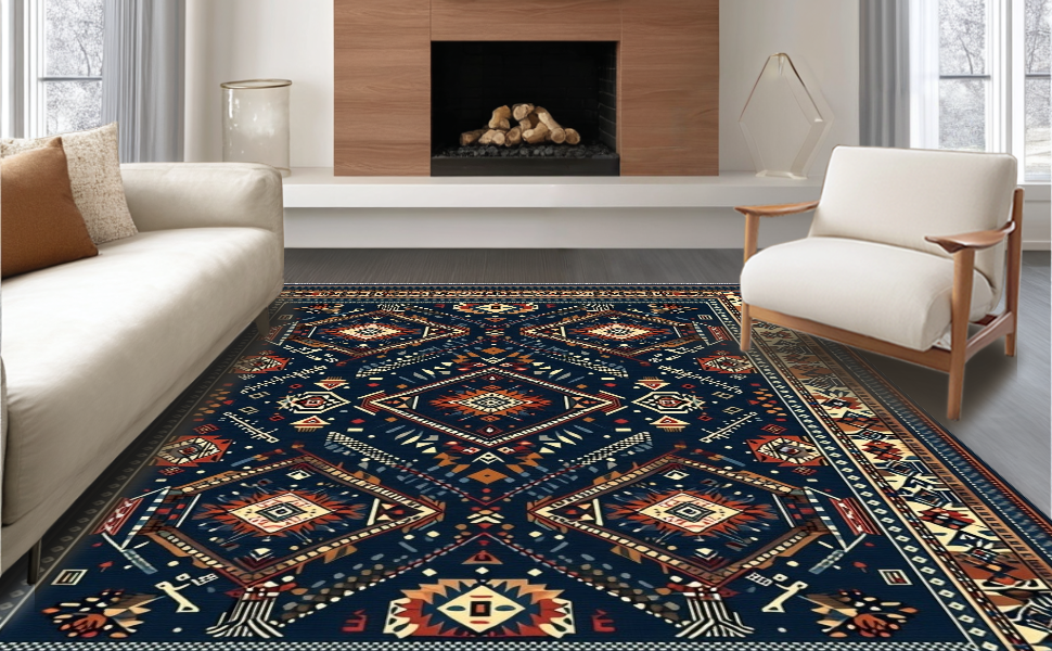 Ultra Soft Area Rug, Non Slip, Stain Resistant, Washable Area Rugs for Living Room, Bedroom, Whimsical Colorful Diamond Layout(Blue) Overview: