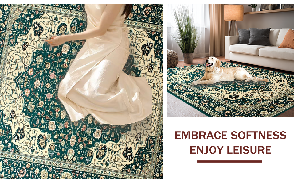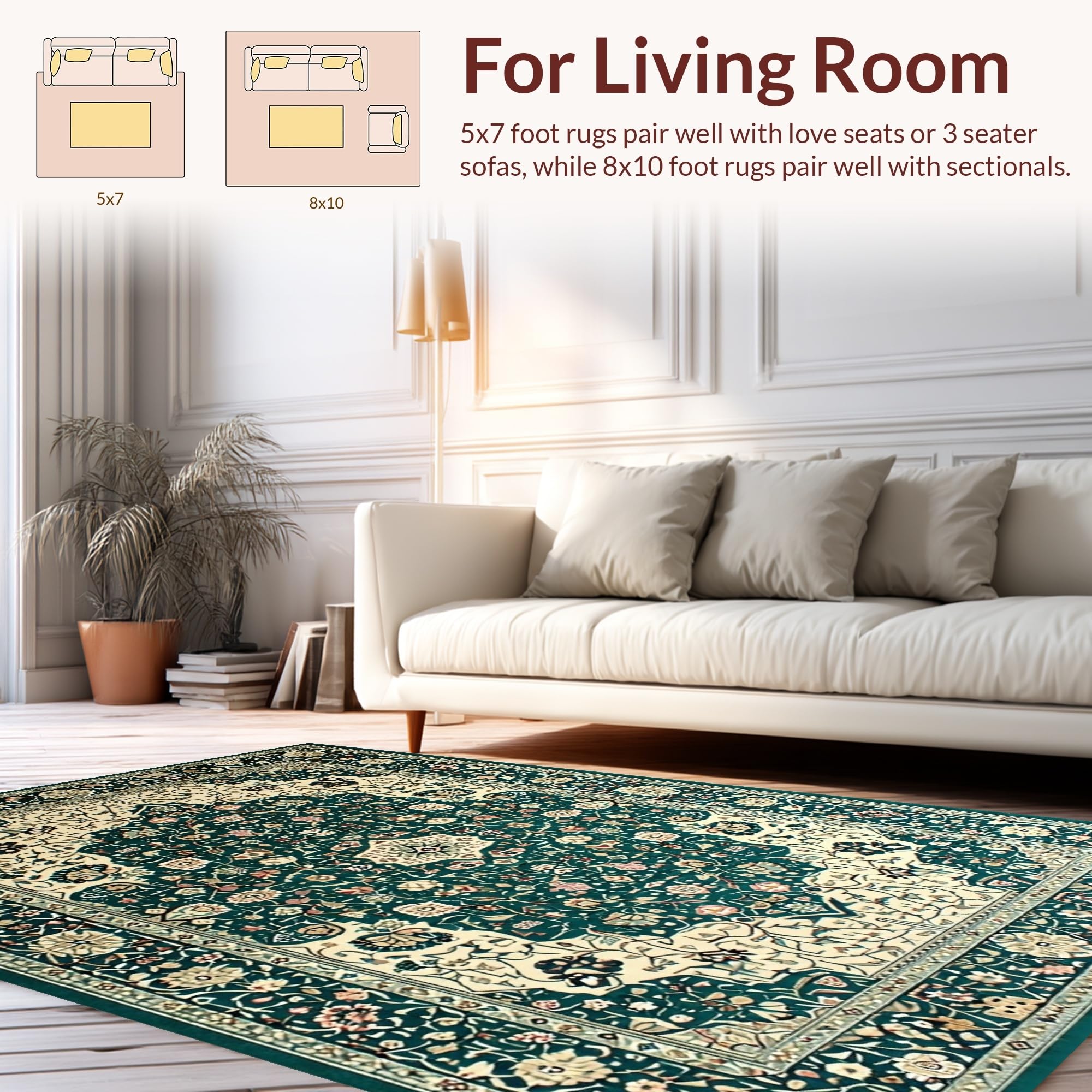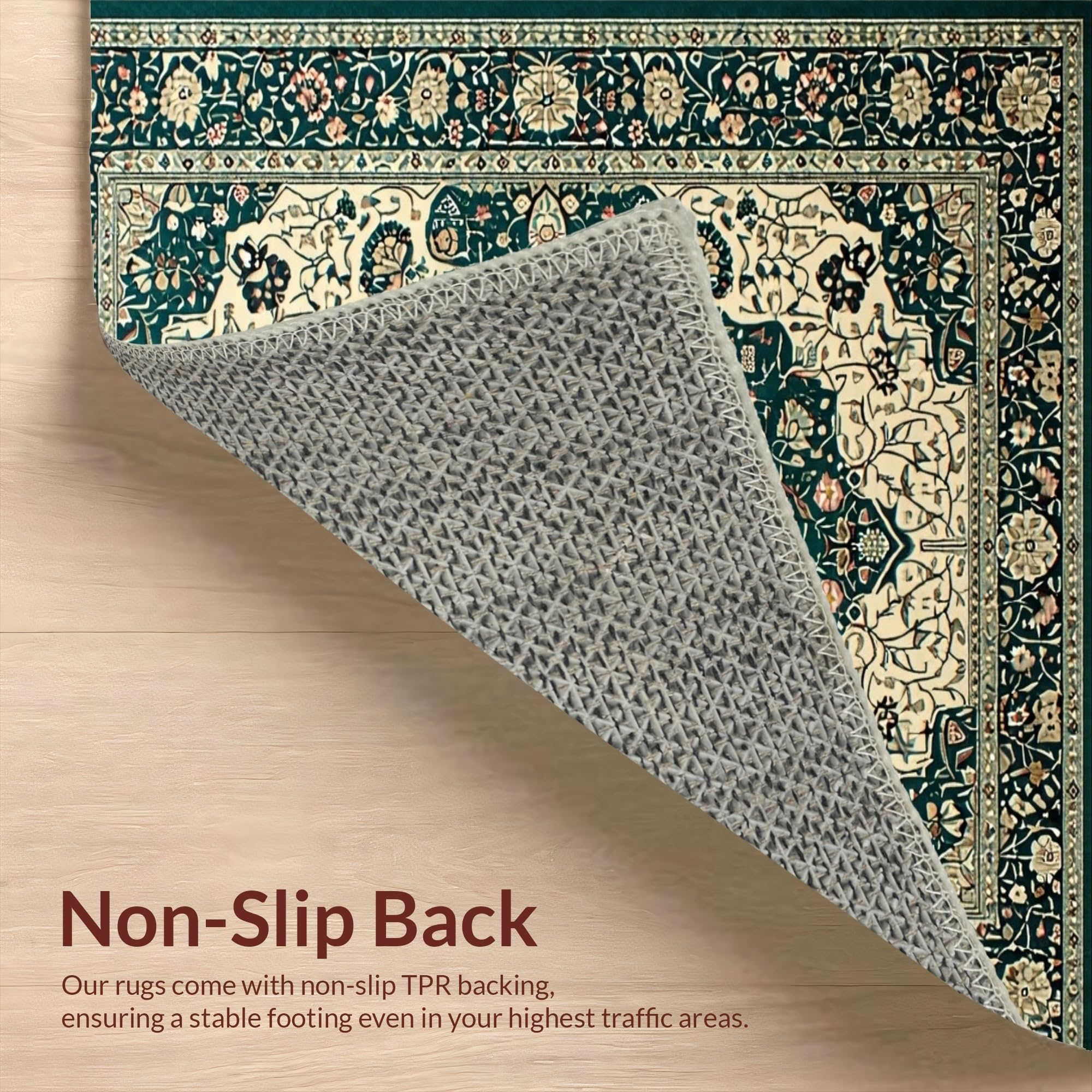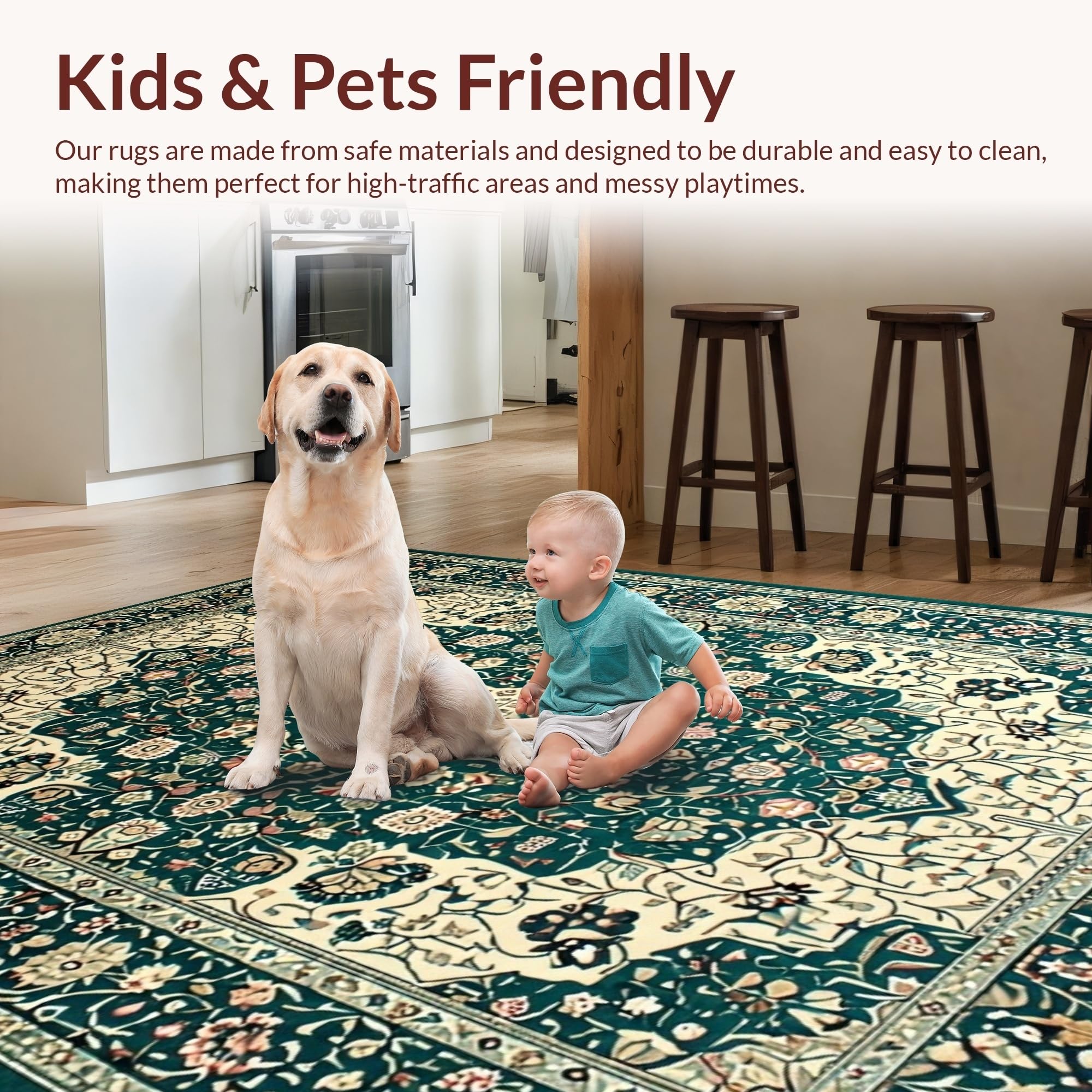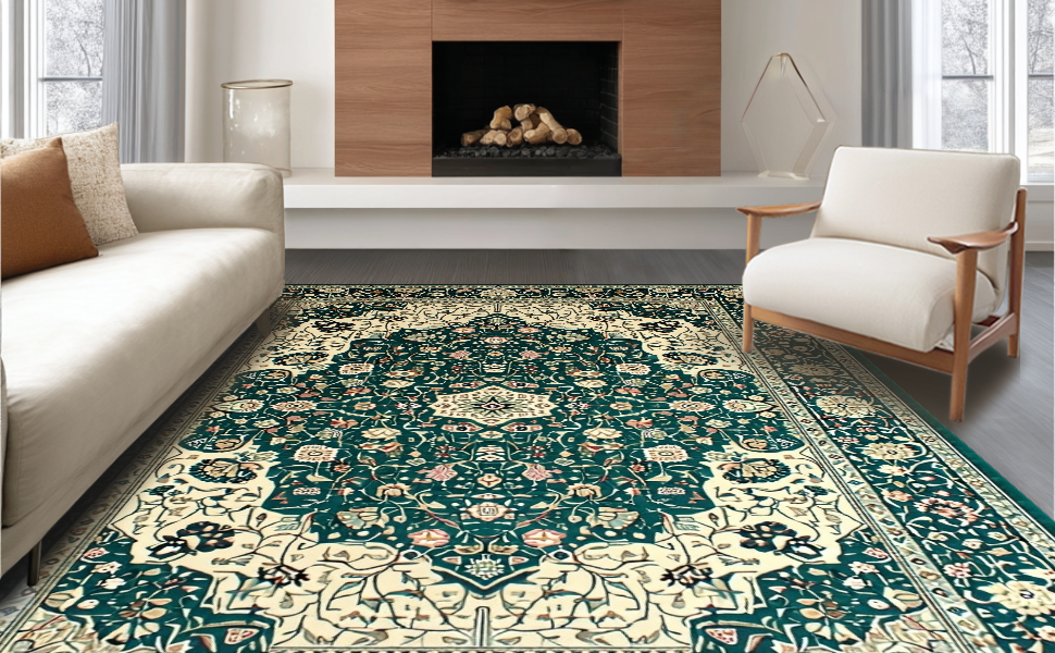 Ultra Soft Area Rug, Non Slip, Stain Resistant, Washable Area Rugs for Living Room, Bedroom, Whimsical Colorful Medallion Accent(Green) Overview:
