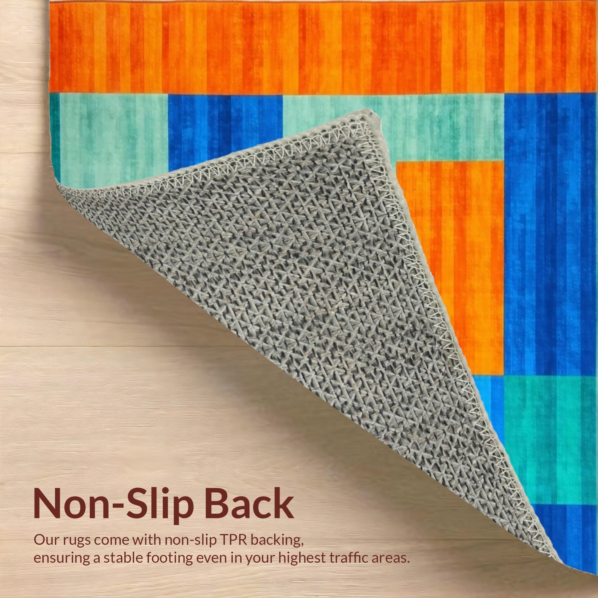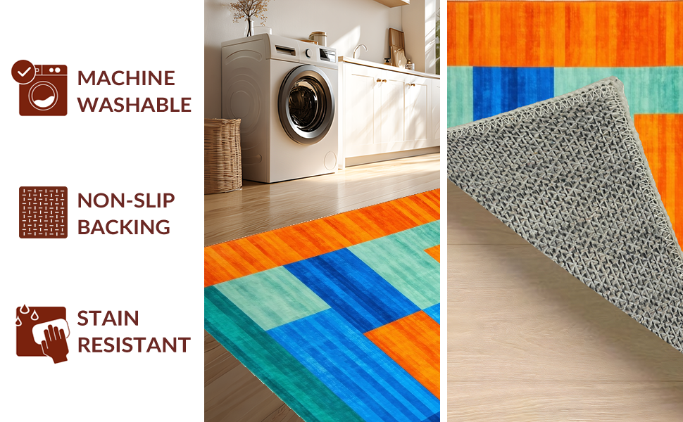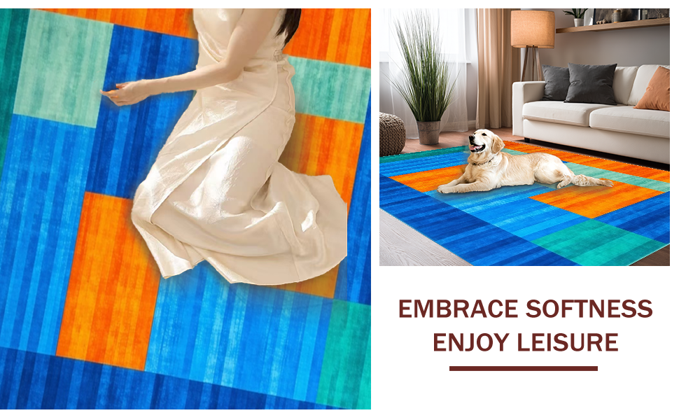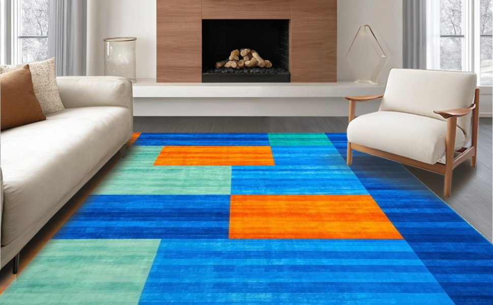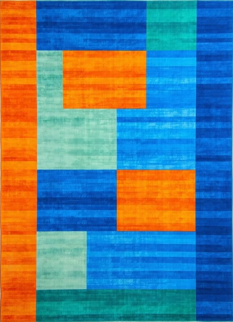 Ultra Soft Area Rug, Non Slip, Stain Resistant, Washable Area Rugs for Living Room, Bedroom, Whimsical Colorful Tiled Arrangement(Blue) Overview: