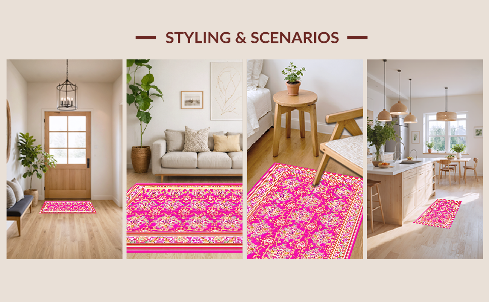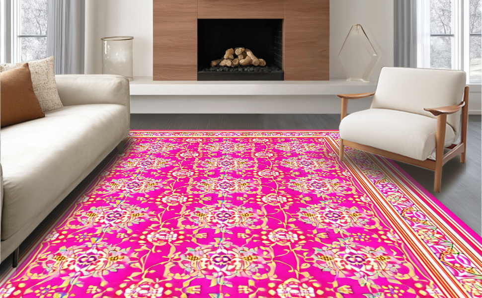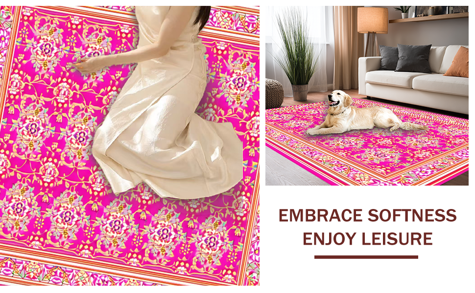 Ultra Soft Area Rug, Non Slip, Stain Resistant, Washable Area Rugs for Living Room, Bedroom, Whimsical Colorful Tiled Pattern(Pink) Overview: