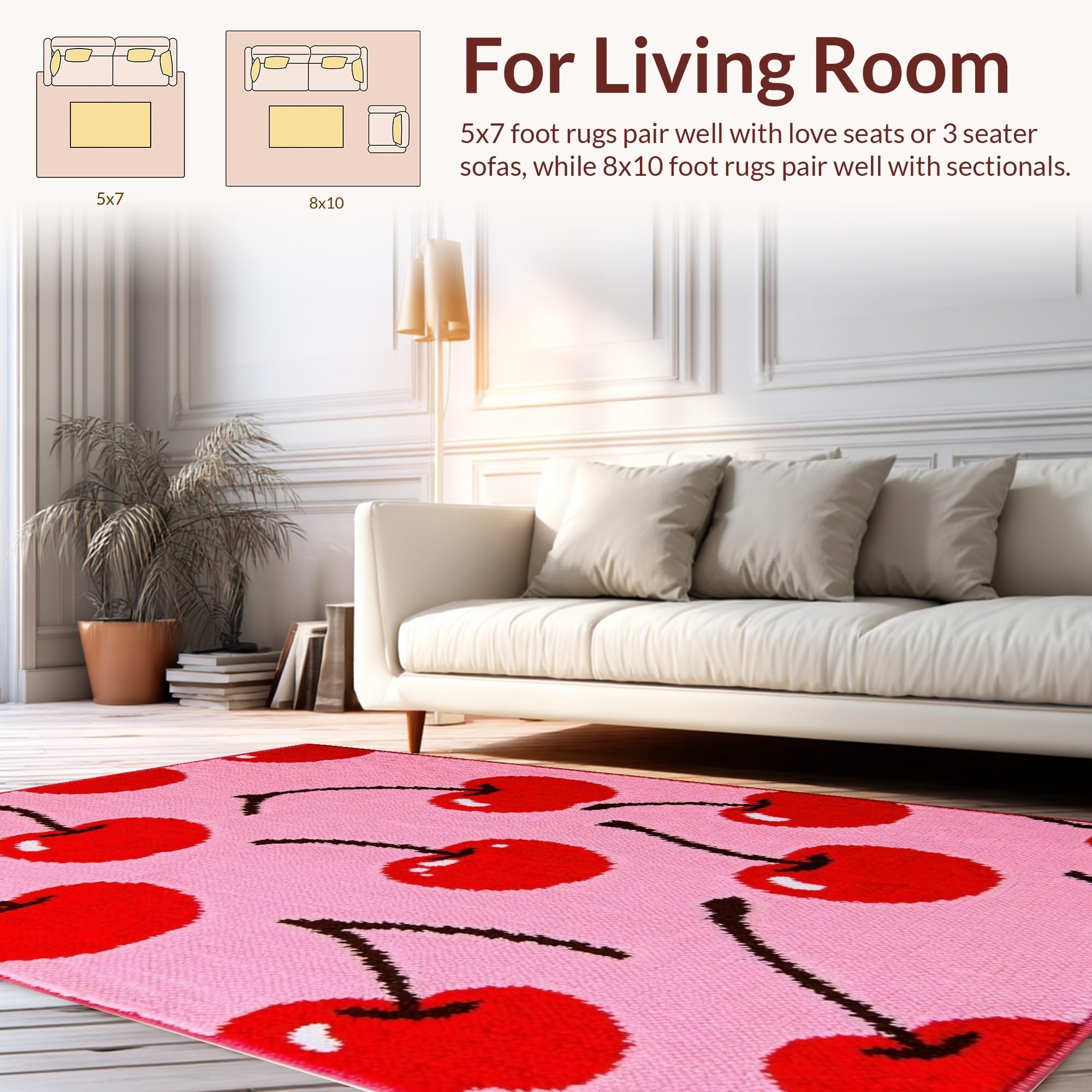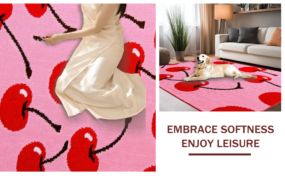 Ultra Soft Area Rug, Non Slip, Stain Resistant, Washable Area Rugs for Living Room, Bedroom, Whimsical Colorful Tufted Style(Red) Overview: