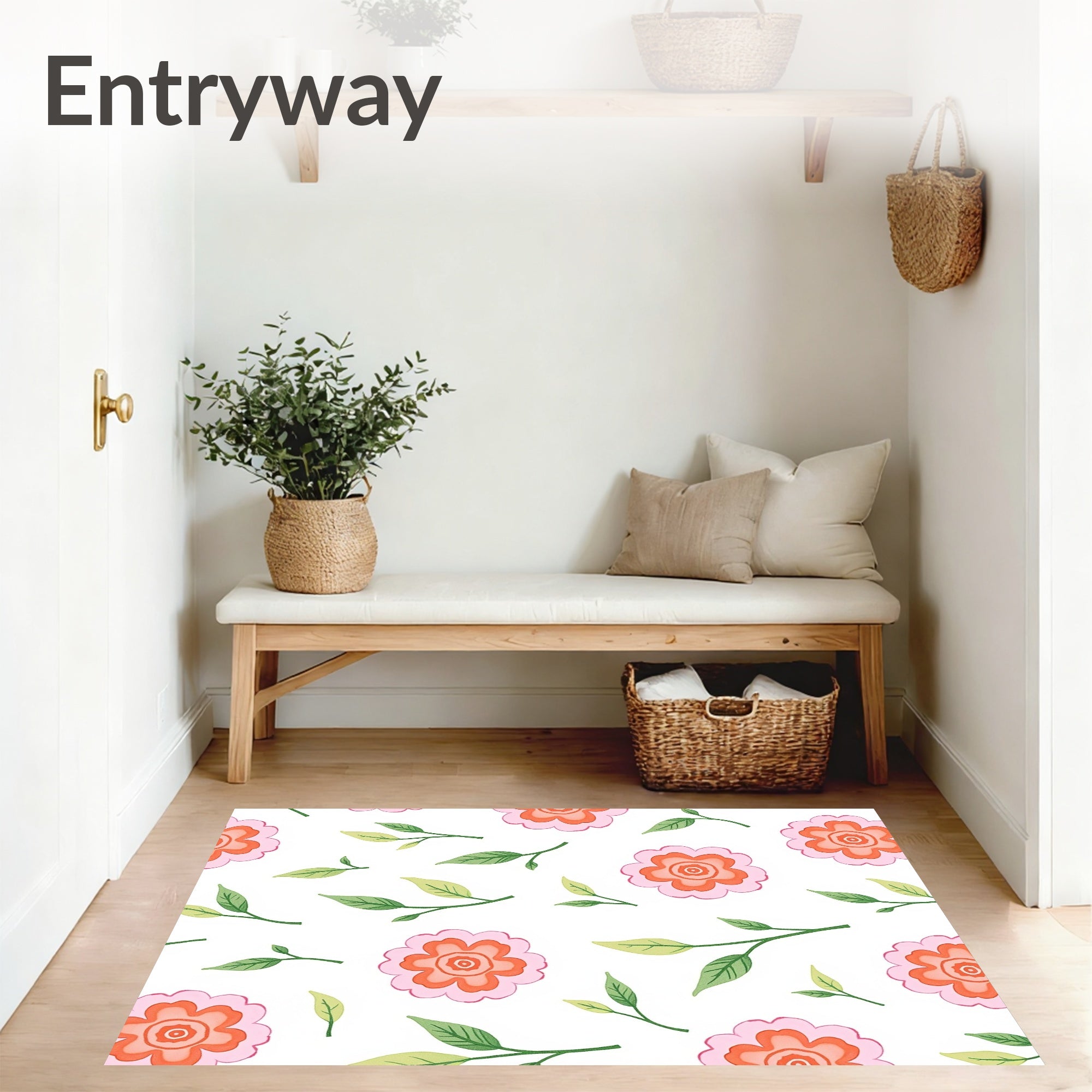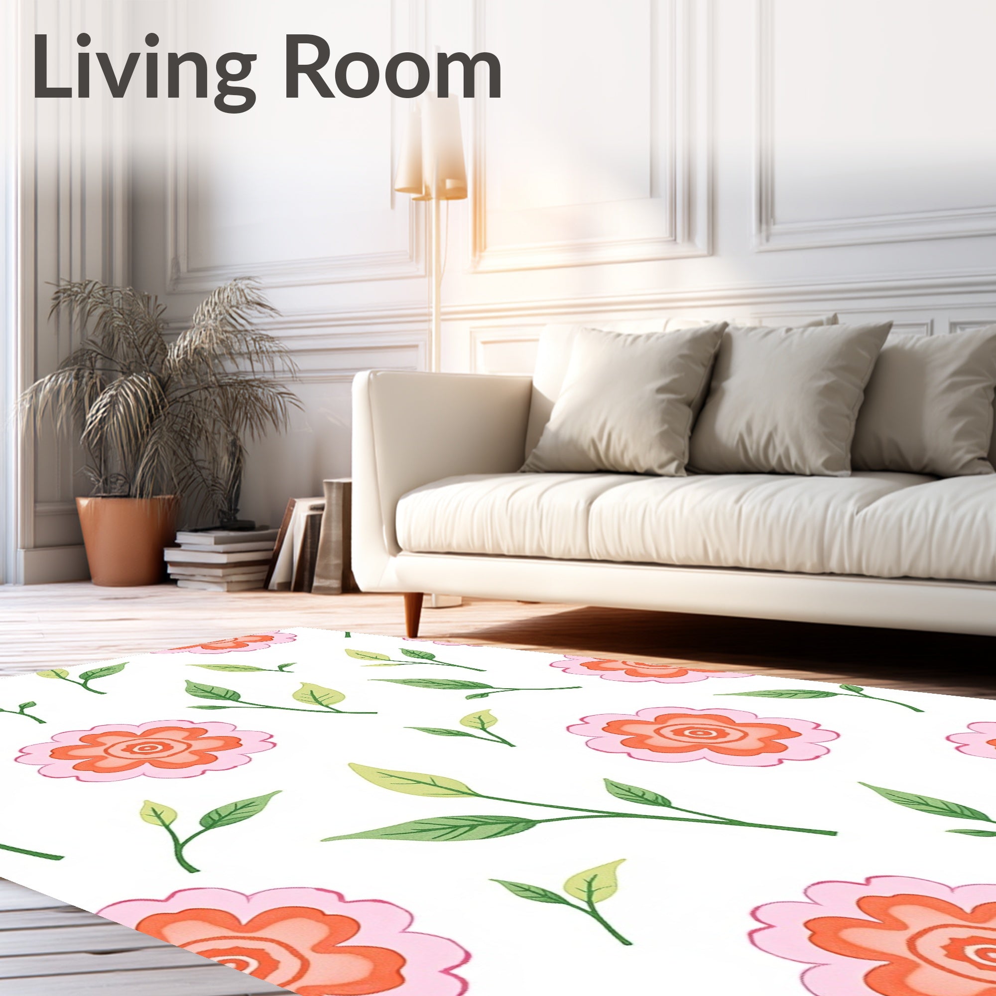 Flatwoven High Traffic Area Rug, Whimsical Cottage Bloom Festival With Charming Rosette Display, Non Slip, Stain Resistant, Washable Area Rugs for Living Room, Bedroom (Pink) Overview: