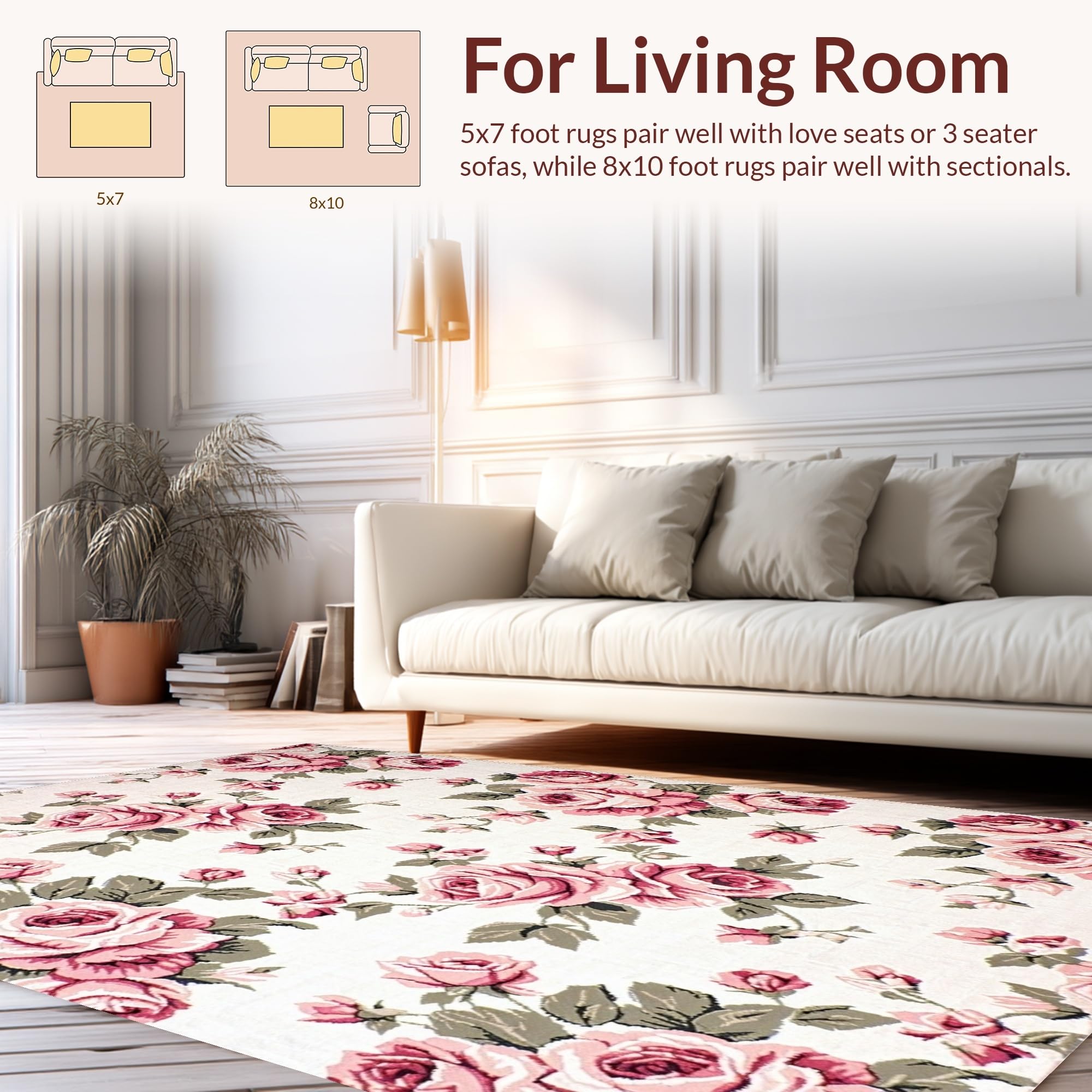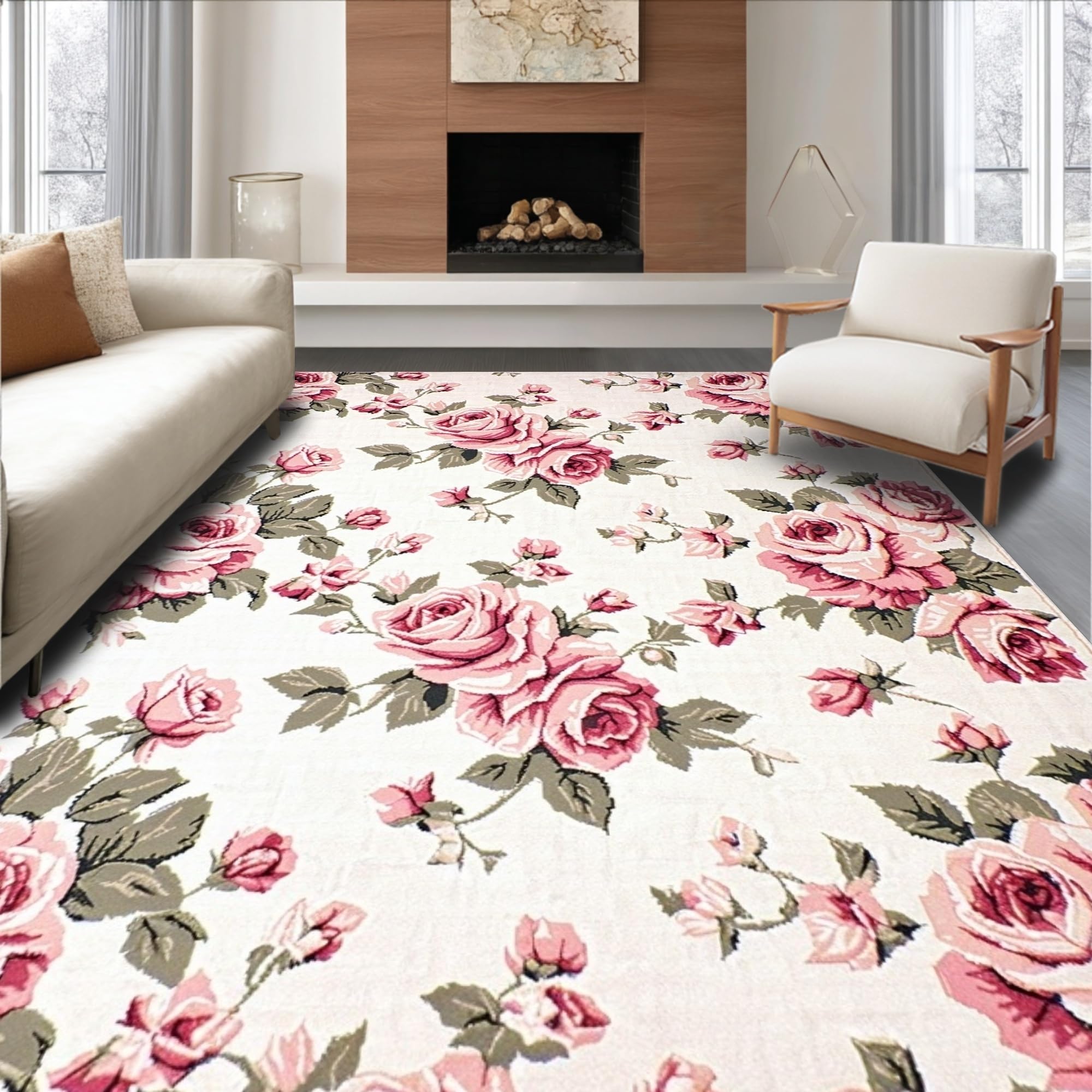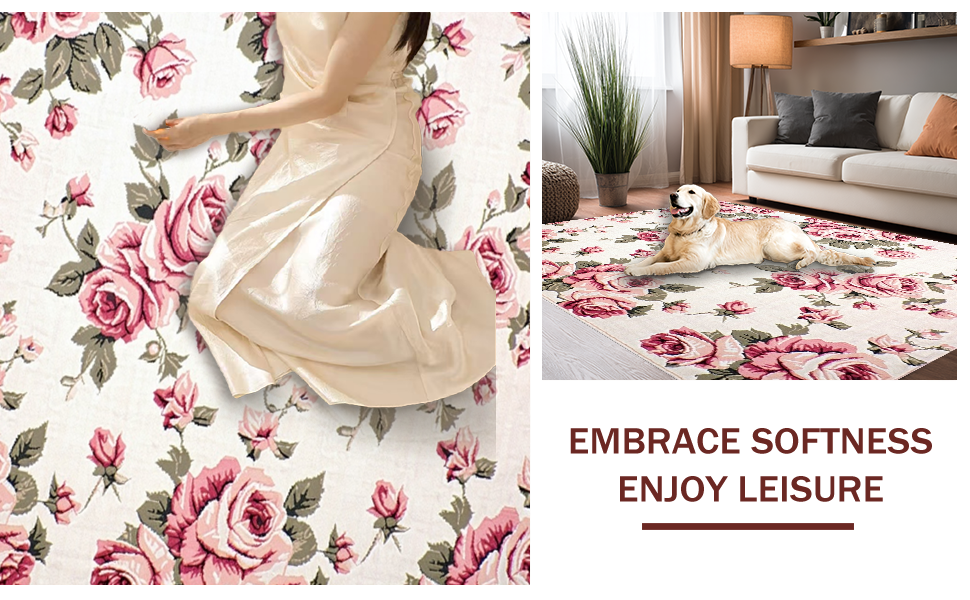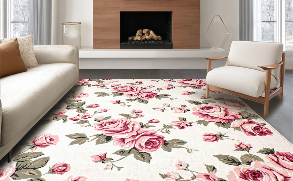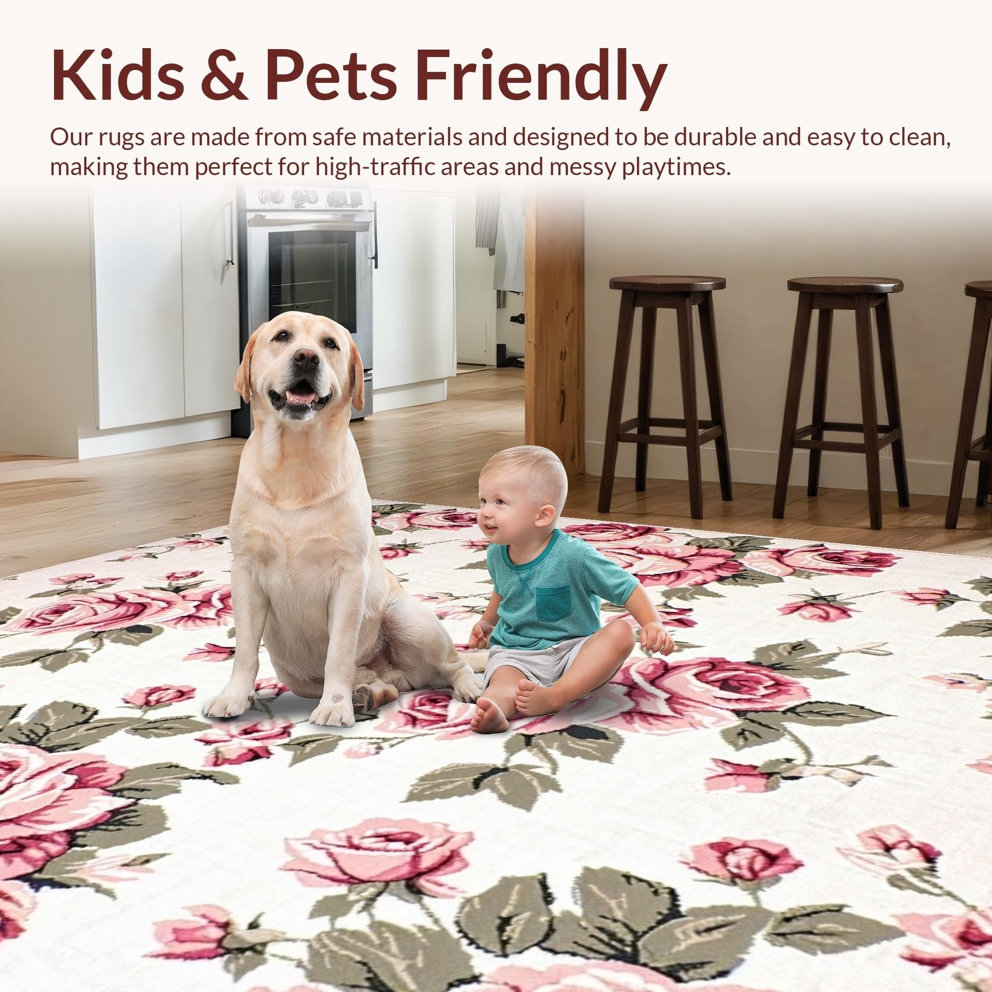 Ultra Soft Area Rug, Non Slip, Stain Resistant, Washable Area Rugs for Living Room, Bedroom, Whimsical Country Style Pattern(Ivory) Overview:
