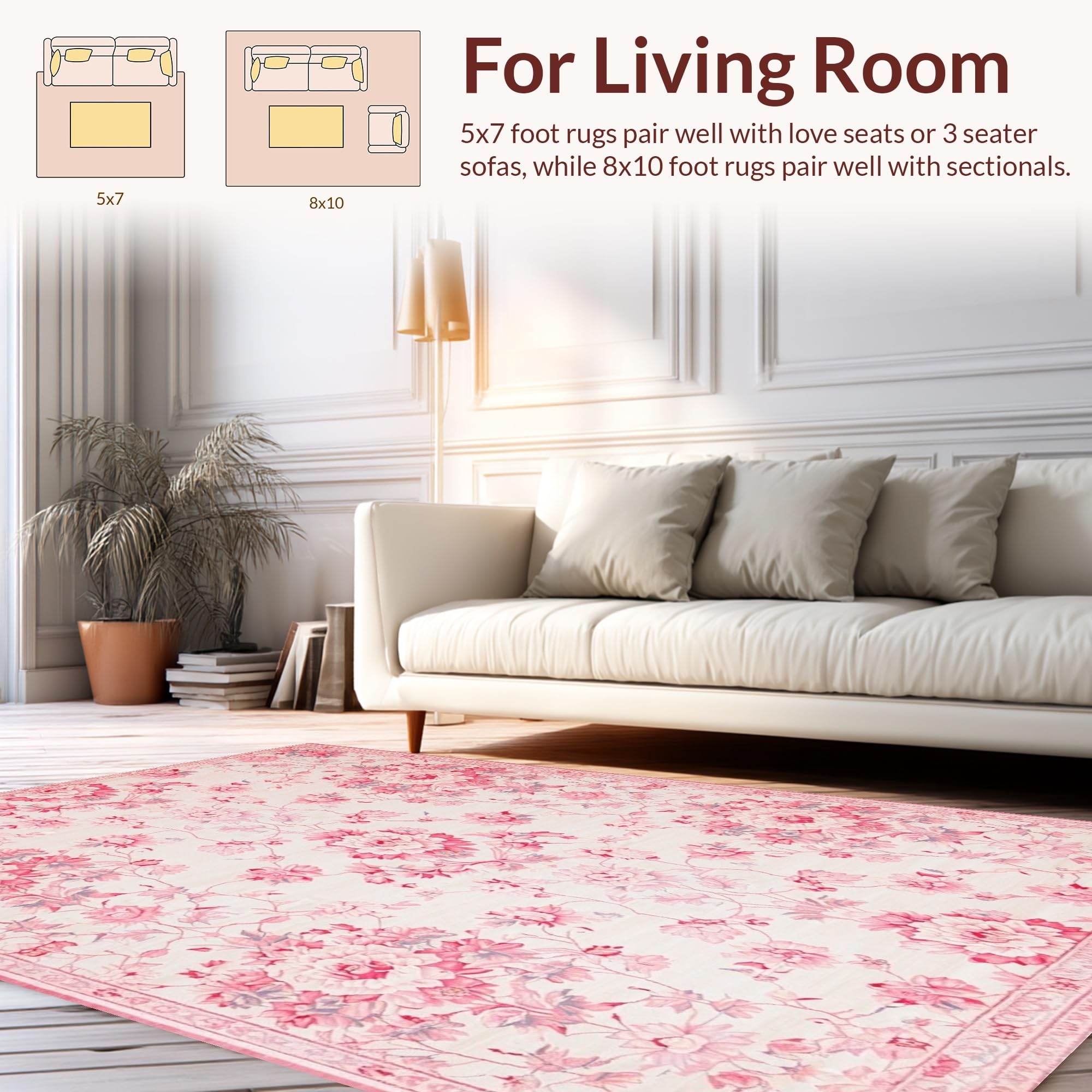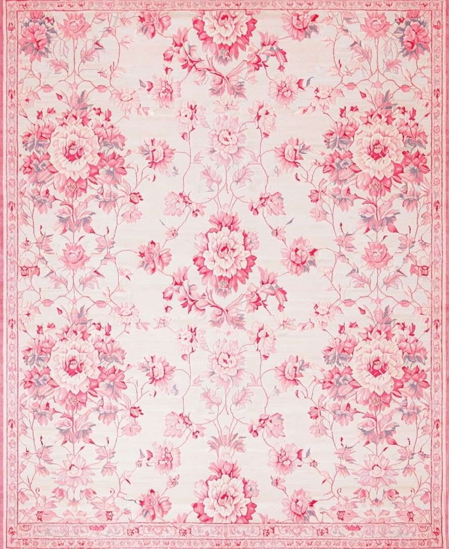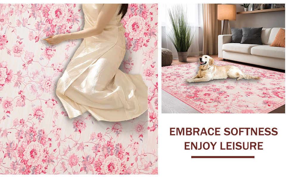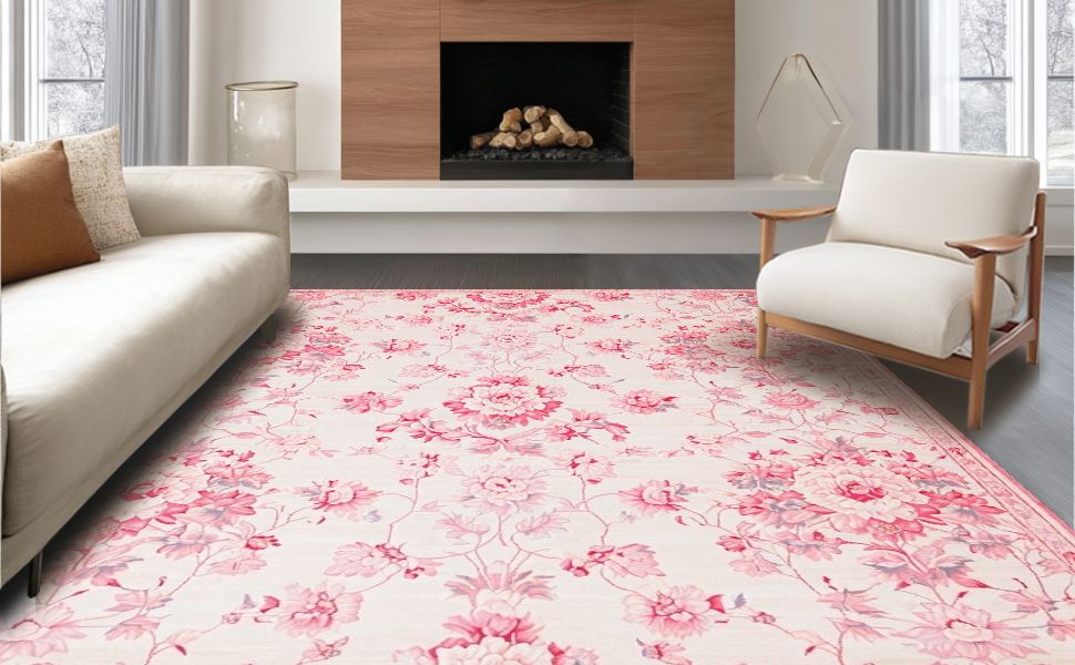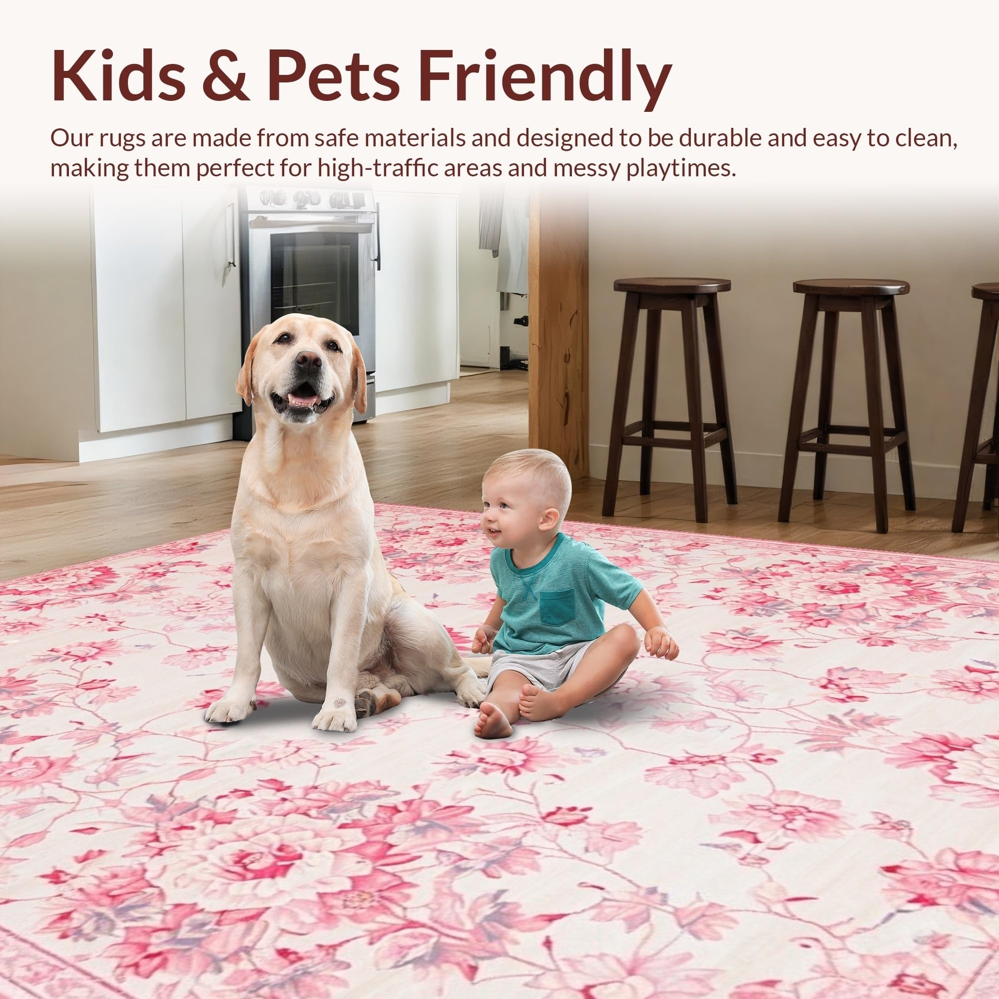 Ultra Soft Area Rug, Non Slip, Stain Resistant, Washable Area Rugs for Living Room, Bedroom, Whimsical Curvy Pastel Design(Pink) Overview: