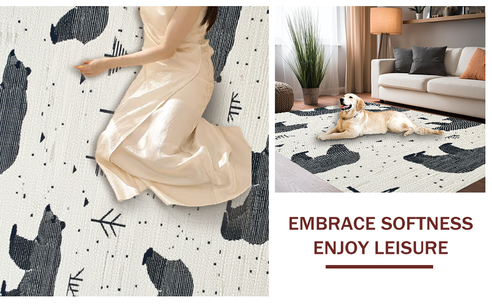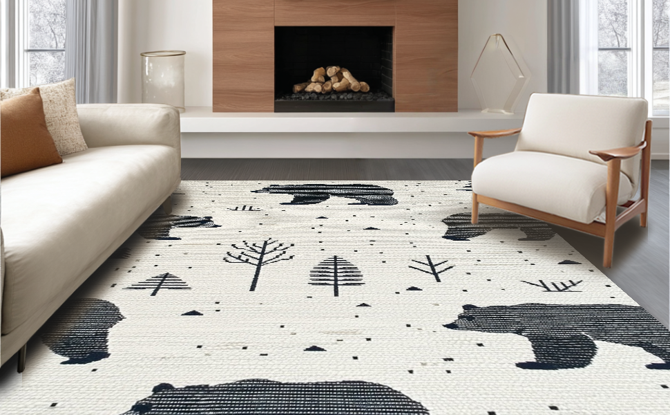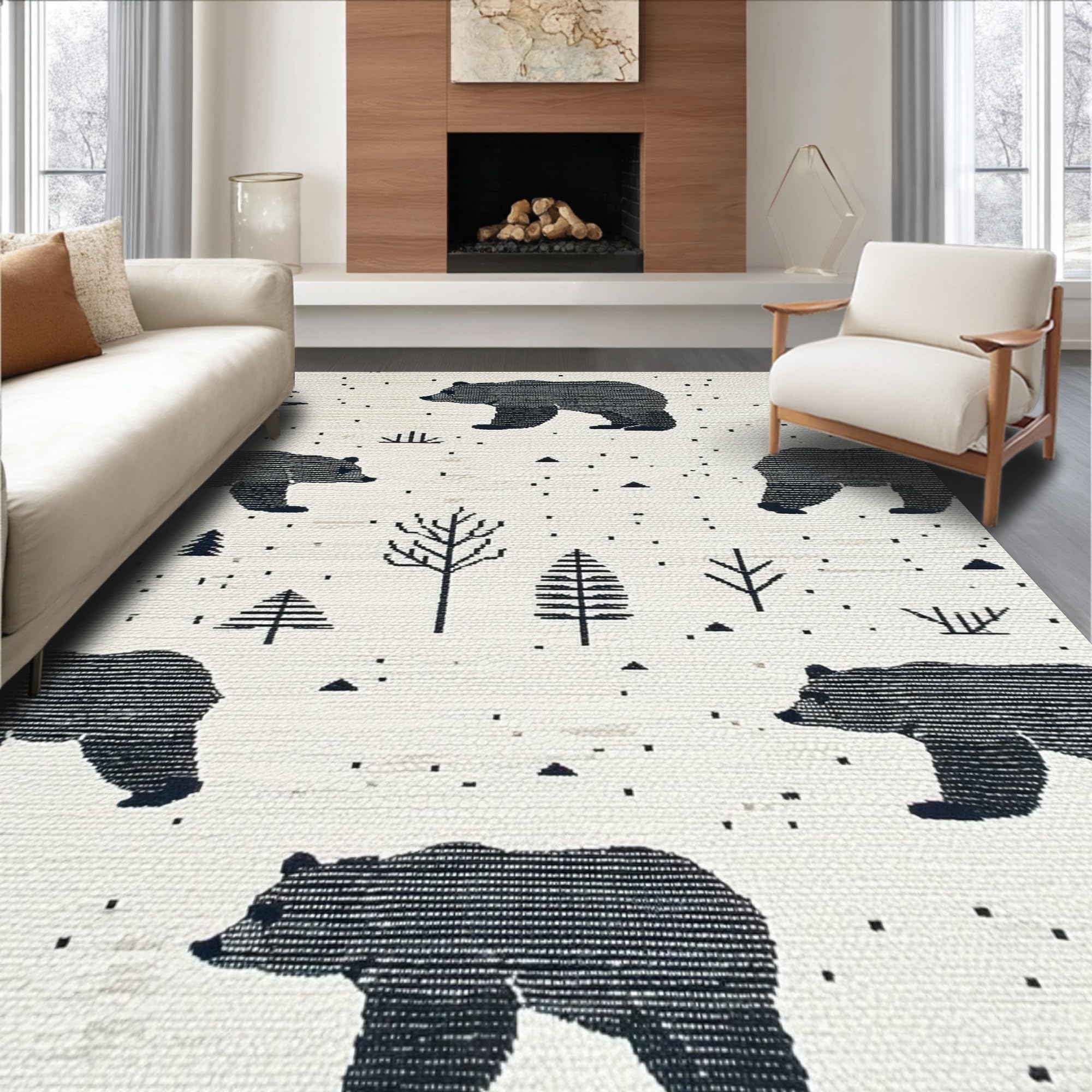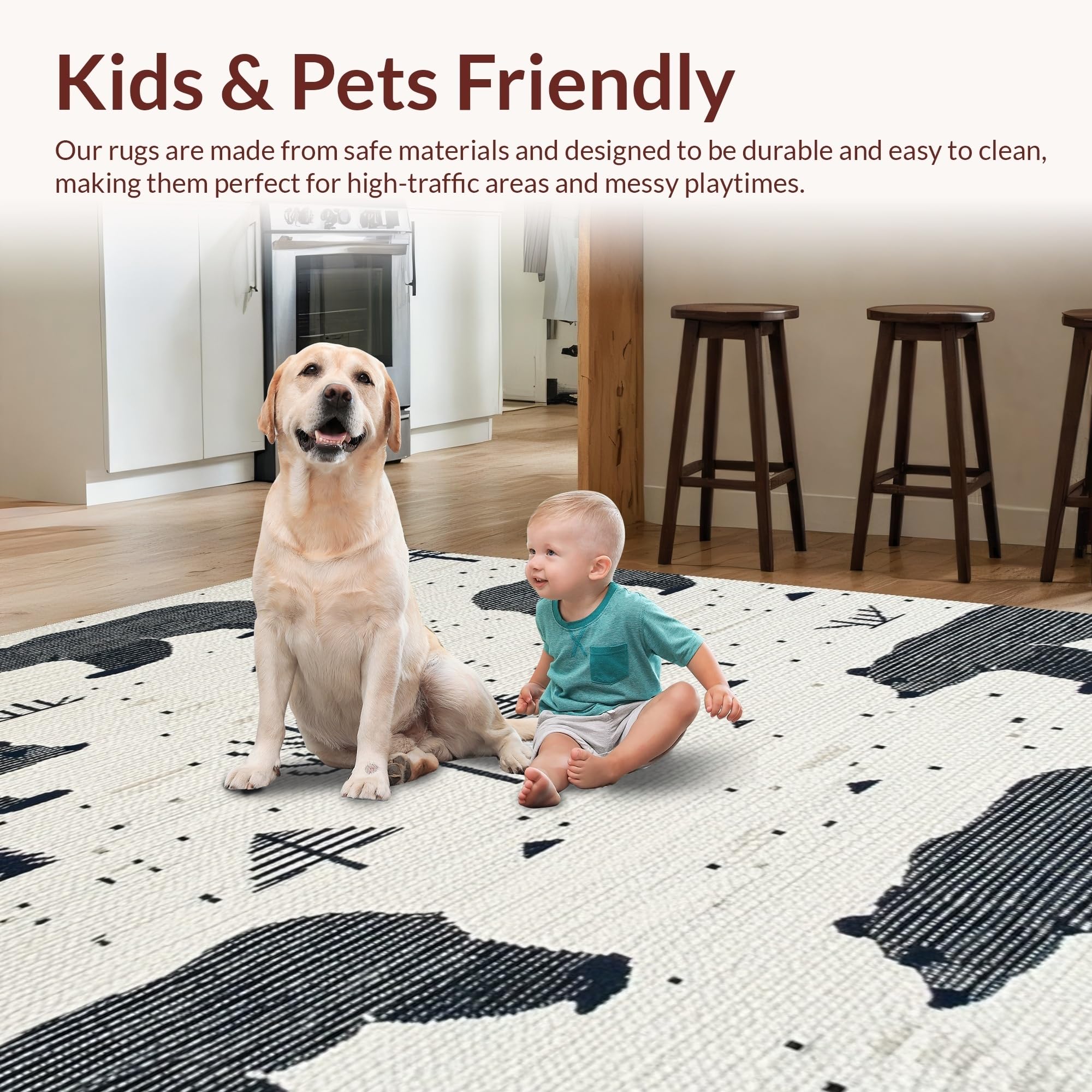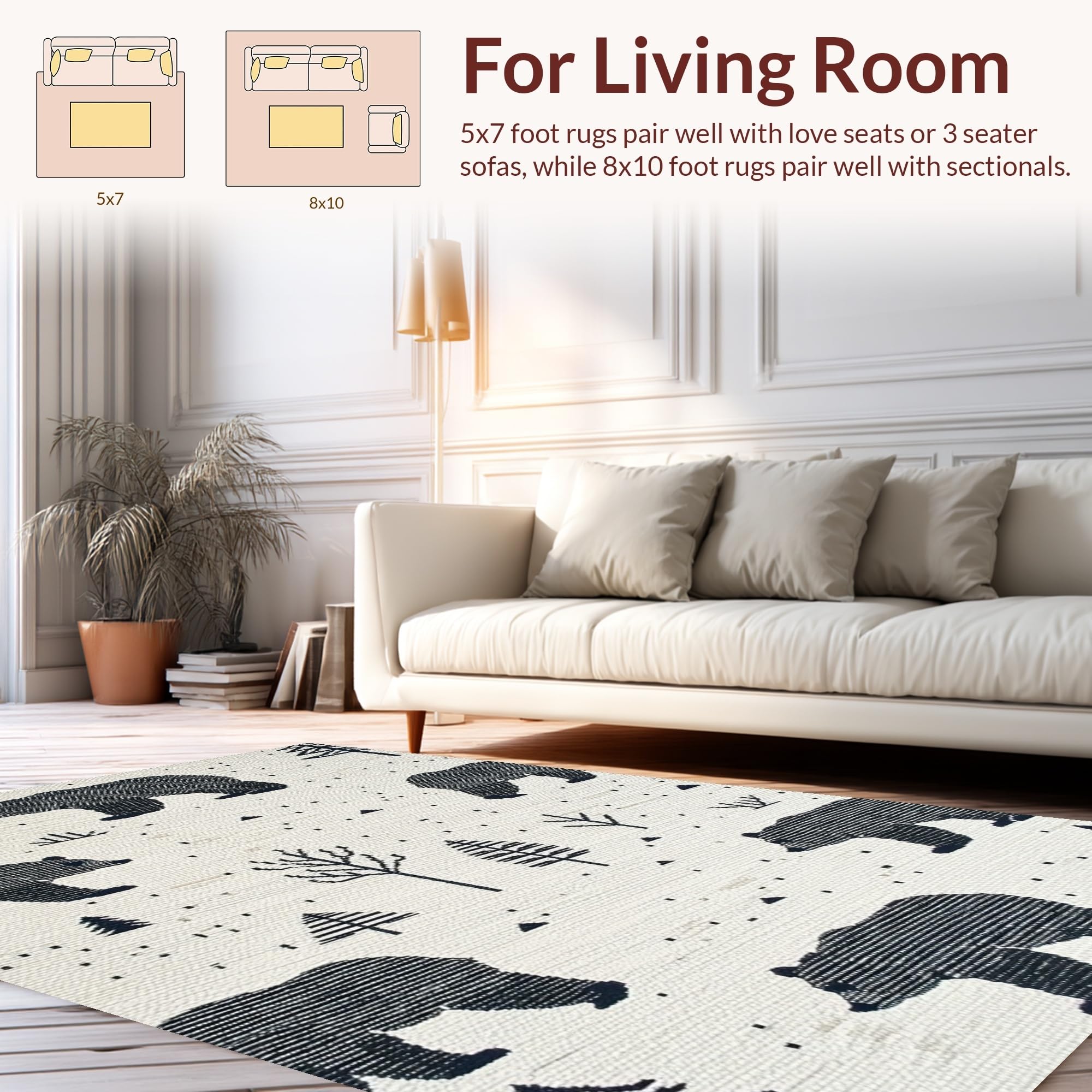 Ultra Soft Area Rug, Non Slip, Stain Resistant, Washable Area Rugs for Living Room, Bedroom, Whimsical Cute Creature Motif(Beige) Overview: