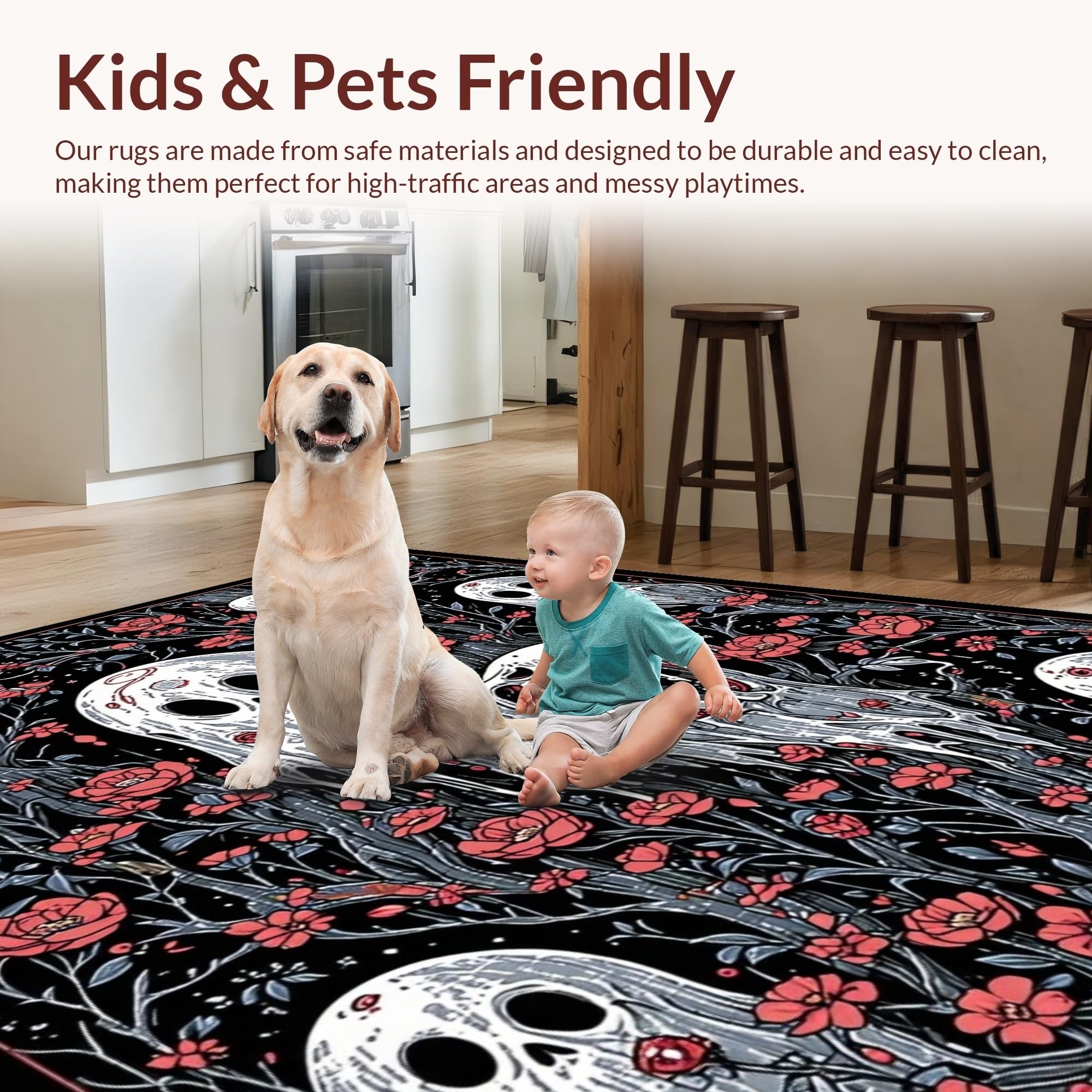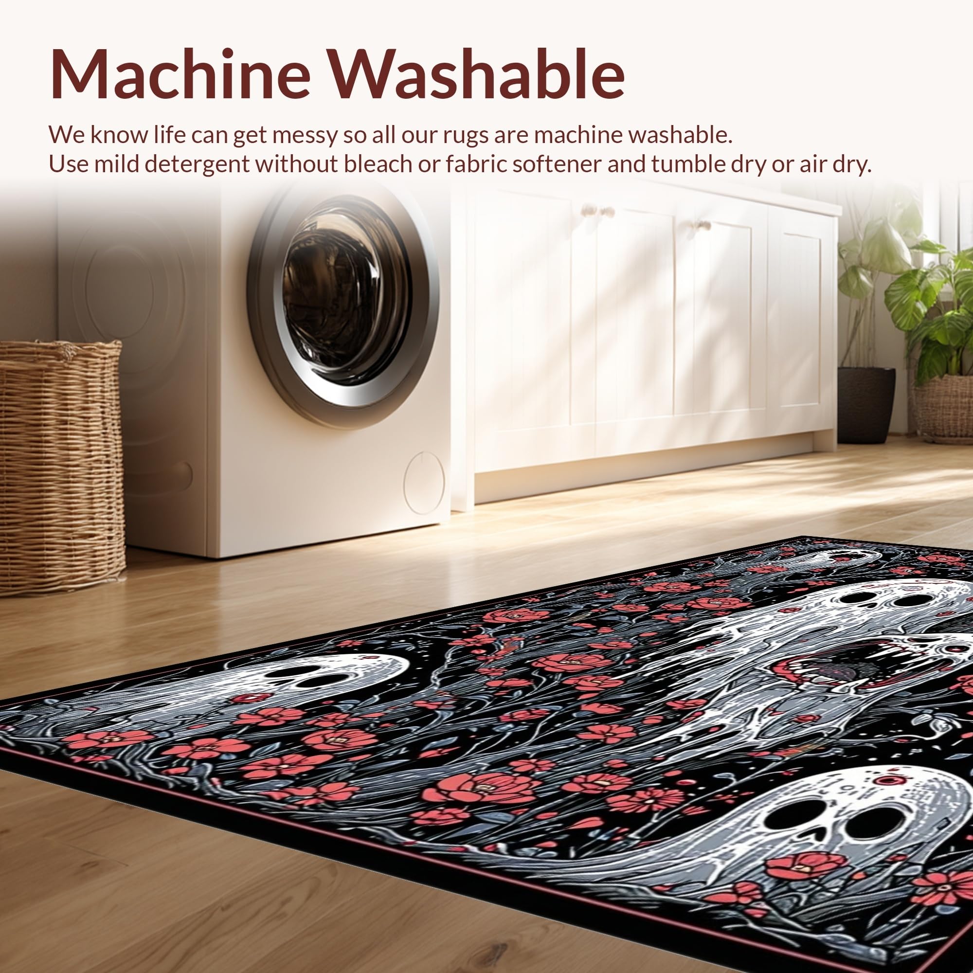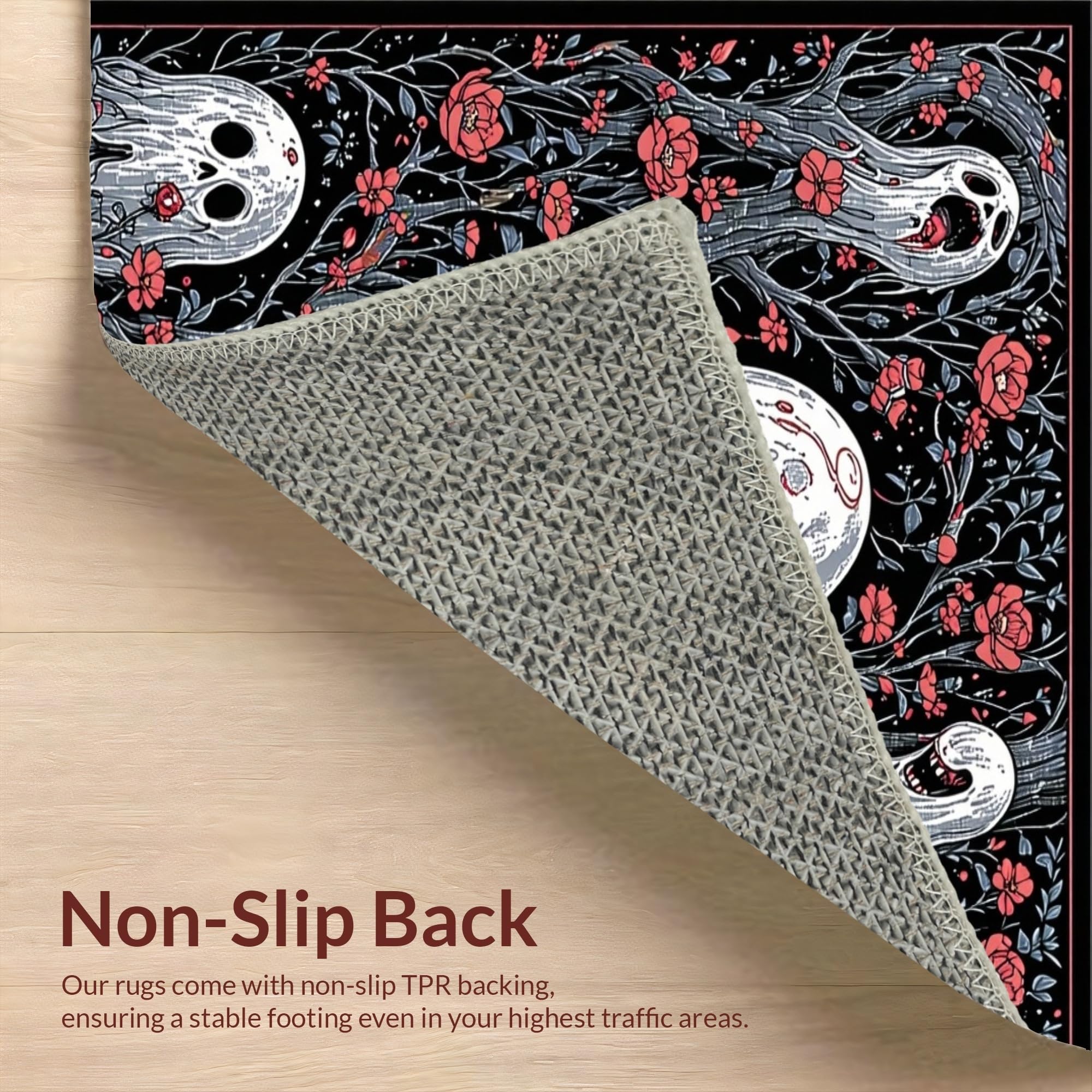 Ultra Soft Area Rug, Non Slip, Stain Resistant, Washable Area Rugs for Living Room, Bedroom, Whimsical Dark Aesthetic Design(Black) Overview: