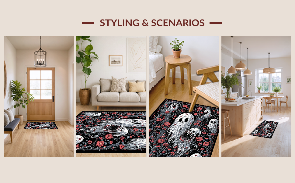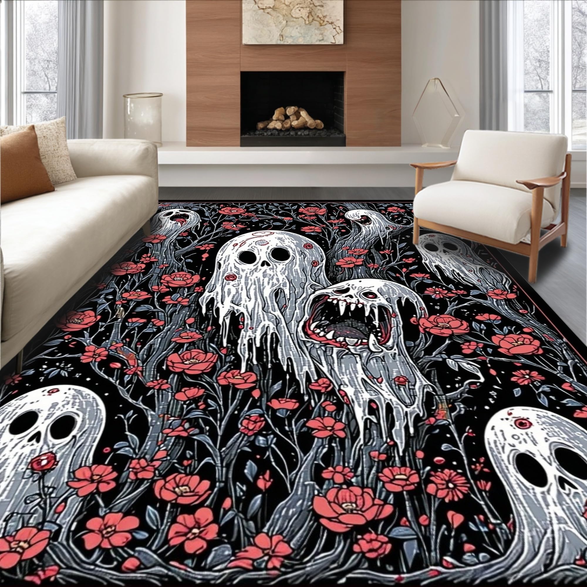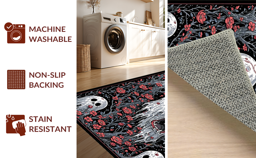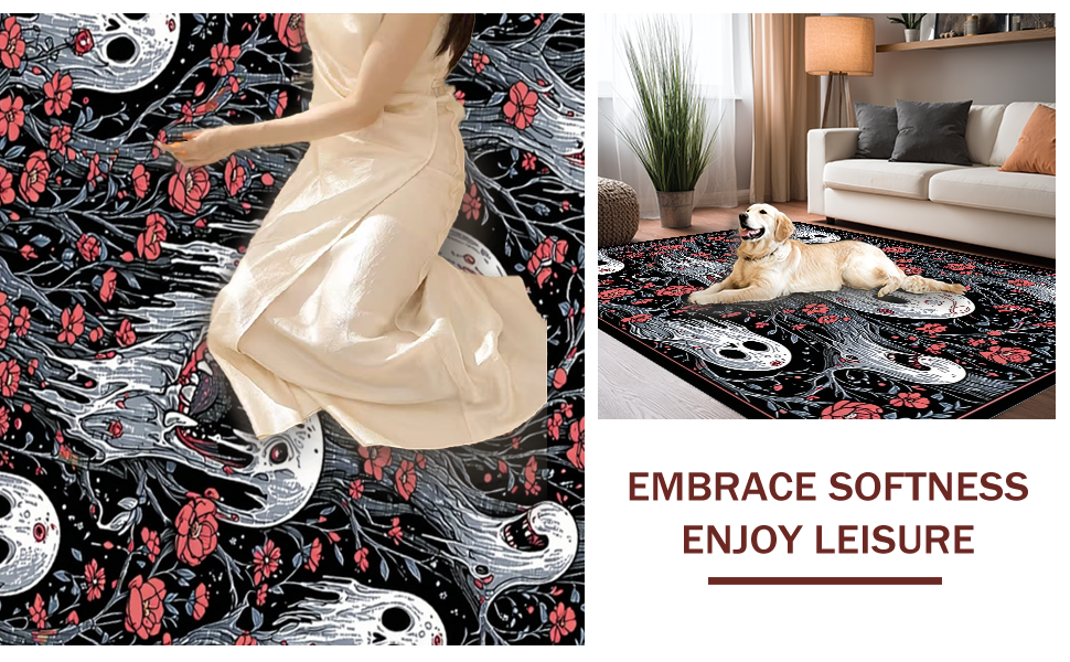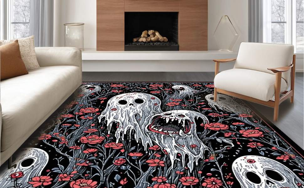 Ultra Soft Area Rug, Non Slip, Stain Resistant, Washable Area Rugs for Living Room, Bedroom, Whimsical Dark Aesthetic Design(Black) Overview: